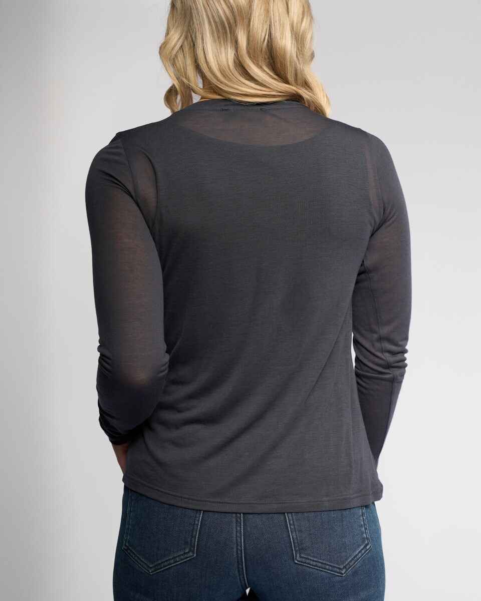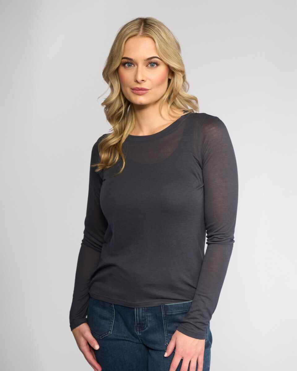 Everyday long sleeve top in Raisin, a rich, deep purplish hue, crafted from a soft Tencel, wool, and elastane blend. Featuring a round neckline and a relaxed, comfortable fit, this versatile top is perfect for layering or wearing on its own.