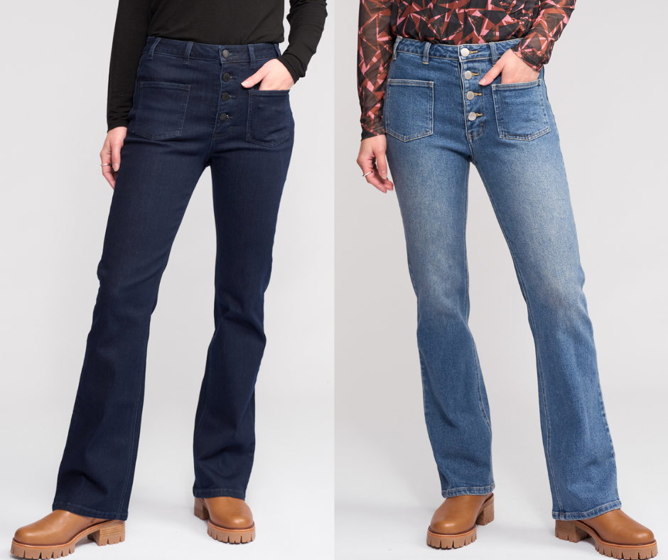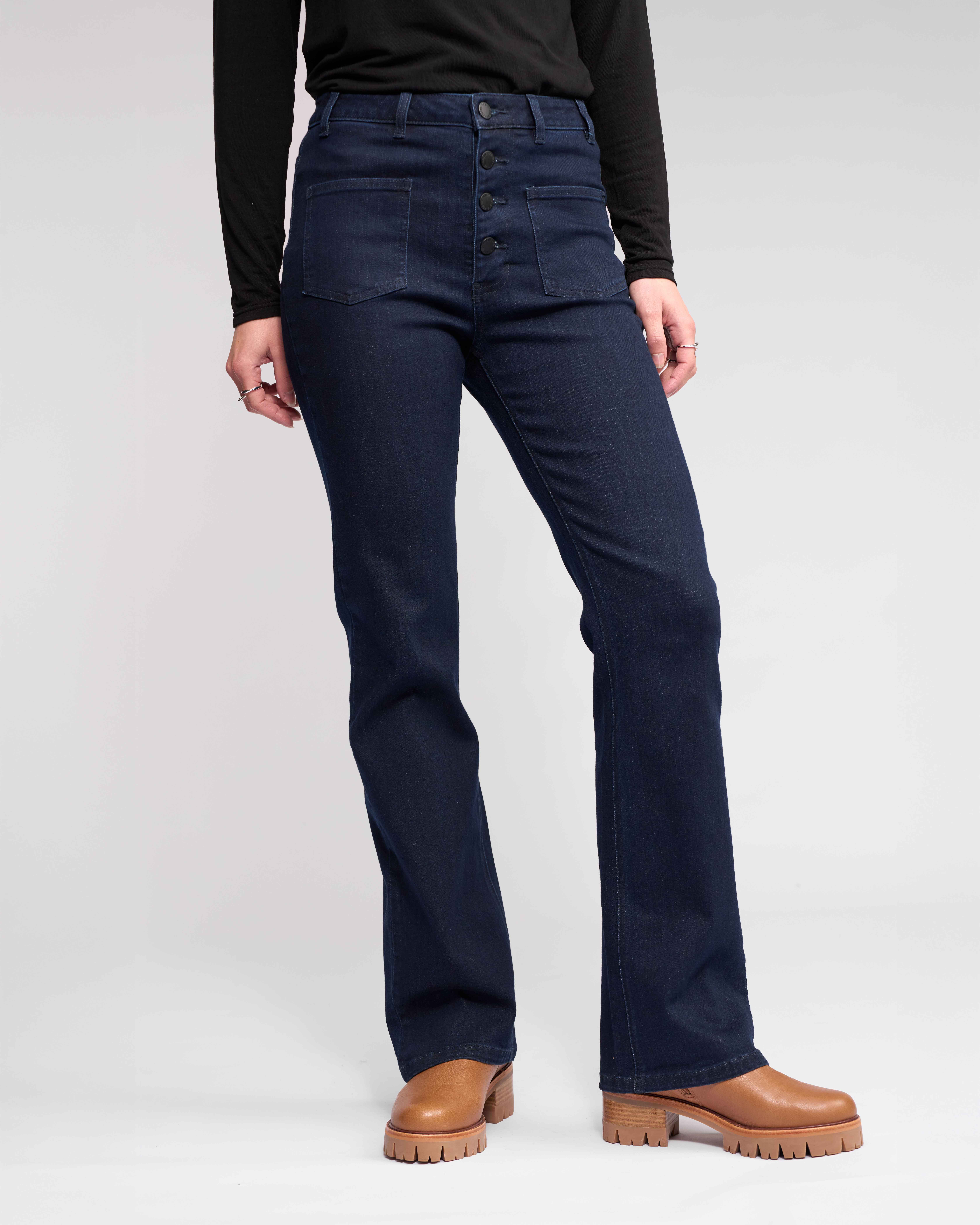 Full-length bootcut jean in Ink Denim, a dark blue wash. Cut from stretch denim for a comfortable, flattering fit.