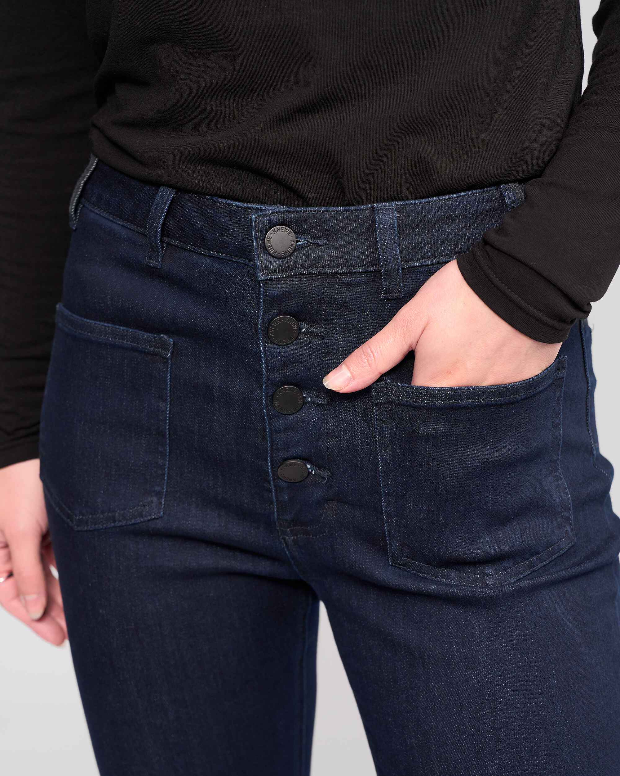 • Metal 'KNEWE' logo jean four-button fly