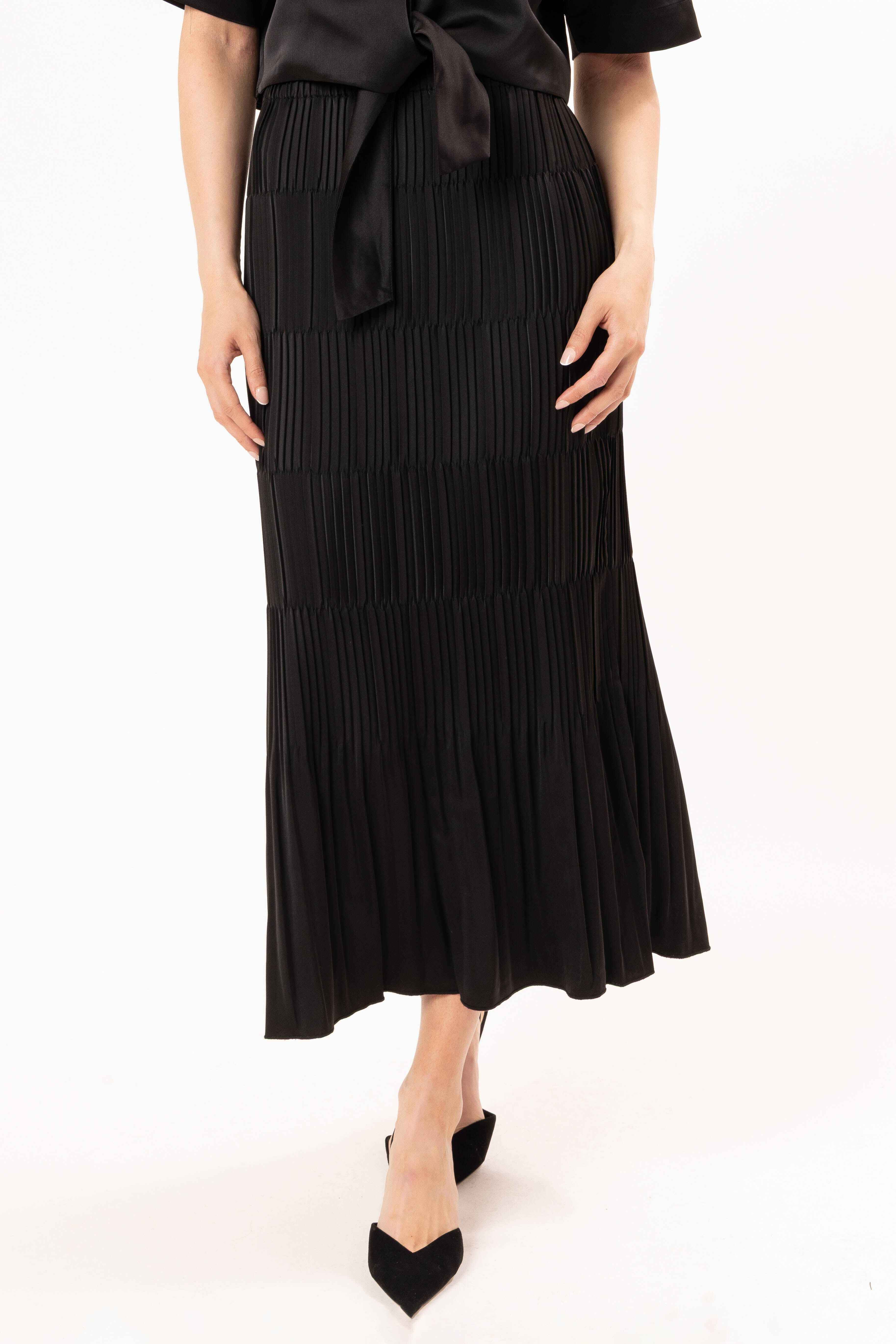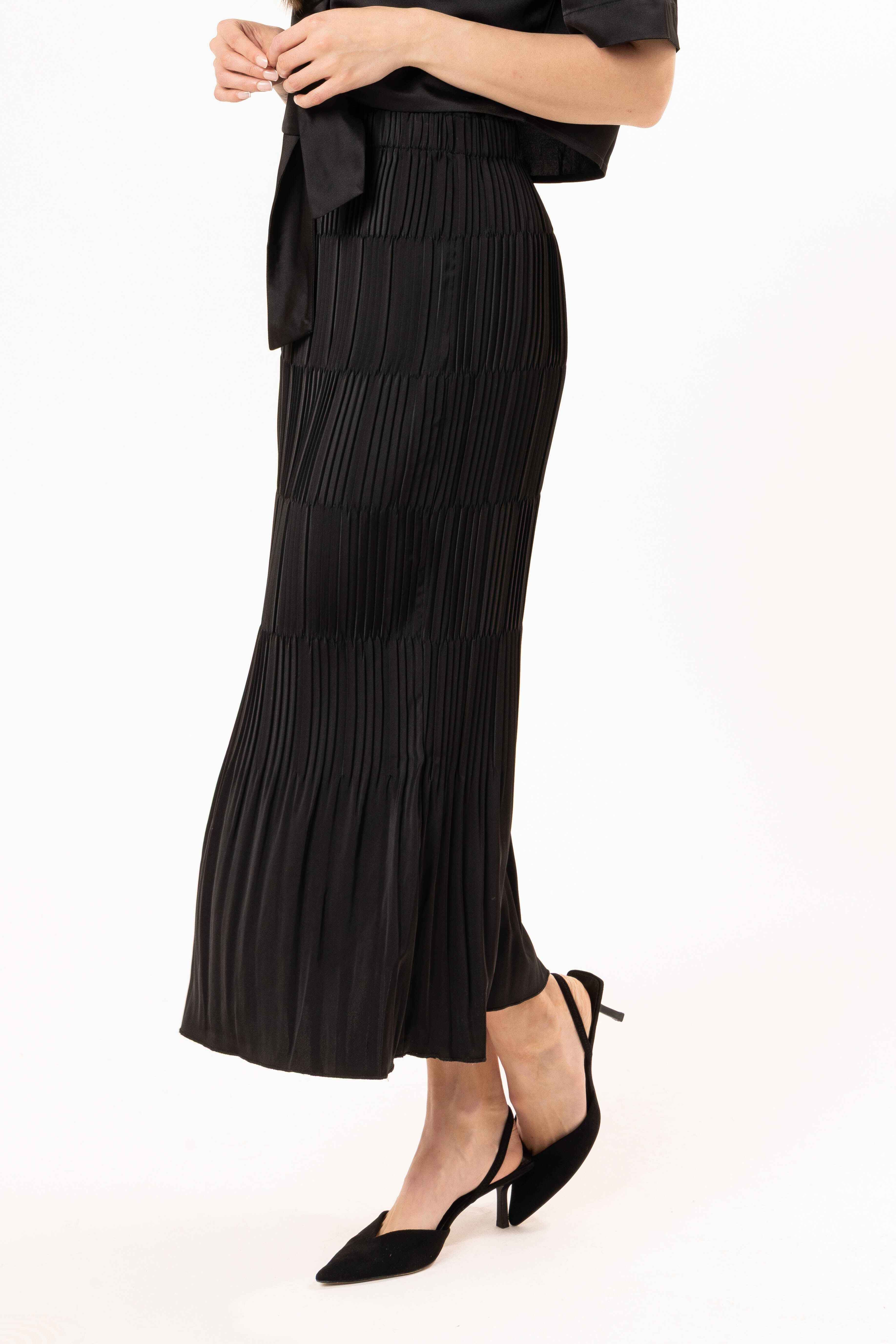 Elevate your everyday elegance with this beautifully crafted pleated skirt in classic black.
