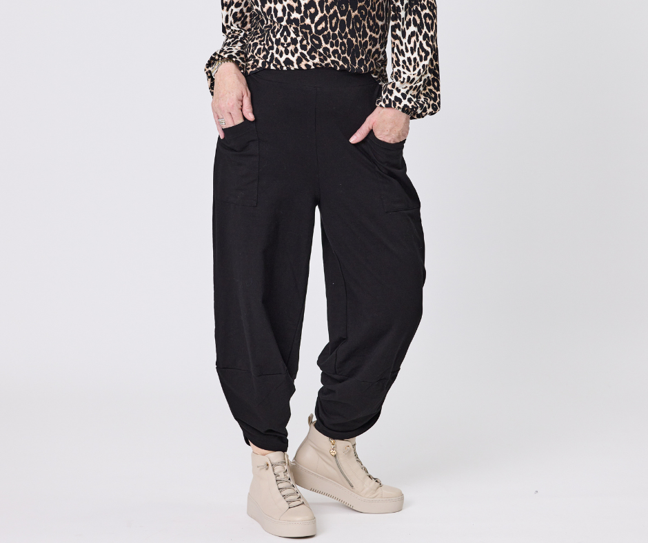 • These are casual, comfortable Black pants with a distinctive balloon silhouette