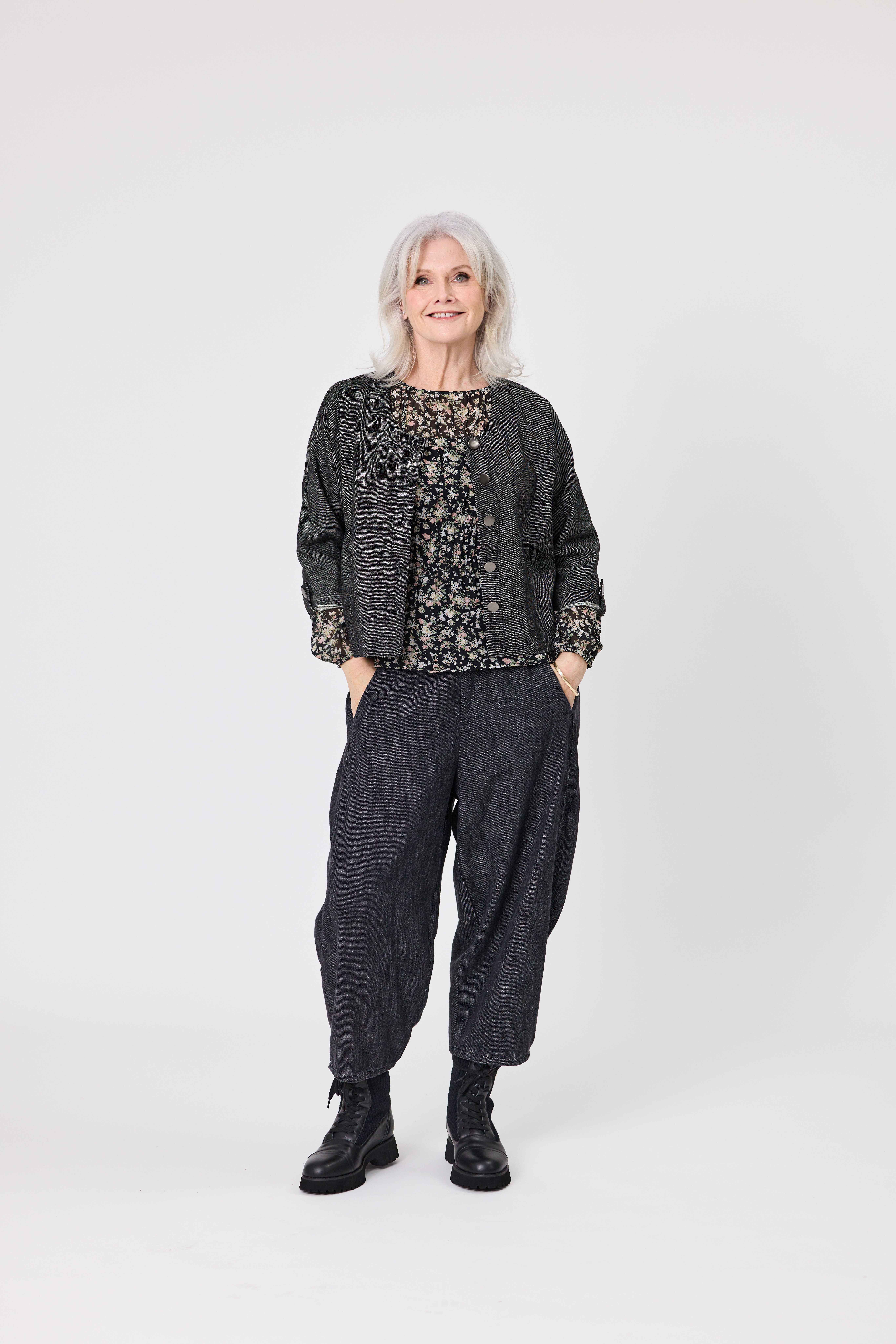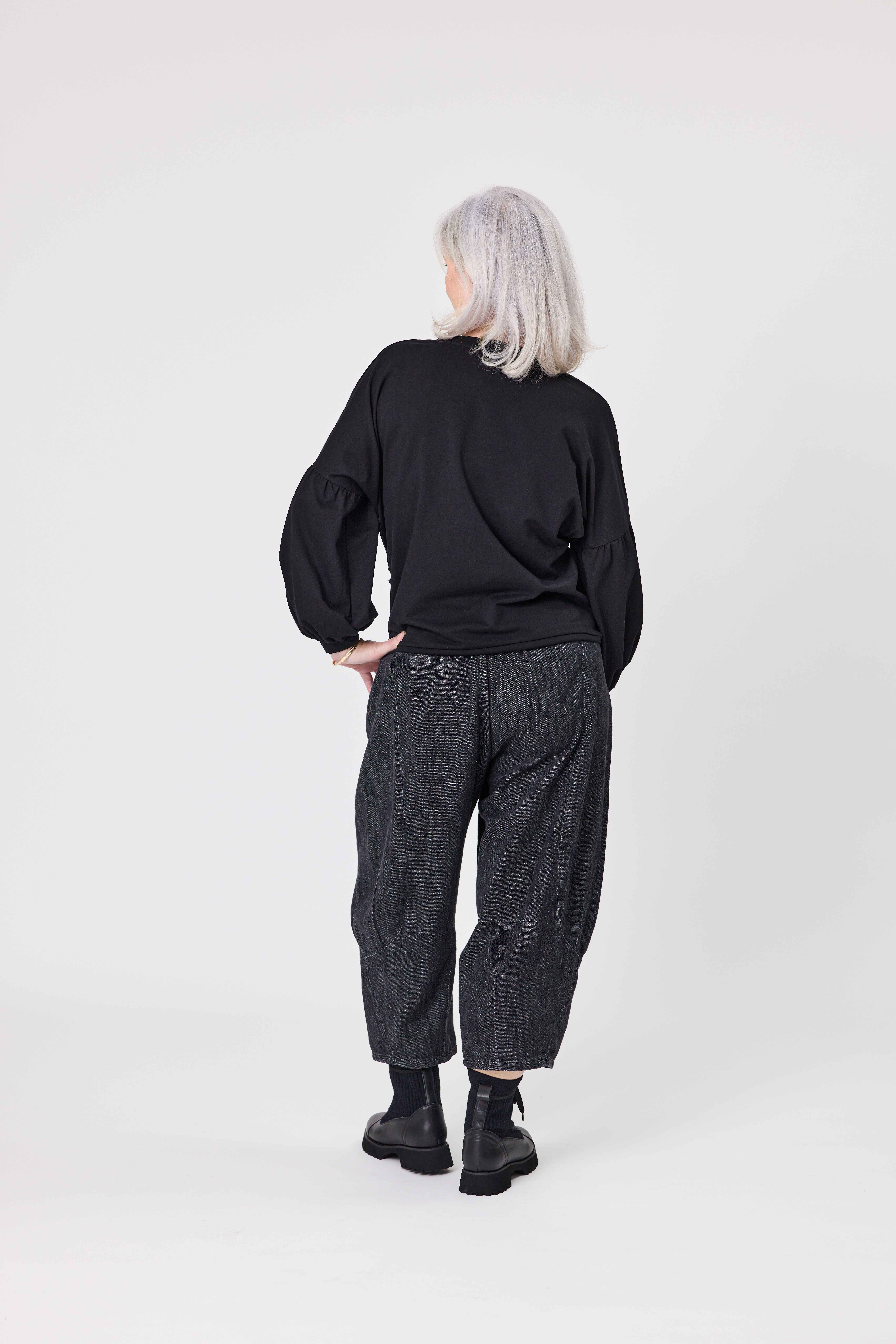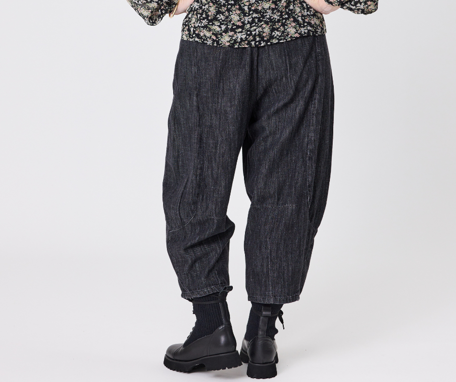 • Panelling around the legs these pants are made from Pure Cotton in a dark, textured Black Denim colour.