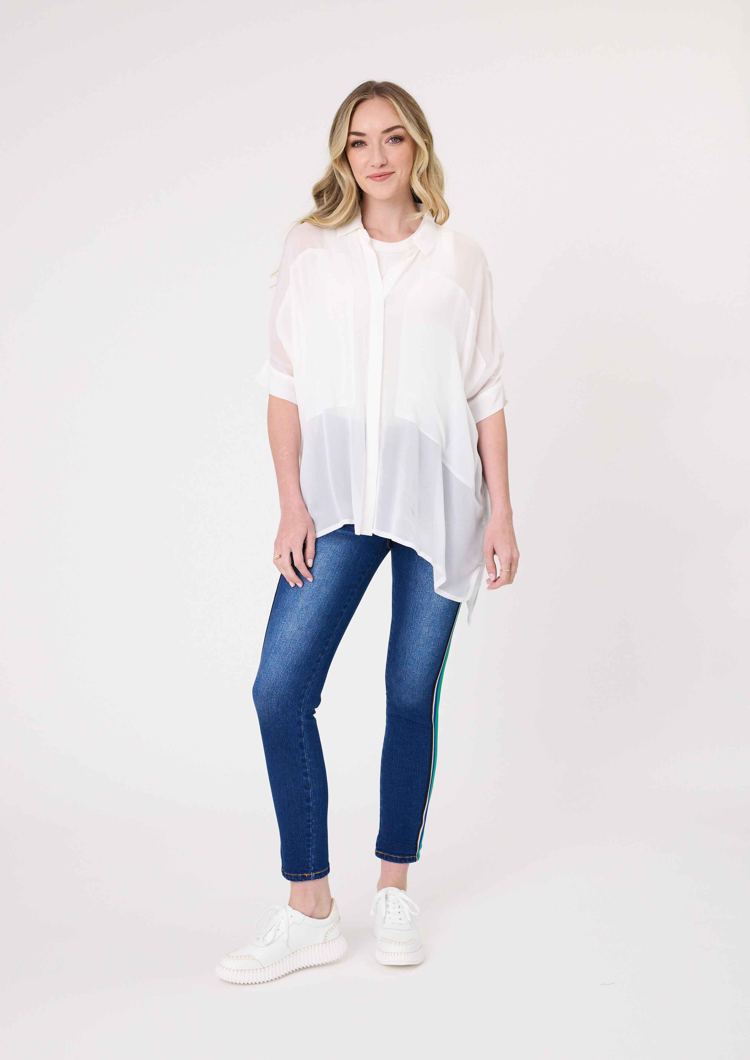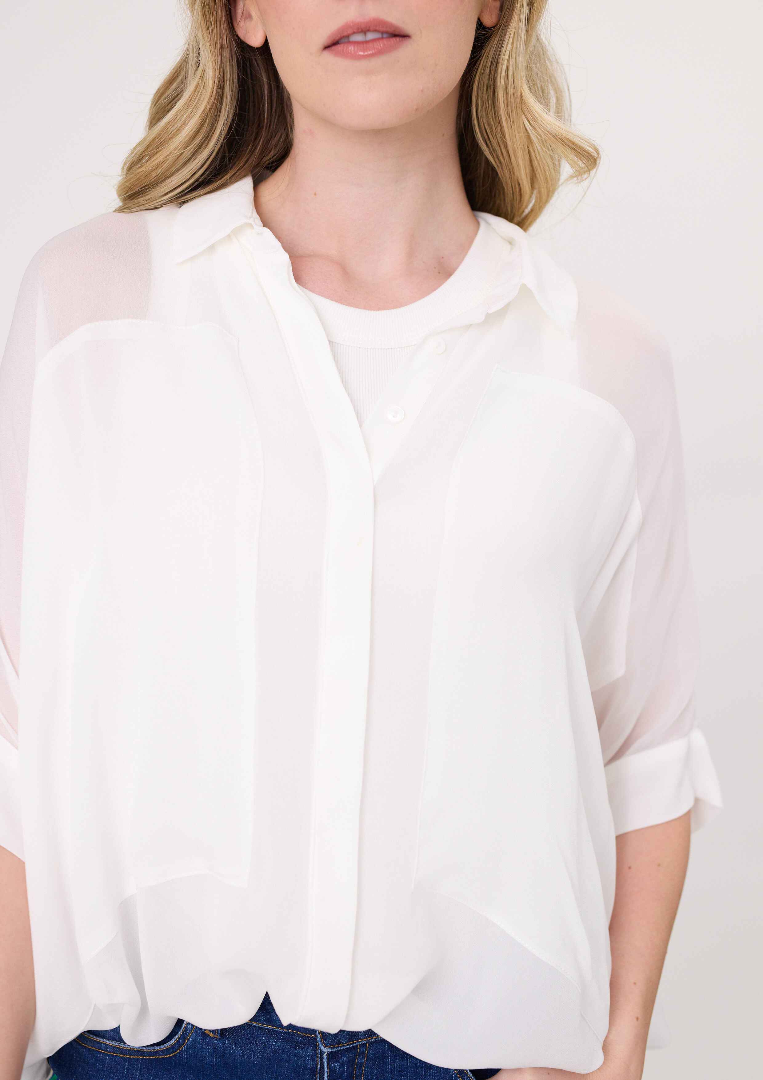 • Available in white and black with a sheer, oversized look.