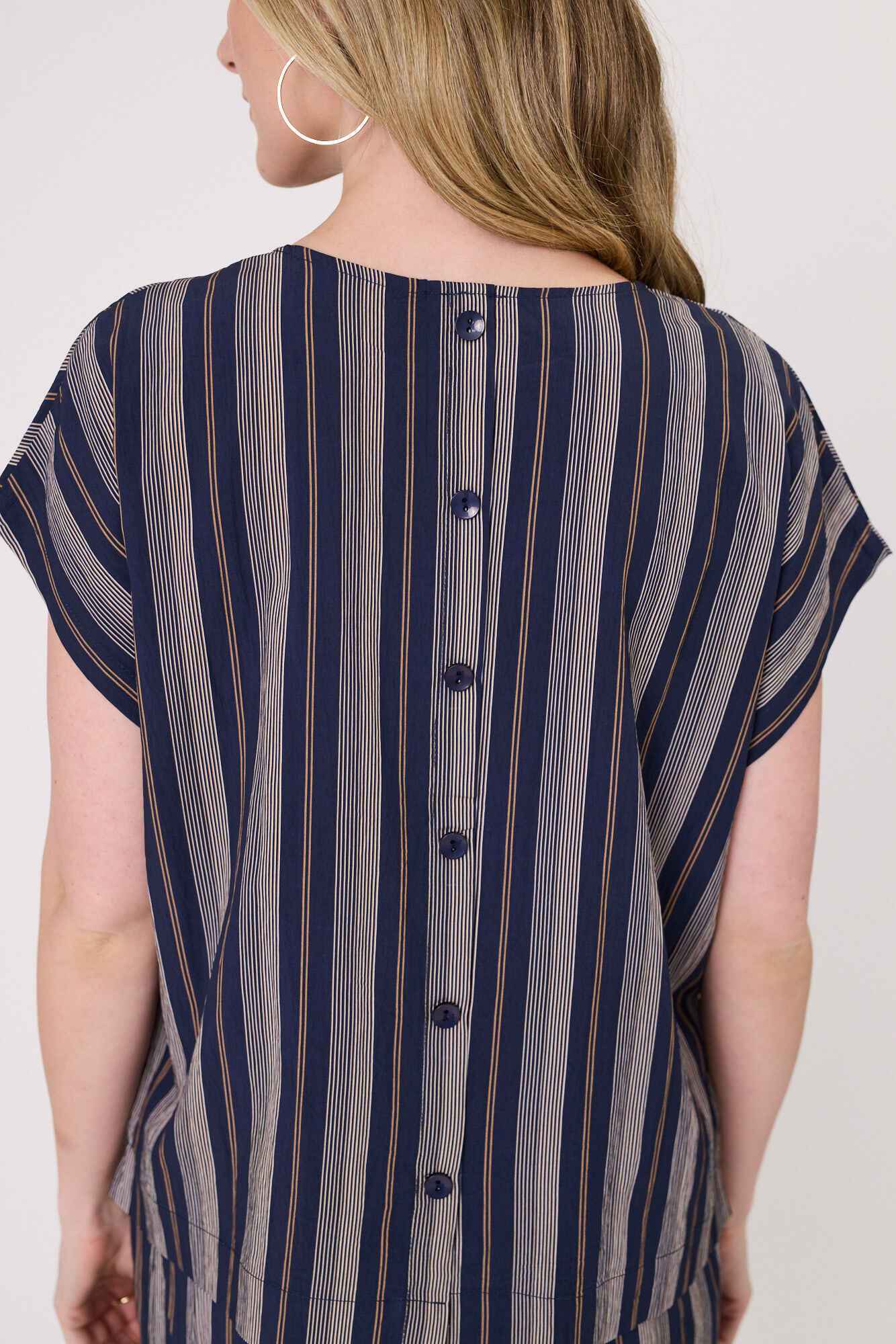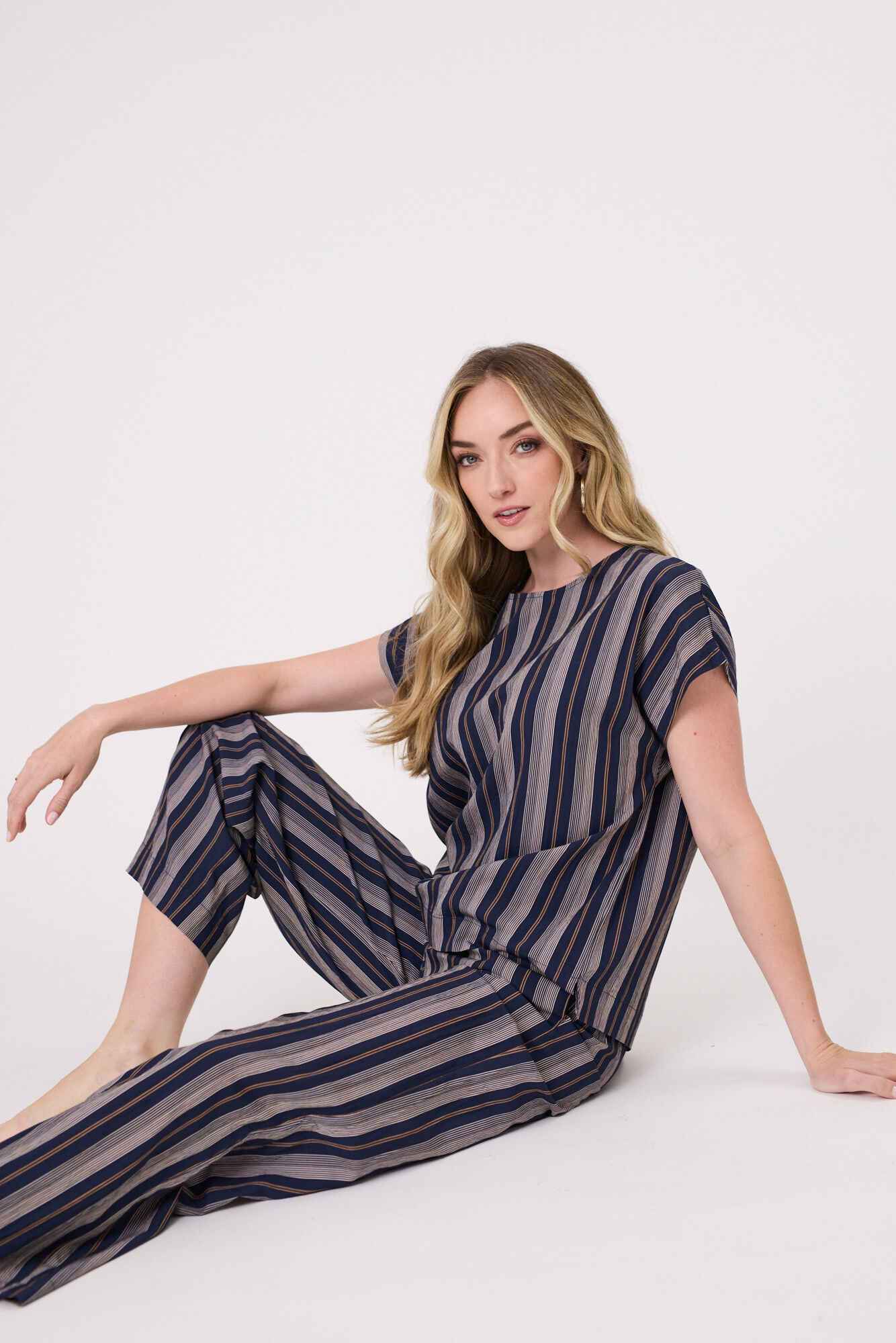 • Navy stripe design with a relaxed, summery yet minimal feel.