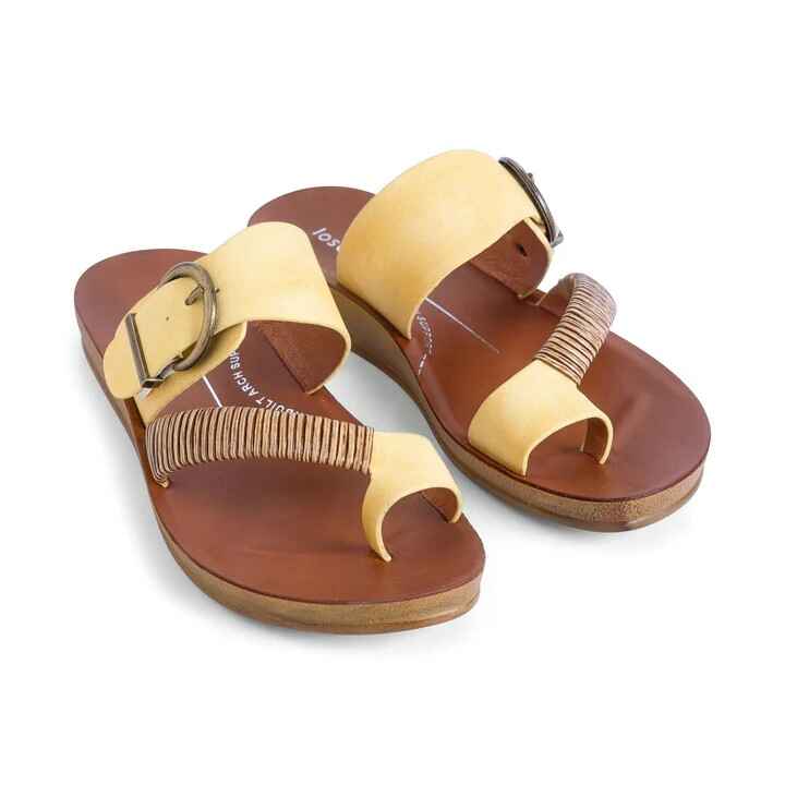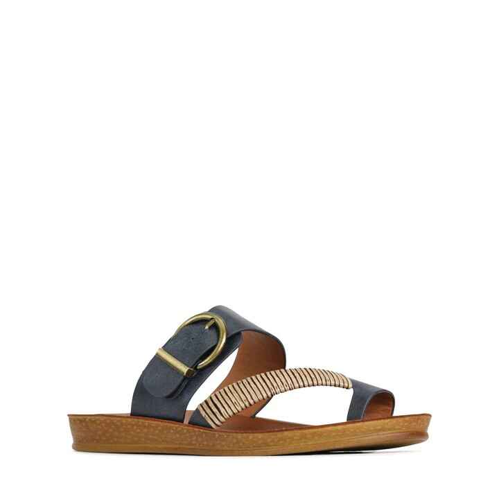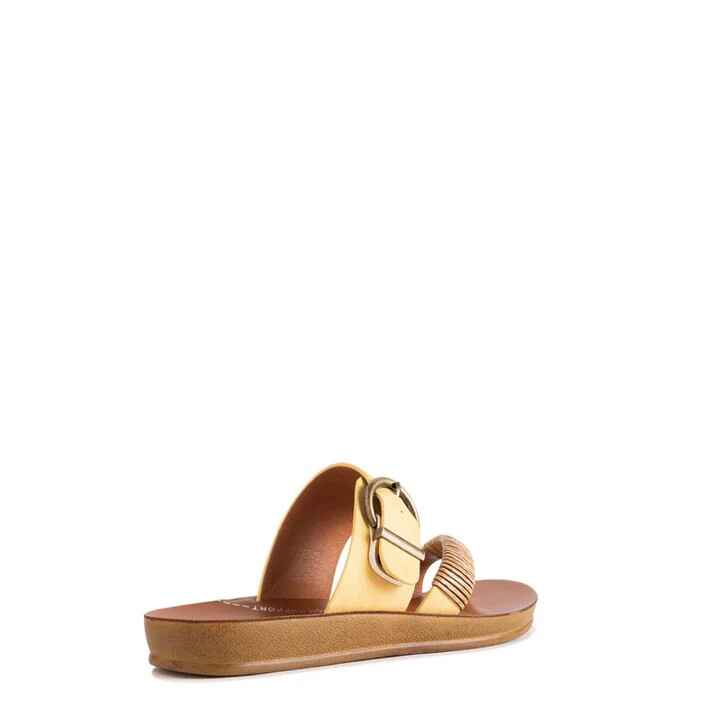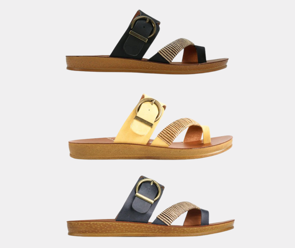 Los Cabos captures the spirit of fun in the sun with their Bria sandal. The ease of a slip-on is given a touch of natural beauty with our woven bamboo wrap gracing the toe strap, whilst the antique round buckle on the back strap adds a treasure box accent. Ideal for resort escapes, beach walks or just a shoe to slip on when you need to rush out the house.
