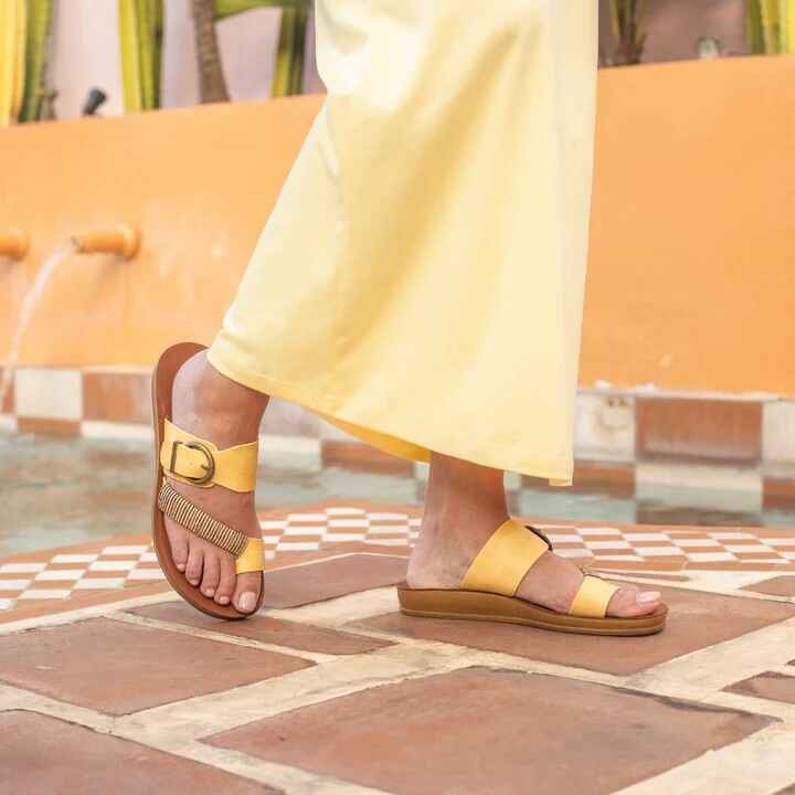 - Heel height: 20mm- Brilliant Summer shades- Toe strap with natural bamboo wrap- Fashionable antique feature buckle on ankle strap- Flexible sole- Essential Summer thong