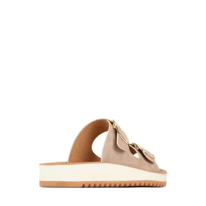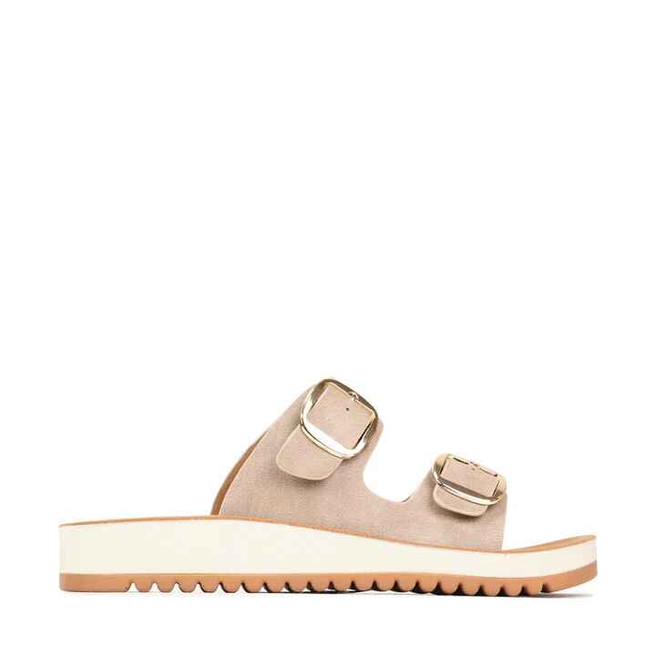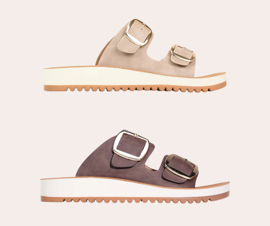 Elevate your style with the Naara Sandals. These classic slides feature double adjustable buckles and a low wedge heel, combining timeless design with modern comfort. Enjoy all-day support with built-in arch support and the luxurious feel of vegan leather.