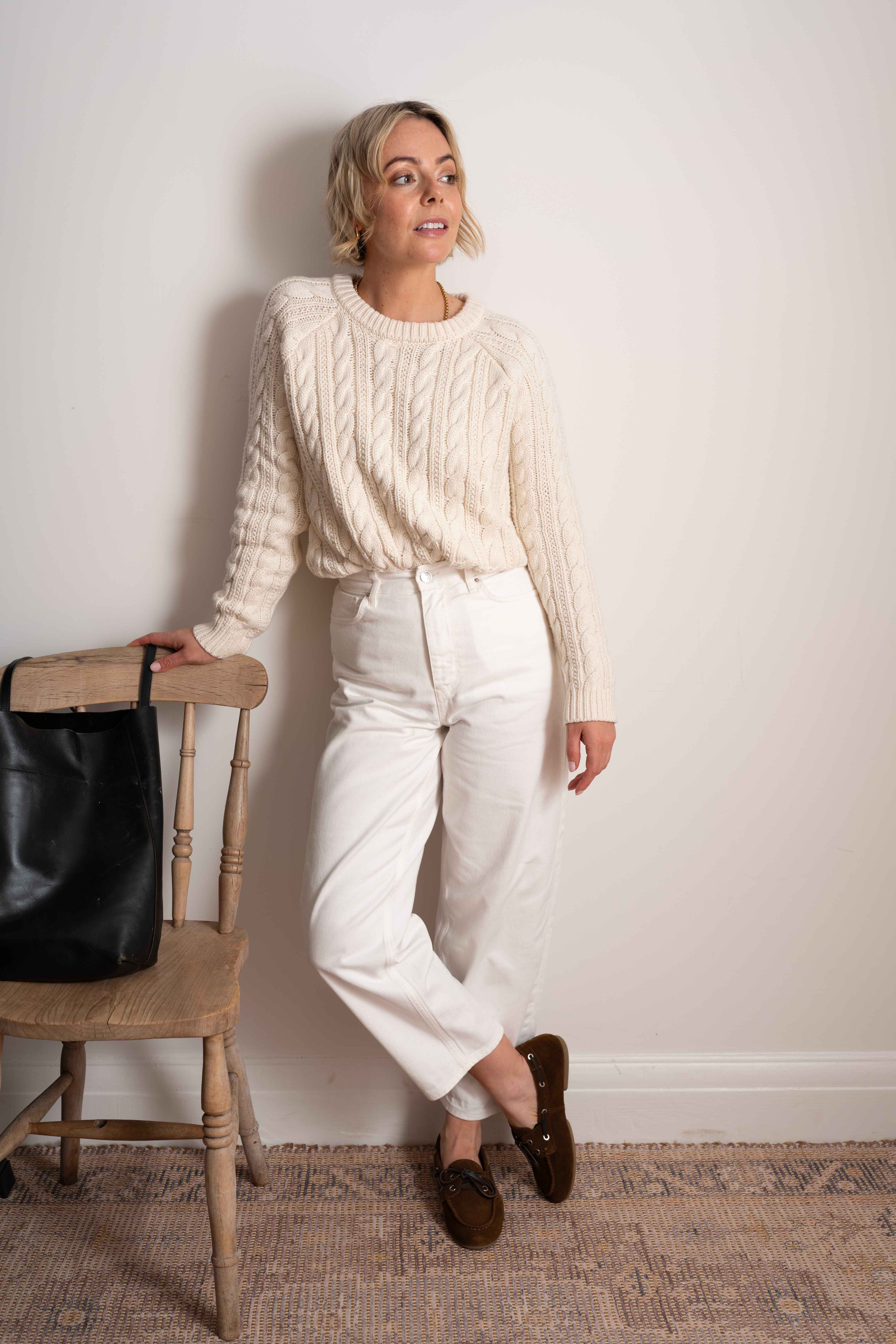 A timeless cable knit in a soft cream tone, designed to move effortlessly through the seasons. Featuring a relaxed fit and classic cable detailing, this piece blends texture with simplicity for an understated, refined look. The soft handle makes it an easy everyday layer—polished enough to dress up, relaxed enough to wear on repeat.60% Cotton30% Nylon 10% MerinoCare Instructions:Wash inside out, cold gentle wash with similar colours. Do not soak or bleach. Line dry in shade, do not tumble dry. Dry cleanable. Always check the label