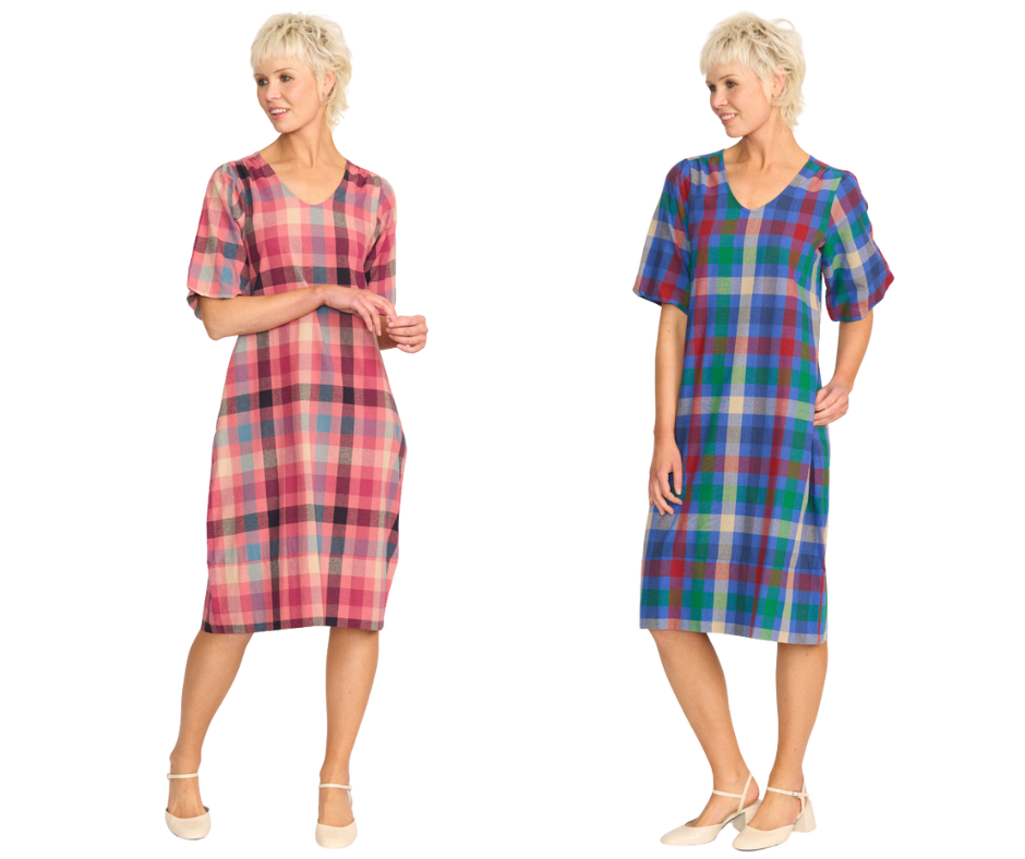 The perfect textured check throw-on dress. Rib detail at the cuffs, neckband and hem.