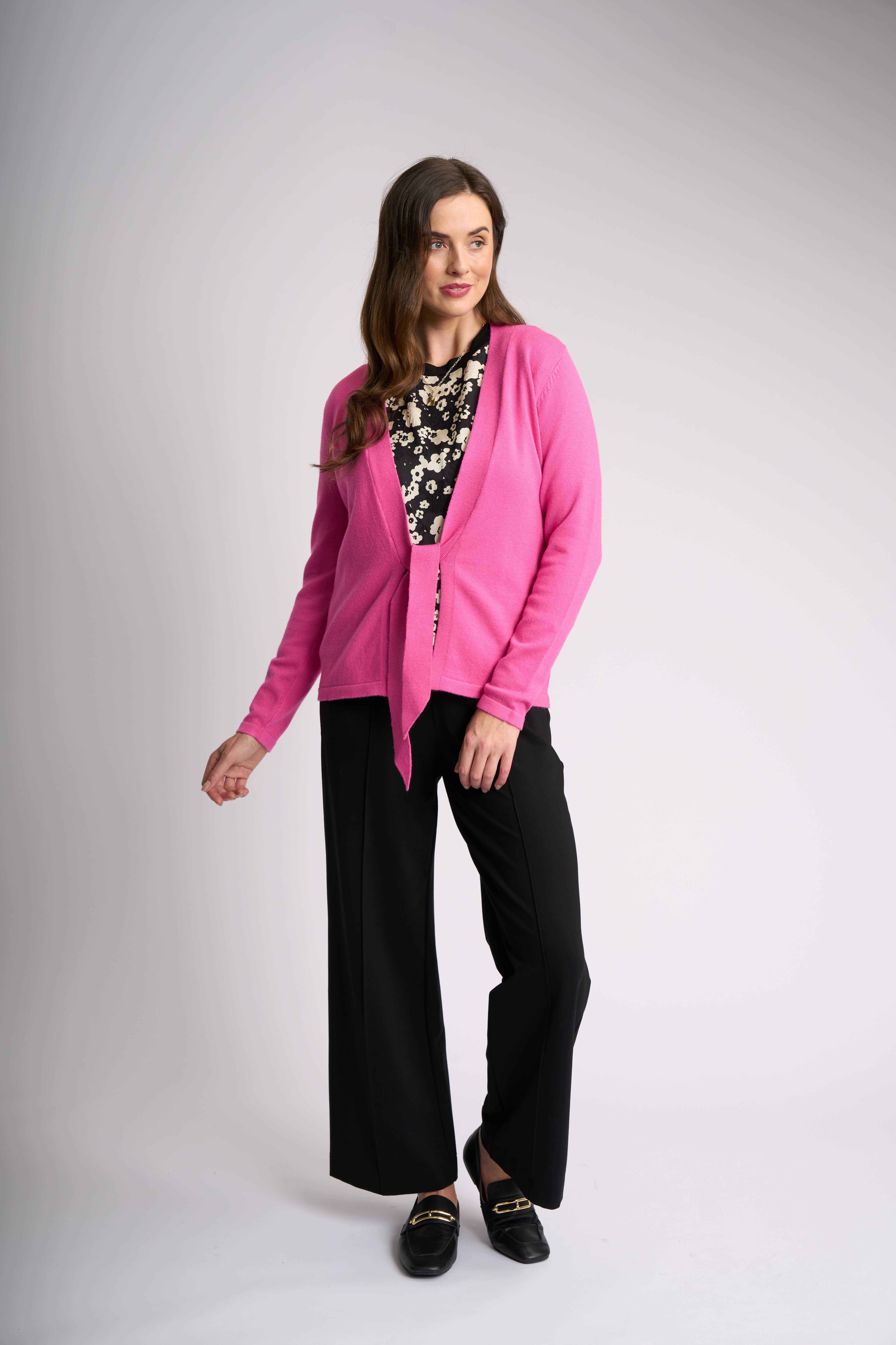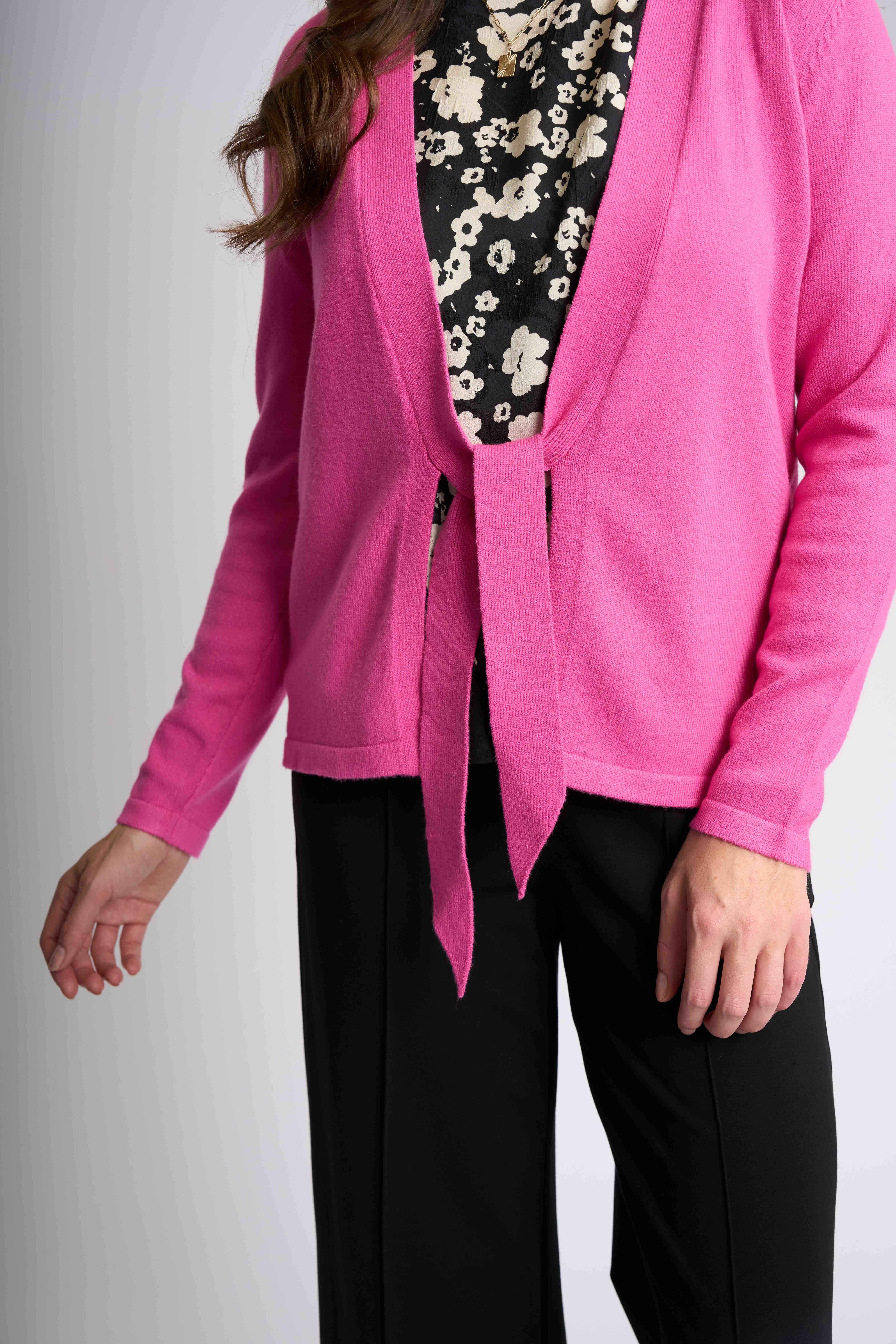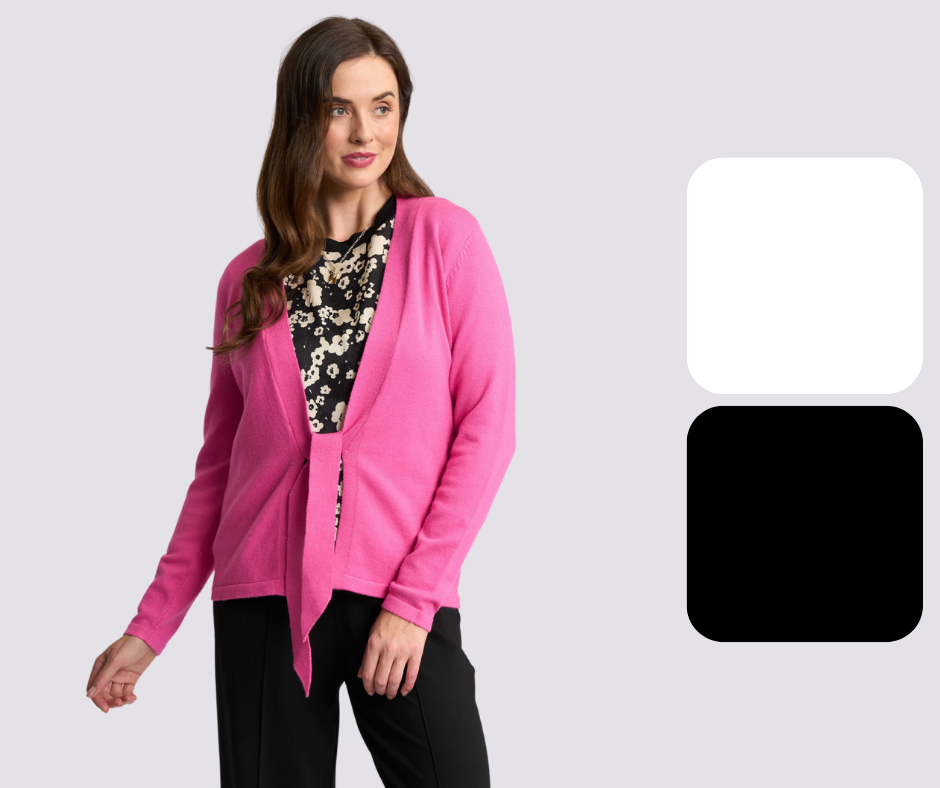 Our stylish open cardigan featuring a front tie detail is perfect for layering. Designed with full-length sleeves and available in a variety of colours to suit any outfit. Body length of approximately 60.5cm from shoulder to hem (size small), this versatile piece offers a flattering silhouette and a cozy fit.