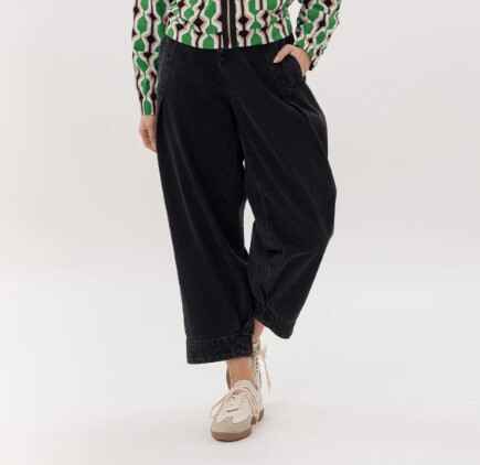 The relaxed leg shape creates an easy, laid-back feel, balanced by tailored seam detailing for a refined finish. Sitting high on the waist, they’re perfect for pairing with tucked-in knits, fitted tops, or oversized layers.99% cotton 1% spandexCare Instructions:Wash inside out, cold gentle wash with similar colours. Do not soak or bleach. Line dry in shade, do not tumble dry. Dry cleanable. Always check the label.