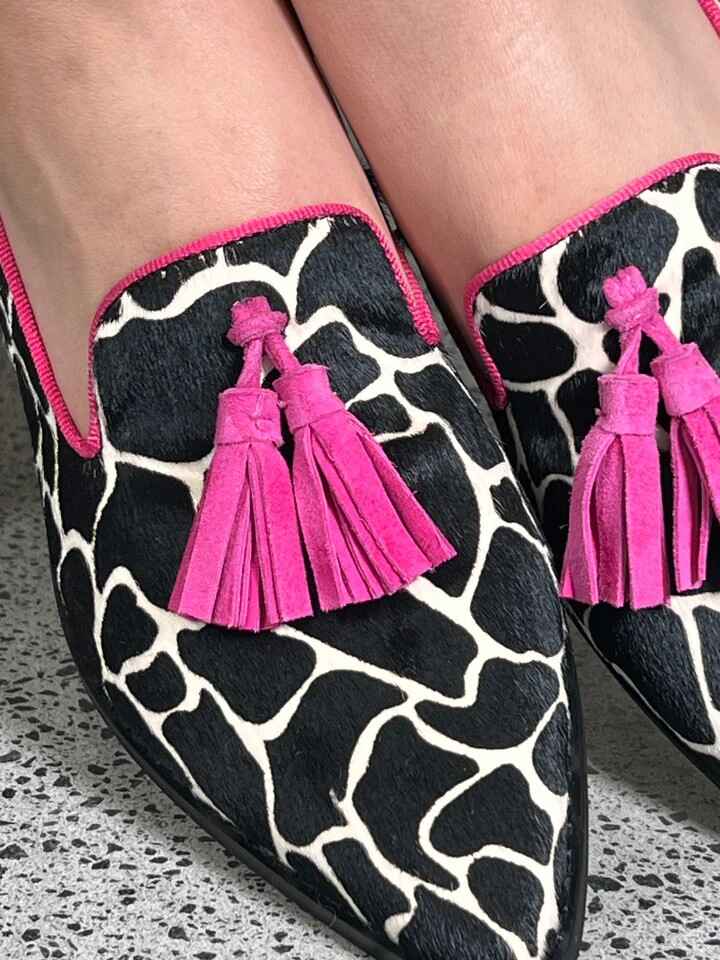Bexley is a pointed toe flat that combines polished sophistication with all day comfort. Part of our Wellness range, this style features a technical insole that provides cushioning for your heel and support for your arch. Crafted in a range of luxe leather options from patterned to sleek patent, each pair features a contrasting tassel for a subtle pop of detail. Fitted leather construction ensures a flattering comfortable fit. Soft leather lining and a low heel make it perfect for tailored trousers, midi skirts or jeans, creating a versatile stylish flat that balances casual ease with refined elegance.