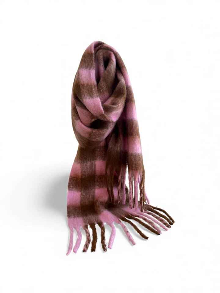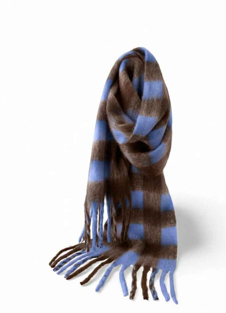 Checkers Scarf – Wrap up in cosy style with this super-soft, lush scarf, available in two colour options: baby pink with chocolate and baby blue with chocolate. Perfect for layering, it adds a gentle pop of colour and effortless comfort to any outfit, whether draped over knits or tucked under coats.
