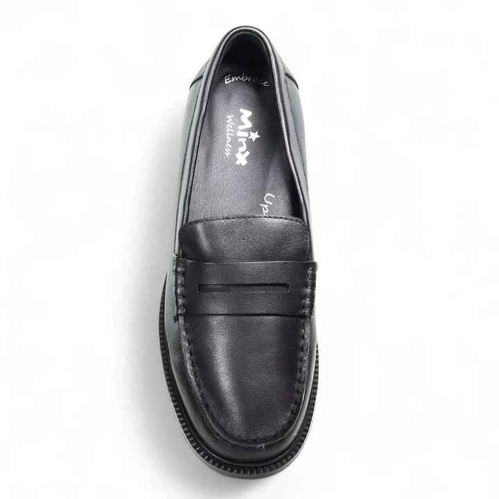 Hudson is a dapper traditional penny loafer from our signature MINX Wellness Range, crafted in buttery soft leather and set on a low wood stacked heel. The classic silhouette features a soft stitched apron front, adding subtle texture and refinement. Inside, the Wellness biomechanical removable insole cups the heel and supports the arch, delivering gentle, all-day comfort without compromising on style. Hudson pairs effortlessly with tailored trousers, relaxed suiting, or your favorite denim and cardigan, making it a versatile wardrobe staple that’s as elegant as it is comfortable.ORTHOTIC FRIENDLYRemovable InsolesCLEANING YOUR MINX SHOES: - Do not leave your MINX in the sun, in a hot car or other similar high heat environments Dry only in the shade, in a dry and ventilated place.- Soft brushes or dry sponges or soft cloth are the most suitable for cleaning. Every leather reacts different to cleaning techniques. If in doubt please contact MINX or your local shoe repairer for leather care advise. - Never use a washing machine or dryer for the shoes, do not soak the shoes in water, or rinse them under the tap.