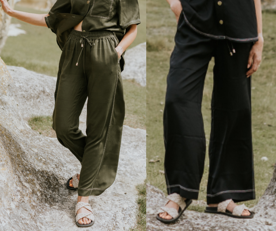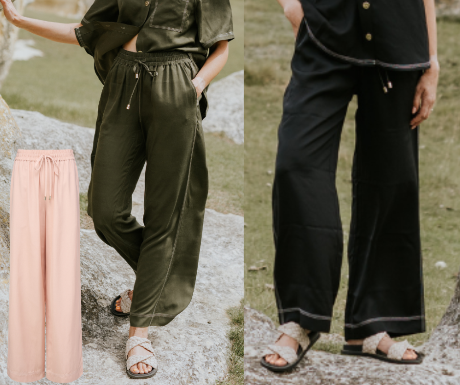 Elevate your casual wardrobe with these floaty, wide-leg pull-on pants, designed for ultimate comfort and style. Crafted from a luxurious blend of butter-soft viscose, Tencel, rayon and linen, these pants offer a silky-smooth feel against the skin, while their breezy, relaxed fit provides all-day ease. The triple topstitch detailing along the side of the legs and hem adds a touch of refinement, while the pale gold drawstring stoppers lend a subtle hint of luxe. Whether dressed up with a sleek top or paired with your favourite tee, these pants are a versatile essential for effortless style. Perfect for everything from laid-back weekends to stylish getaways, these pants are sure to be a staple in your wardrobe