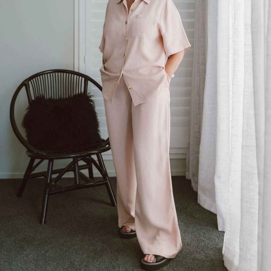 Elevate your casual wardrobe with these floaty, wide-leg pull-on pants, designed for ultimate comfort and style. Crafted from a luxurious blend of butter-soft viscose, Tencel, rayon and linen, these pants offer a silky-smooth feel against the skin, while their breezy, relaxed fit provides all-day ease. The triple topstitch detailing along the side of the legs and hem adds a touch of refinement, while the pale gold drawstring stoppers lend a subtle hint of luxe. Whether dressed up with a sleek top or paired with your favourite tee, these pants are a versatile essential for effortless style. Perfect for everything from laid-back weekends to stylish getaways, these pants are sure to be a staple in your wardrobe
