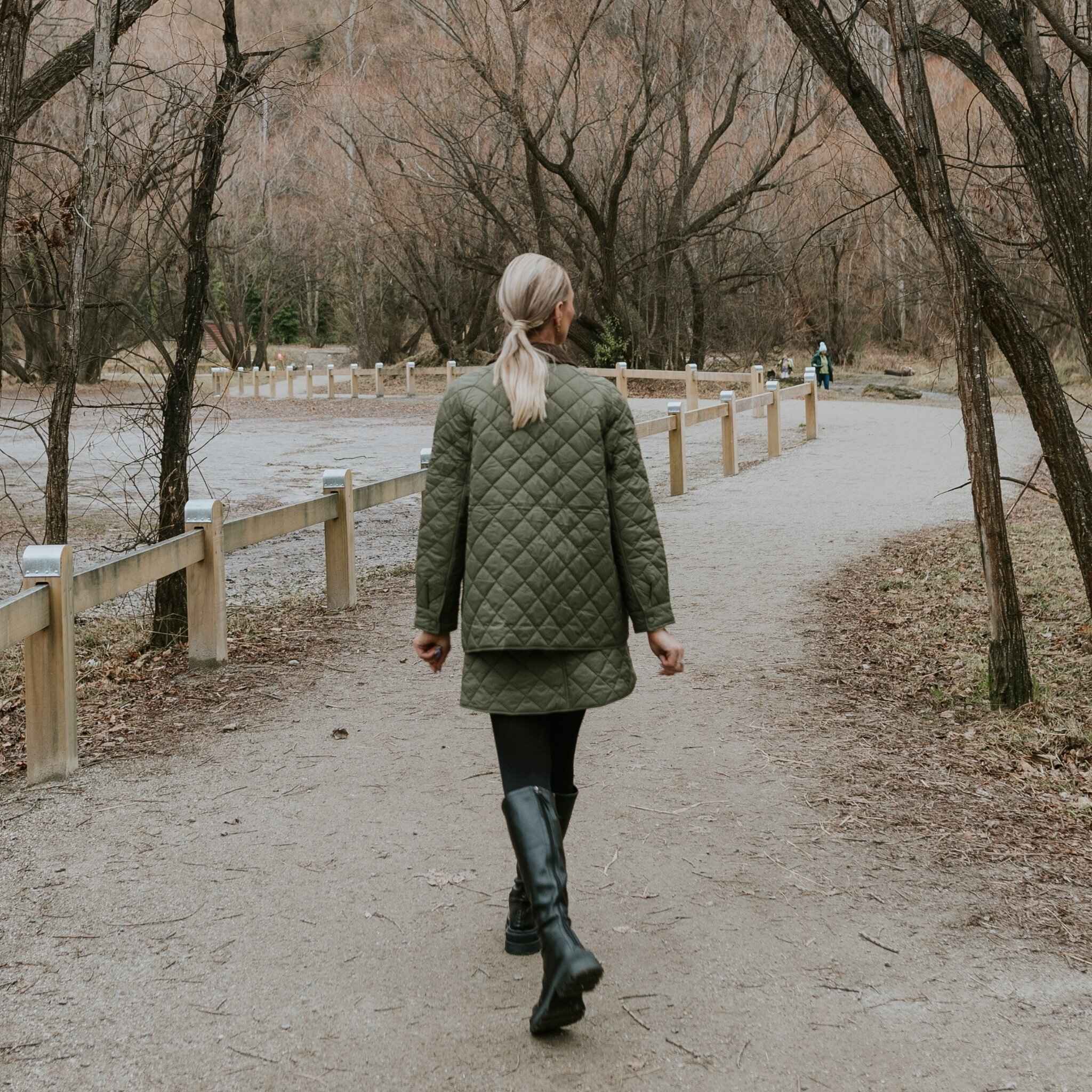 Designed with a classic diamond quilt pattern, Daisy channels an elegant English countryside aesthetic while maintaining a clean, modern feel. The statement corduroy collar adds texture and sophistication, while the snap-button front keeps the look relaxed yet elevated.