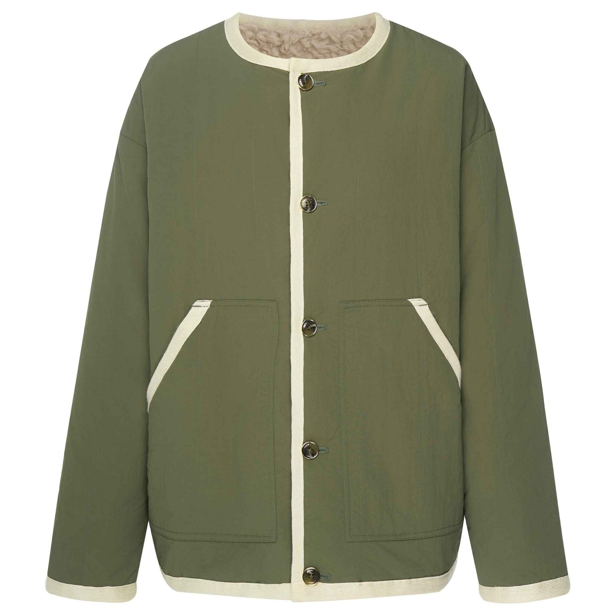 FEATURES:Women’s reversible jacket with two distinct looksCasual outer side with contrast piping detailLuxe faux shearling and pile reverse for warmth and textureRelaxed yet refined fit for easy everyday wearDesigned for versatility and styling flexibility