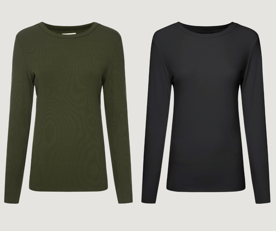 FEATURES:• Buttery-soft women’s ribbed jersey top designed for elevated everyday wear• Double-layered construction for added warmth, comfort, and confident coverage• Smooth, body-skimming fit that flatters without clinging• Round neckline for a clean, modern silhouette• Long sleeves for effortless layering through cooler months• Beautifully soft fabrication with gentle stretch for all-day ease• Subtle pale gold hardware at the back neck for a refined finish• Perfect for layering under coats, jackets, and knitwear95% Rayon 5% SpandexCare Instructions:Wash inside out, cold gentle wash with similar colours. Do not soak or bleach. Line dry in shade, do not tumble dry. Dry cleanable. Always check the label.