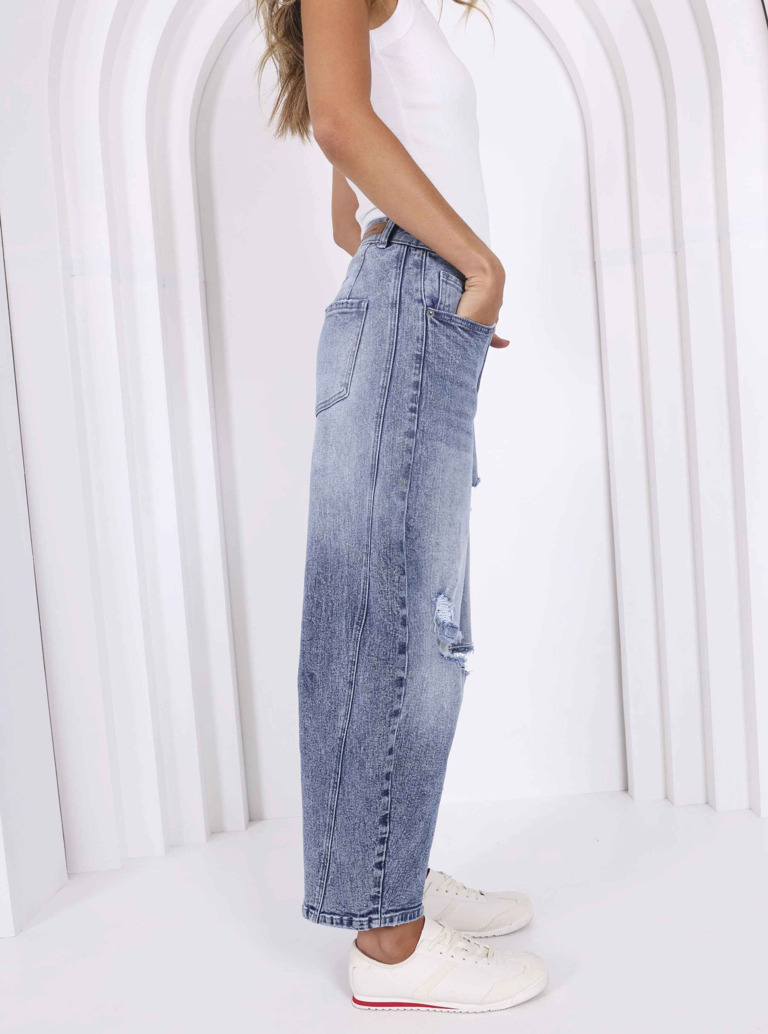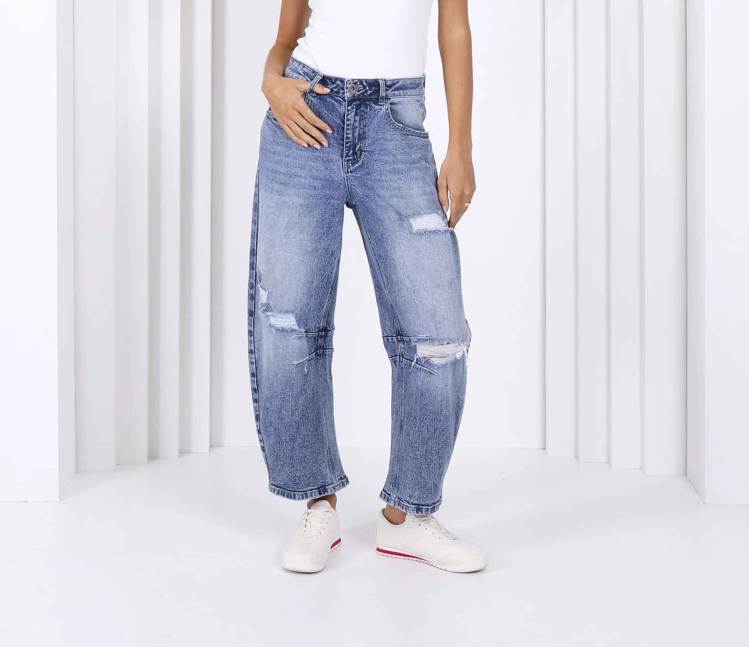 The Monaco Theo Barrel Jeans feature a relaxed barrel-leg fit with perfectly placed distressing for a modern edge. Soft, worn-in denim keeps things comfortable, while the cropped length works seamlessly with sneakers or slides. An easy everyday jean with personality.