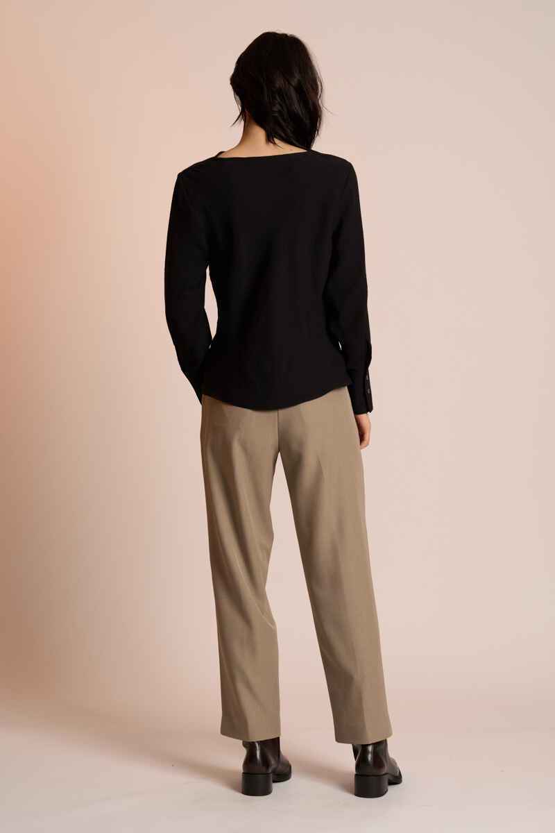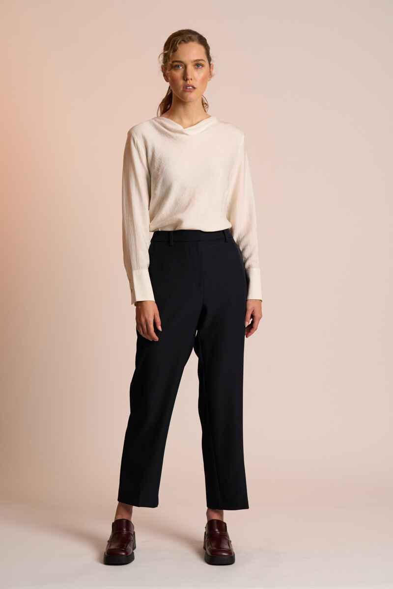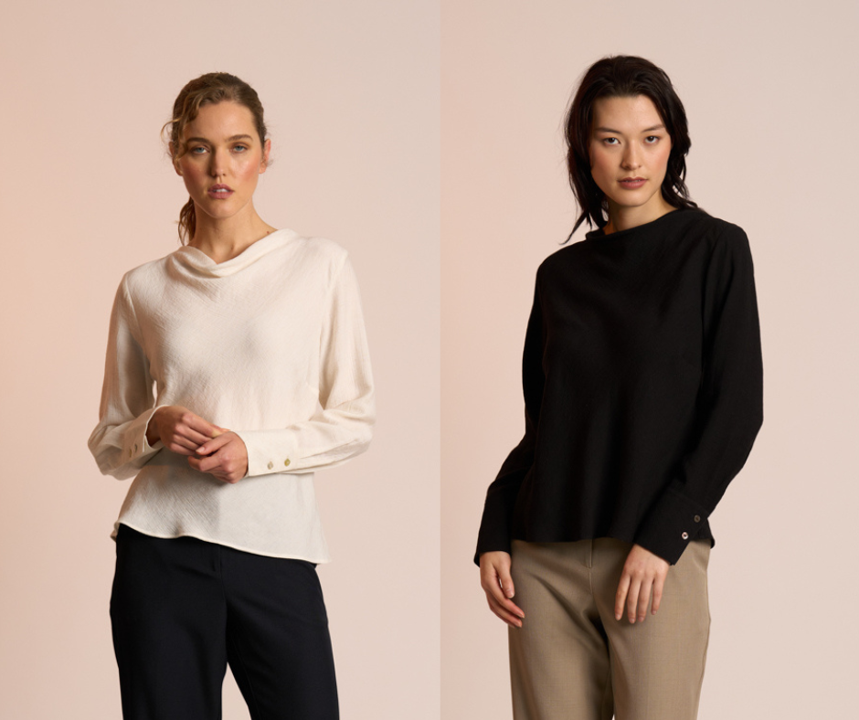The Ines Top by Neris is crafted from a refined, textural fabric and features a subtle cowl neckline for a softly elevated look. Cut on the bias, it drapes beautifully over the body, offering an elegant, fluid silhouette. Finished with sleeves that button at the cuff, this blouse is a gorgeous dressier option that transitions seamlessly from day to night.