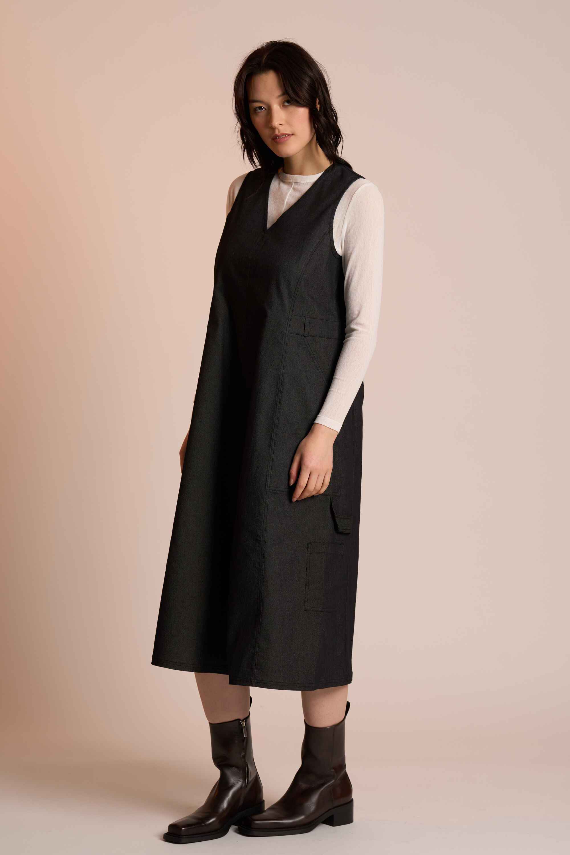 The Lennox Pinafore by Neris is a versatile dress designed for effortless layering. Wear it over a fitted mesh top on milder days or pair with cosy merino for added warmth. The pinafore features a clean V-neckline and a flattering A-line silhouette, finished with oversized side pockets for a functional, modern touch. Crafted from soft stretch denim, it moves comfortably with you, making it an easy, adaptable piece for everyday styling.