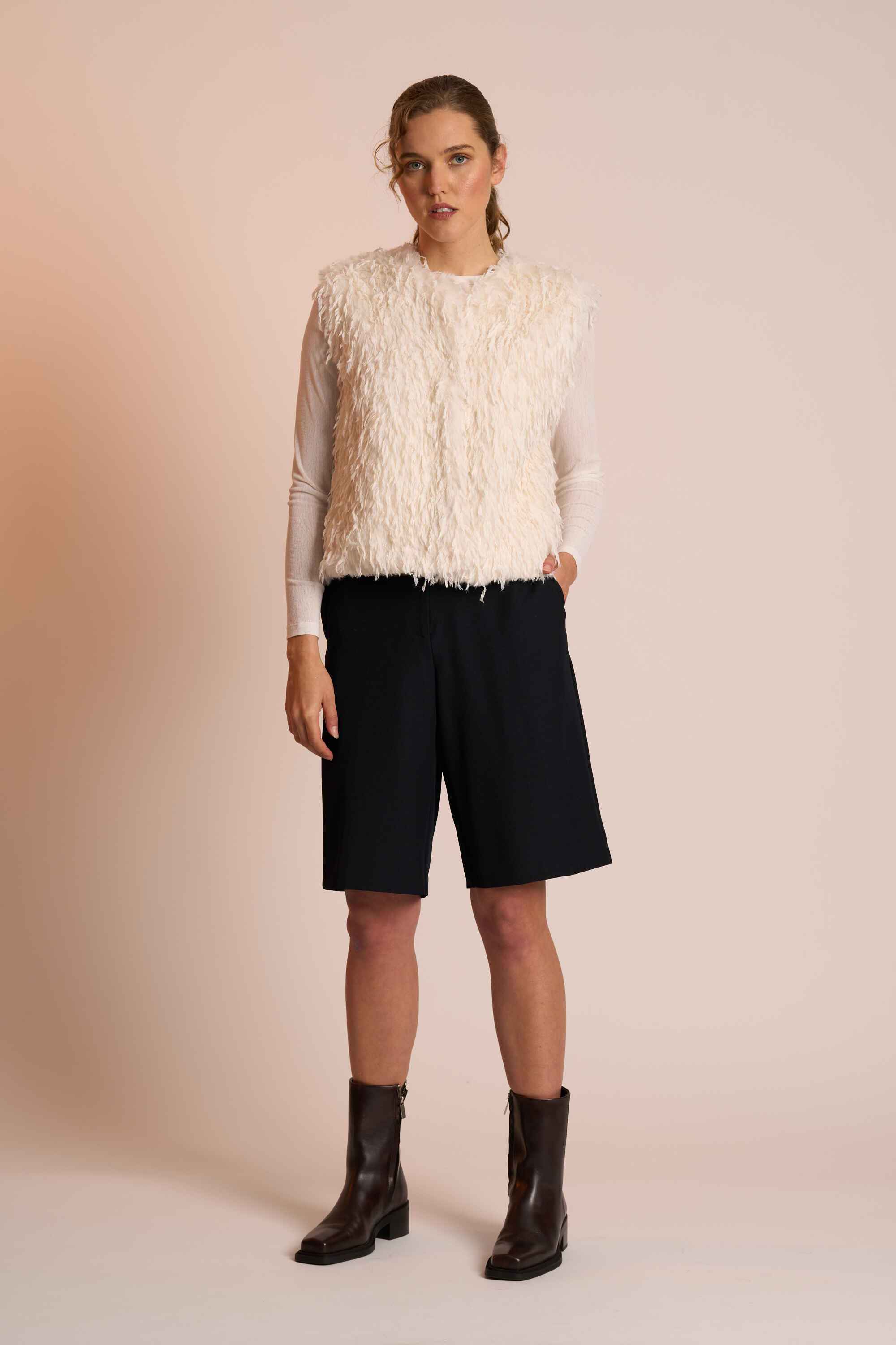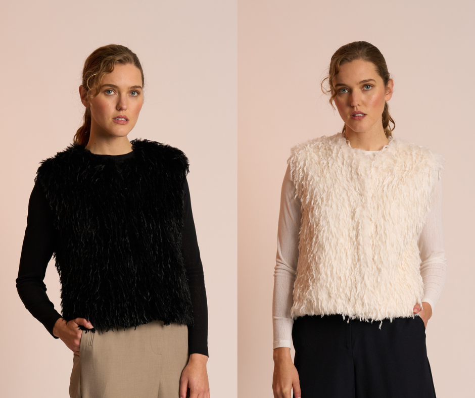 The Wilde Gilet by Neris channels your inner swan with its beautifully textural, feather-like fabrication. Wonderfully soft and undeniably statement-making, it’s the perfect layer to add depth and interest to any outfit. Fully lined for comfort, it fastens with a hook-and-eye clasp and features practical pockets. A standout piece for elevated winter styling.