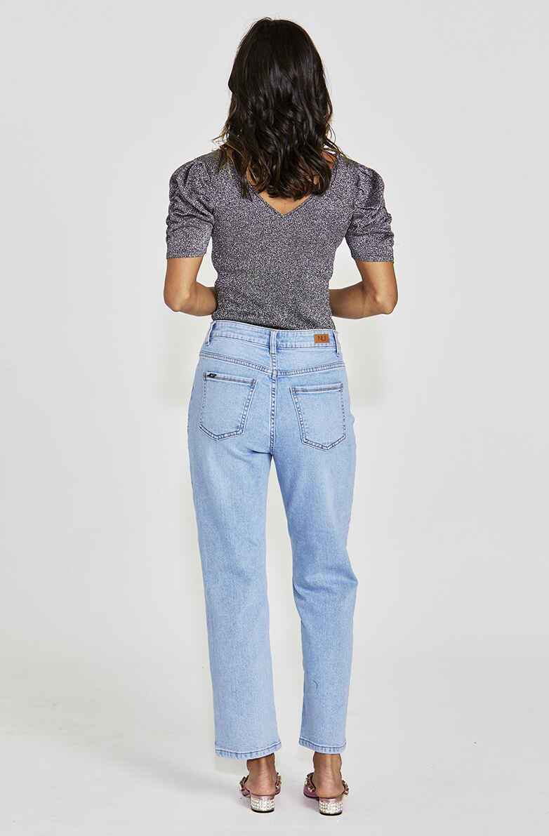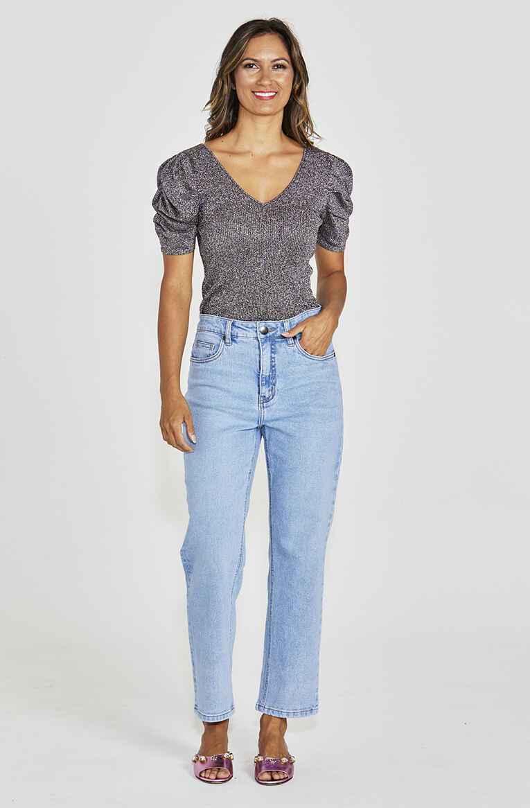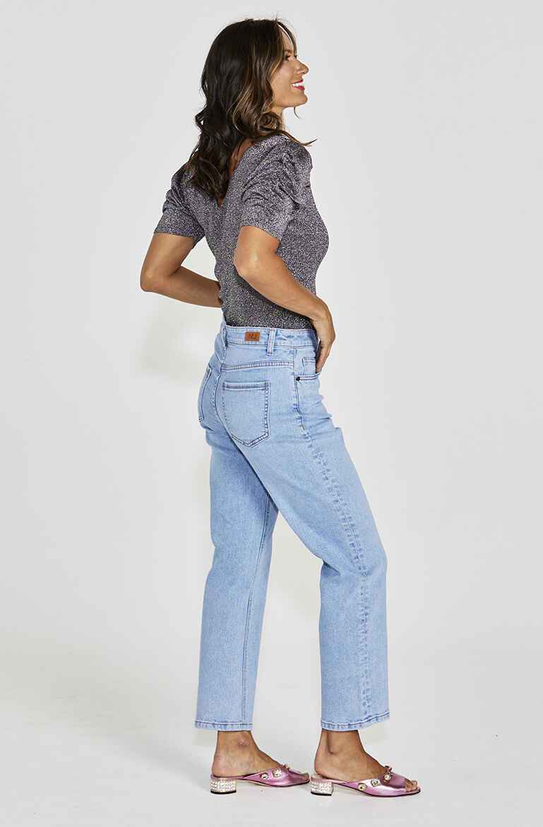 Retro never looked better than this high rise ankle grazer straight leg jean. The denim has a rigid look but actually stretches. 29cm rise. 28inch inseam. 40cm around hem.92% Cotton 6% Polyester 2% SpandexCare Instructions:Wash inside out, cold gentle wash with similar colours. Do not soak or bleach. Line dry in shade, do not tumble dry. Dry cleanable. Always check the label.