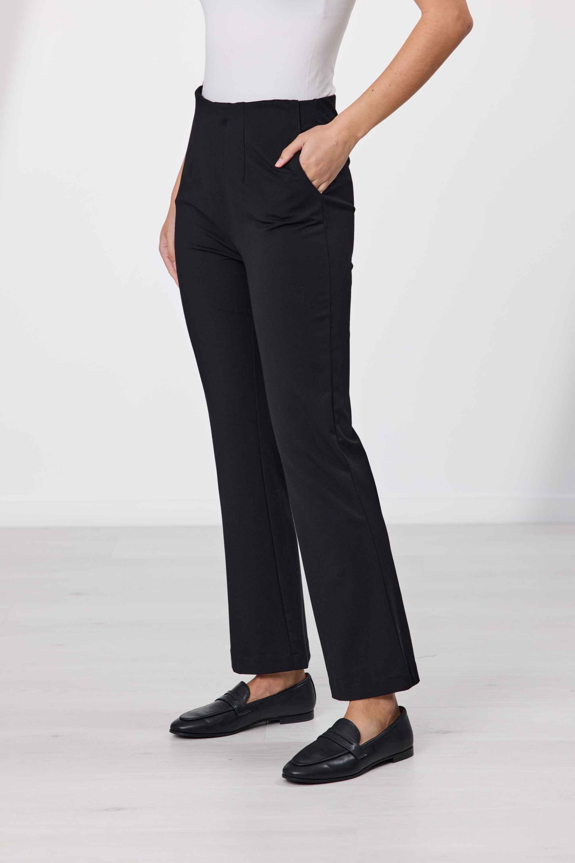 Designed for comfort and style, these pull-on pants are crafted from soft, structured ponti fabric that offers a flattering fit with ease of movement. Featuring functional pockets and a flared leg silhouette, they’re a versatile wardrobe staple that transitions effortlessly from day to night. Perfect for pairing with everything from sneakers to heels.