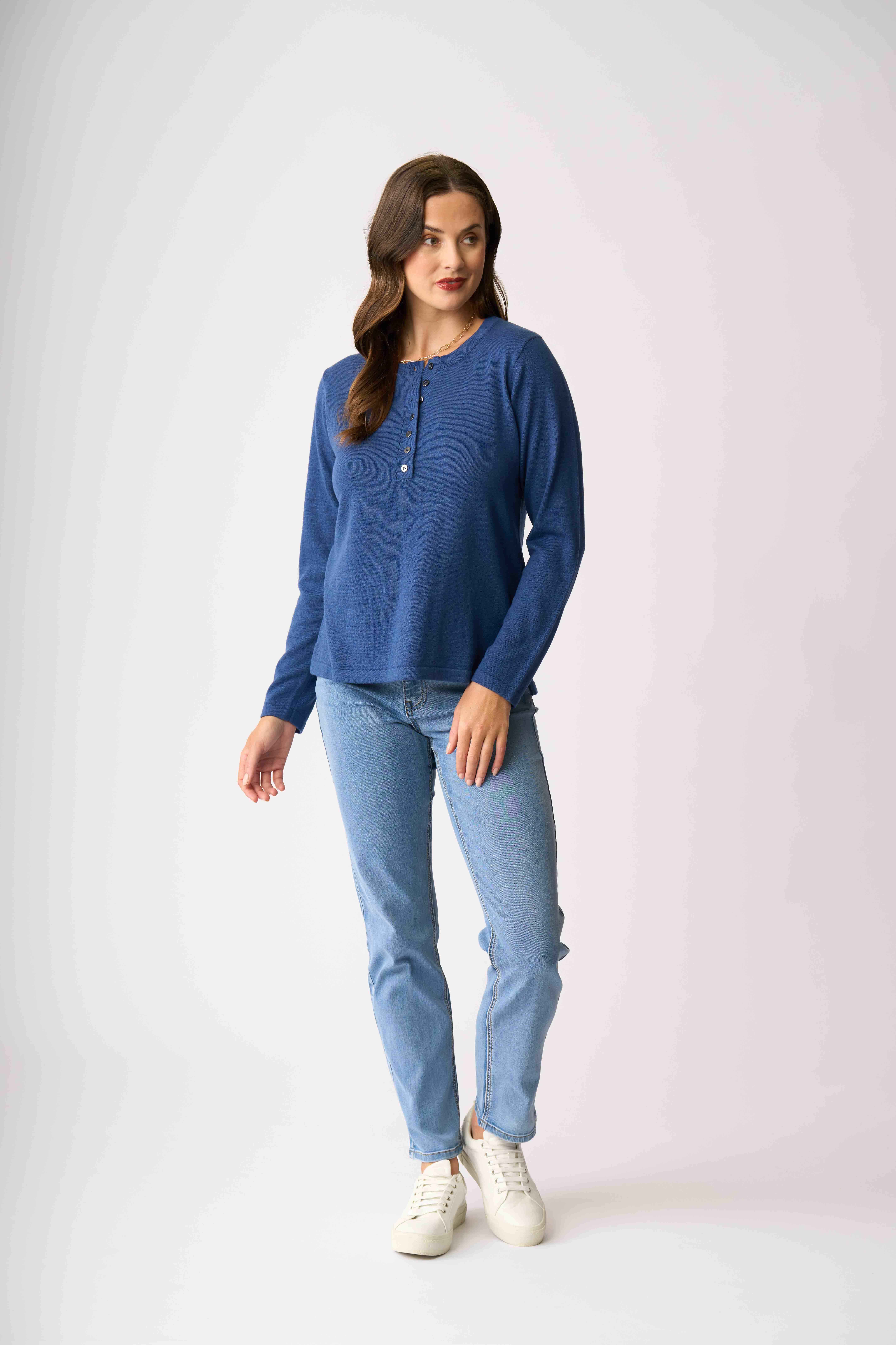 Contrasting shoulder panels and front placket with 7 functional buttons