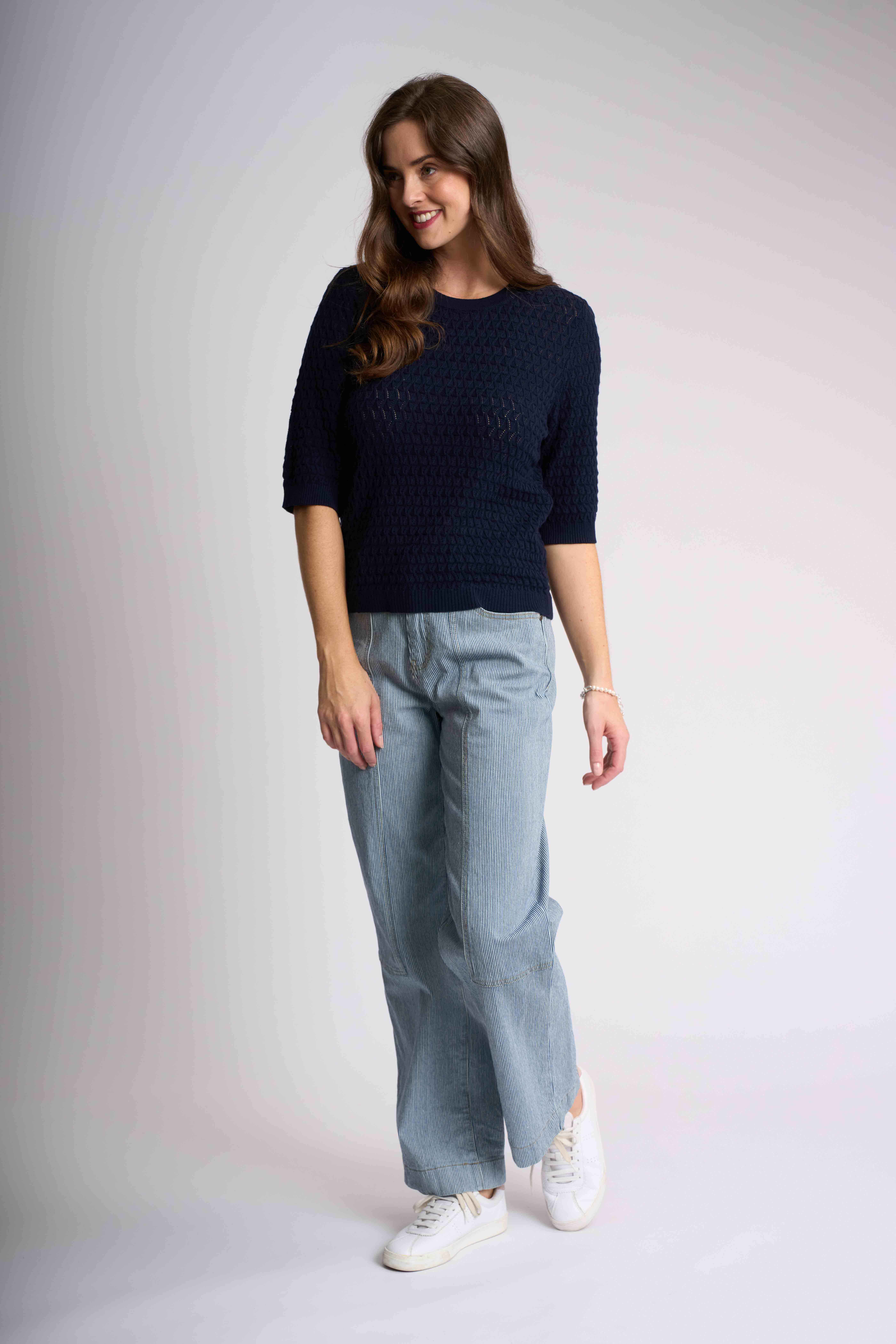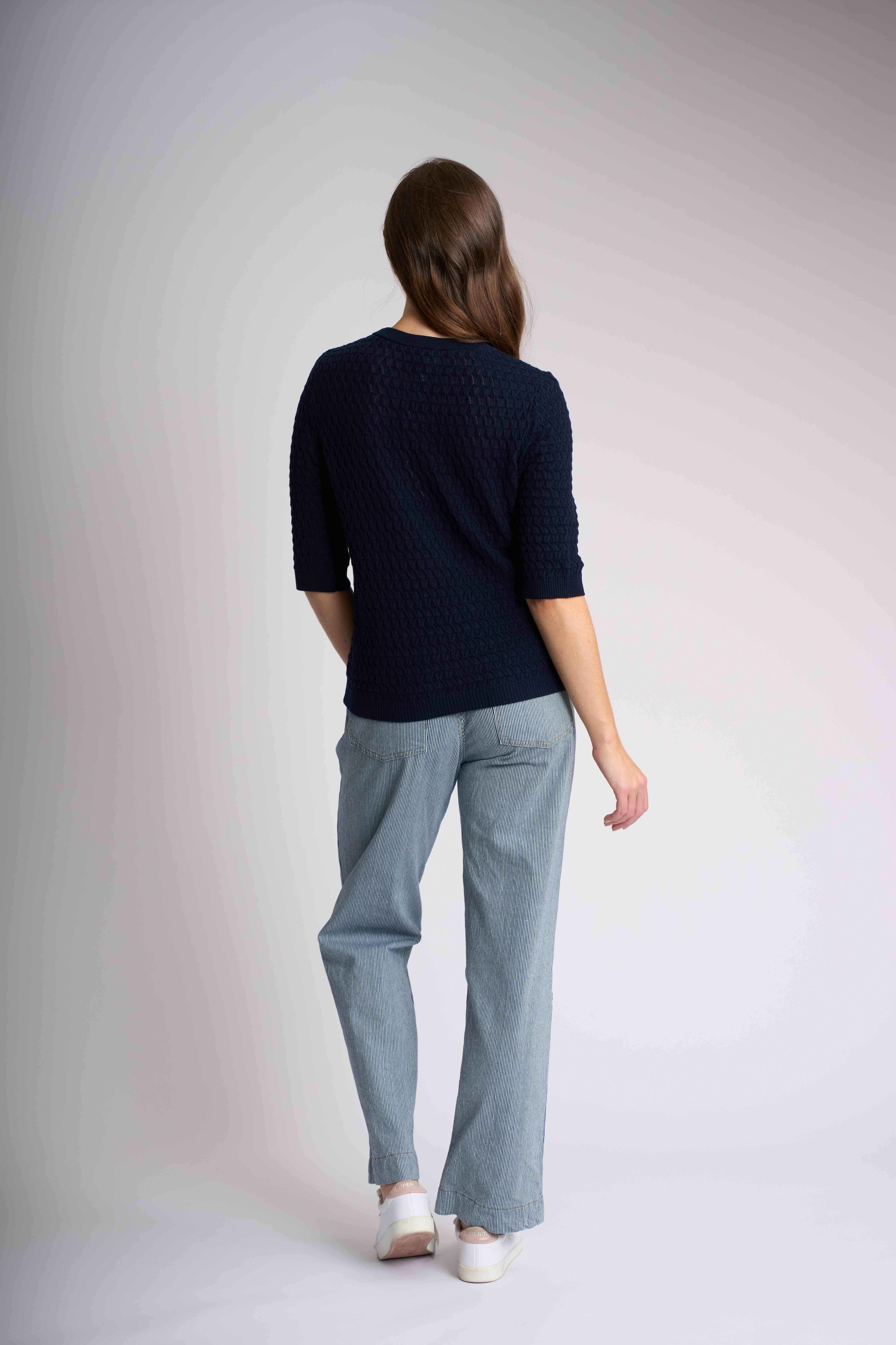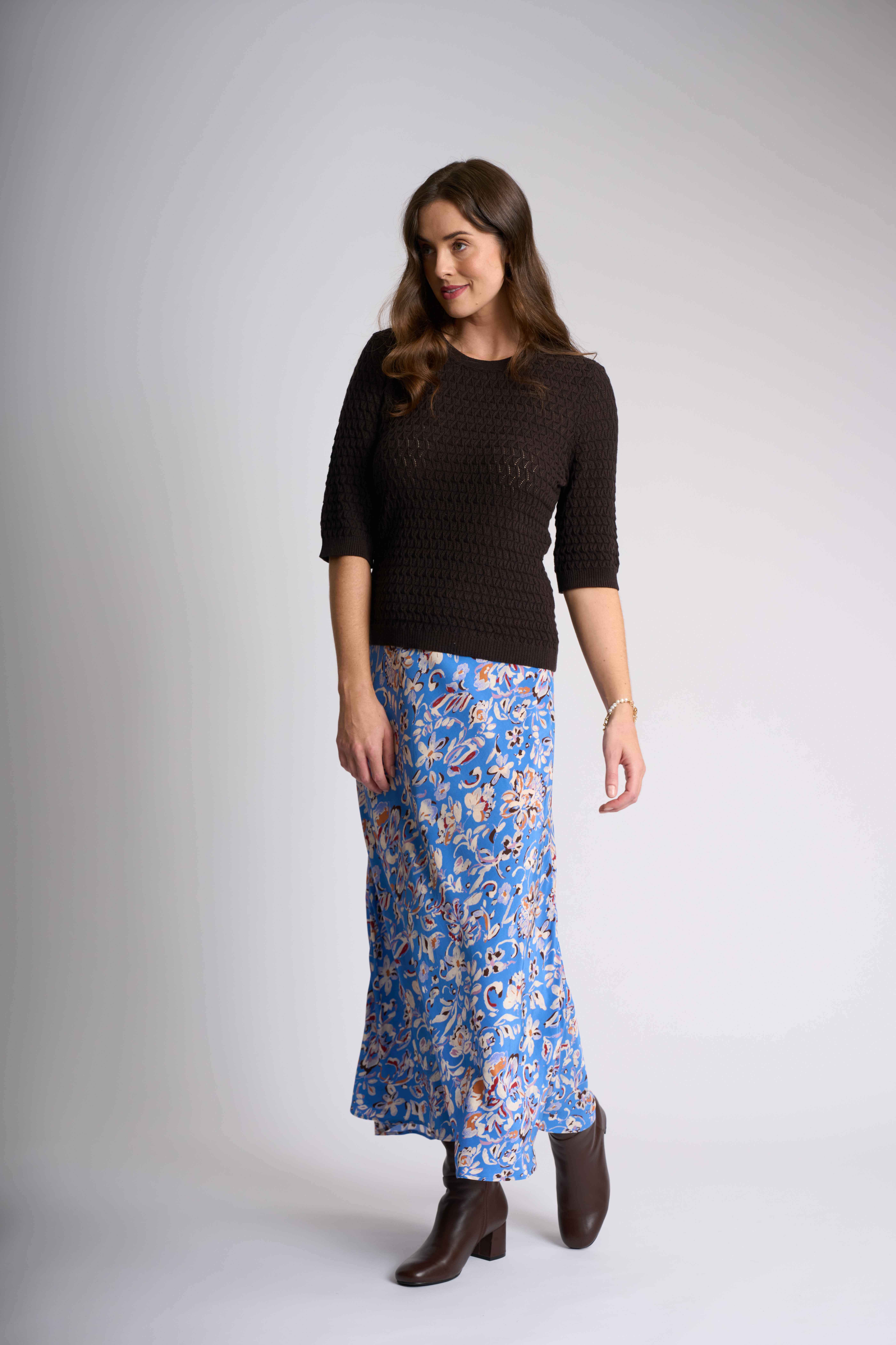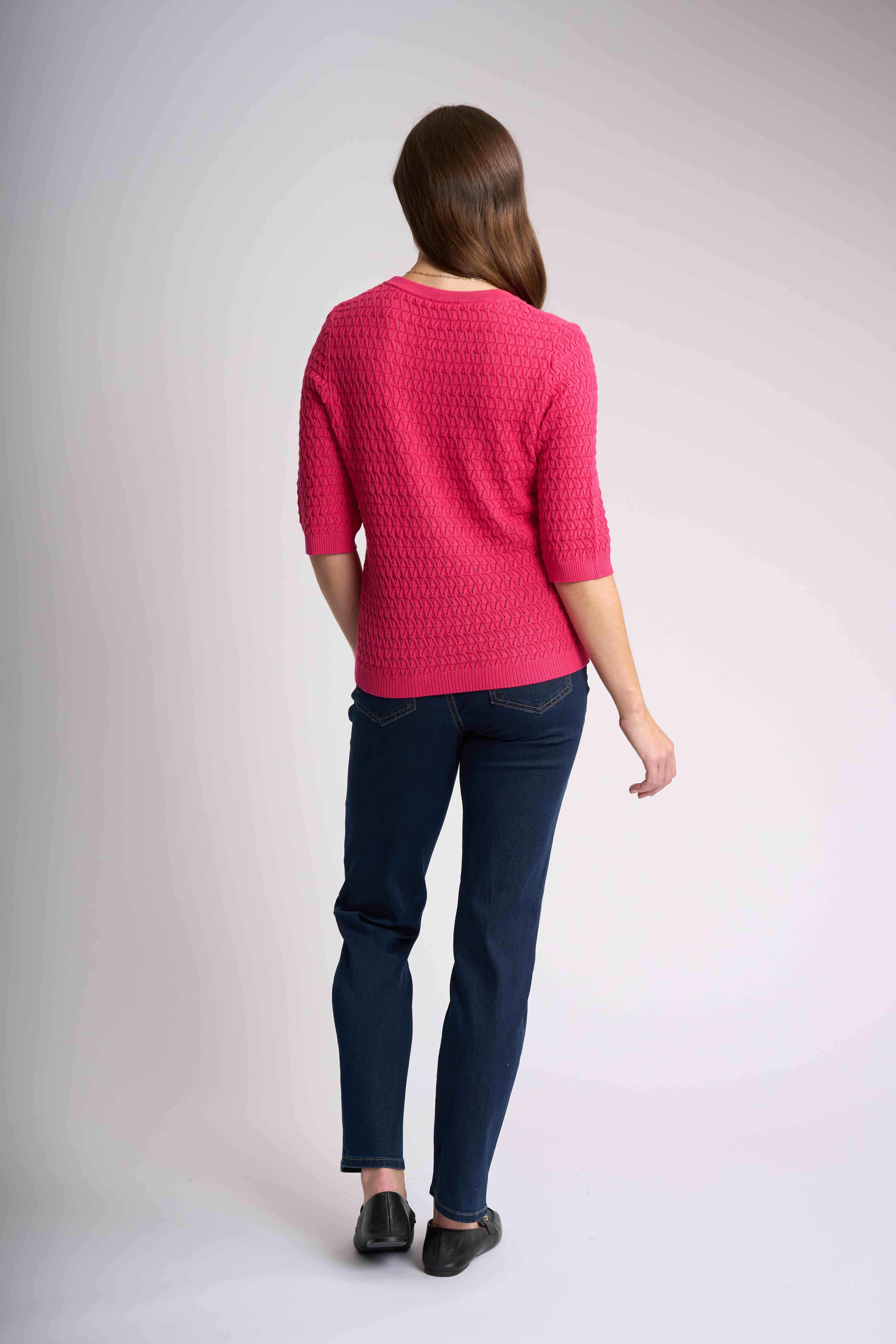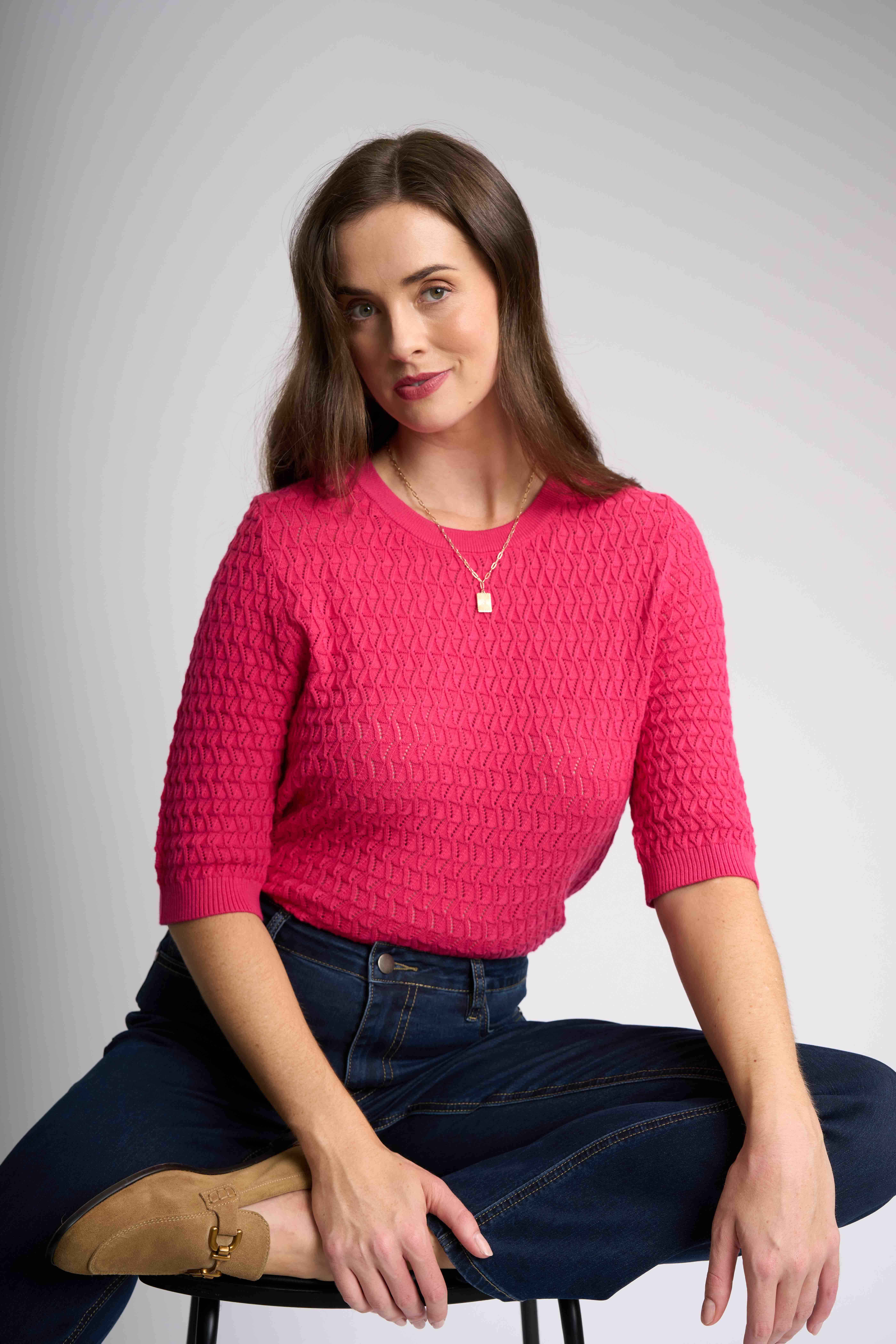Decorative pattern knit top featuring elegant elbow-length sleeves and a flattering slim fit, this top is perfect for any occasion. Body length of approximately 55cm from shoulder to hem (size small), it offers a chic silhouette that pairs beautifully with your favourite jeans or skirts.