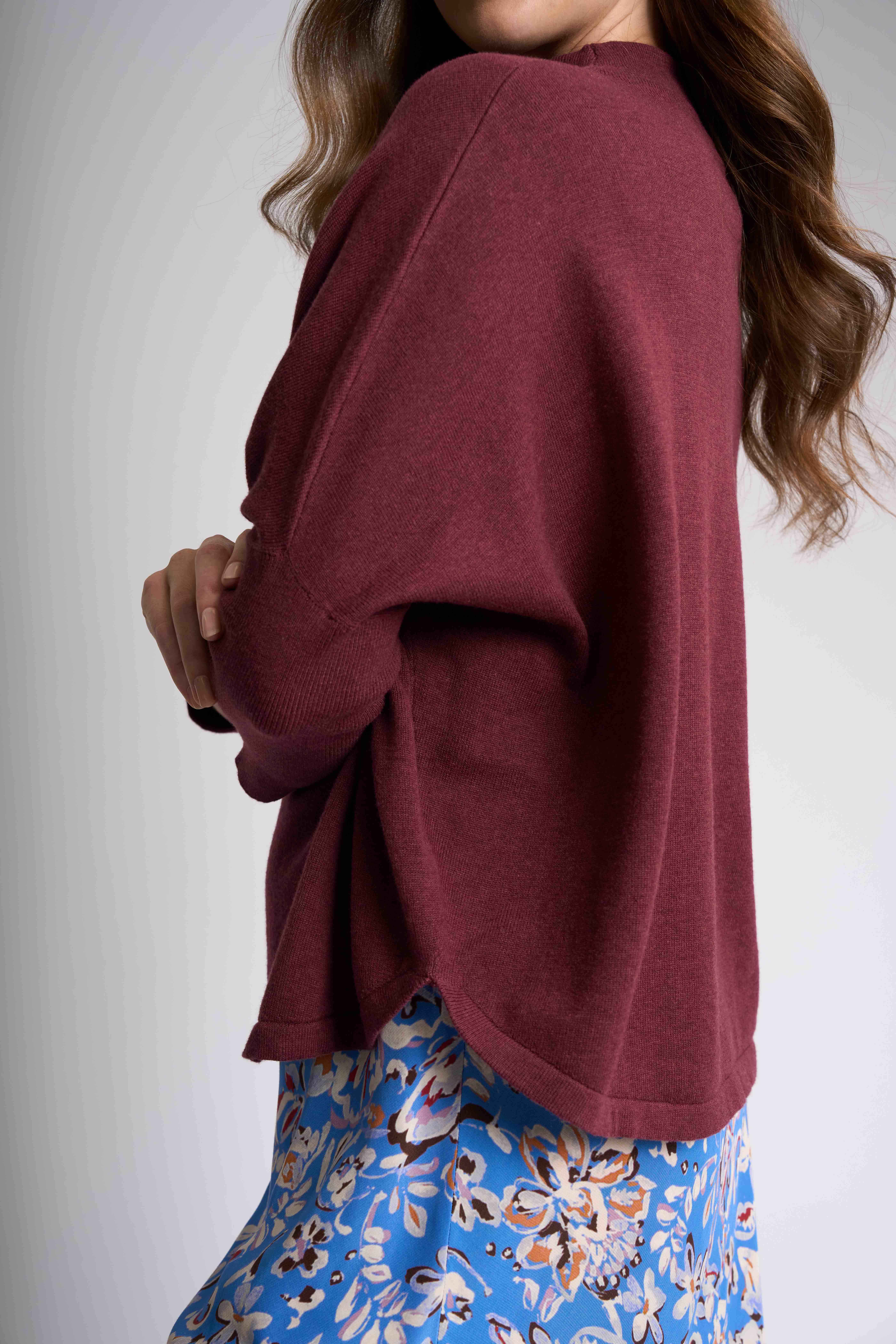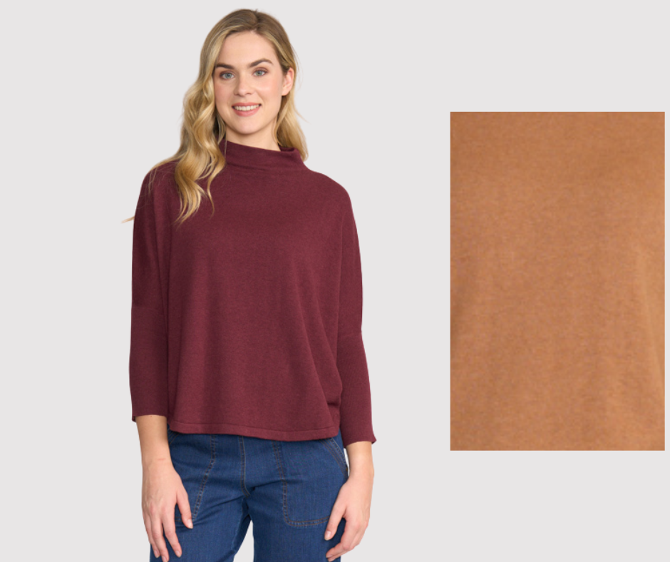 Elevate your casual wardrobe with our 3/4 sleeve relaxed fit jumper, perfect for those laid-back days. Featuring a high neck and a curved hem with side slits, this piece combines comfort and flair effortlessly. The body length of approximately 61cm (size small) ensures a flattering fit.