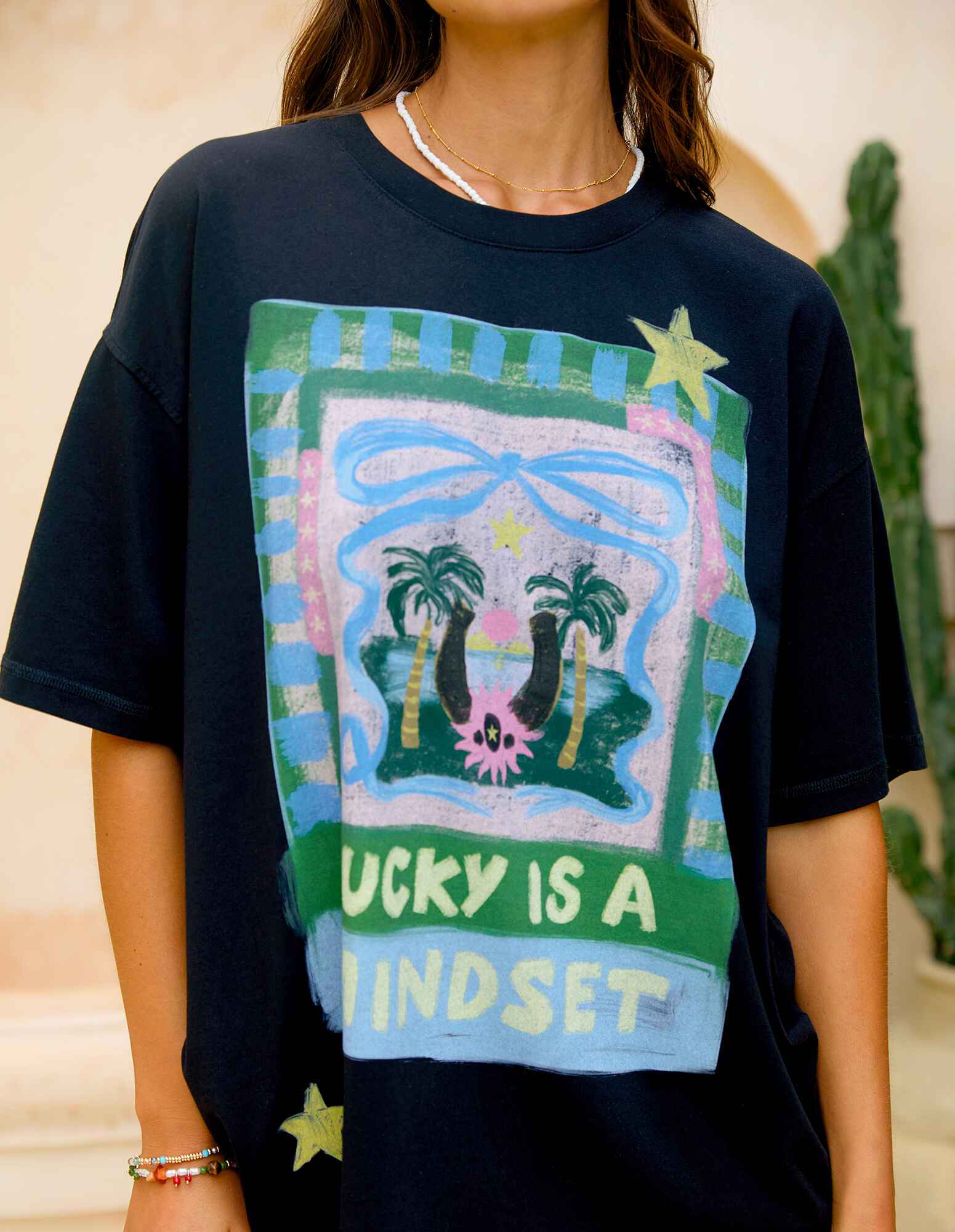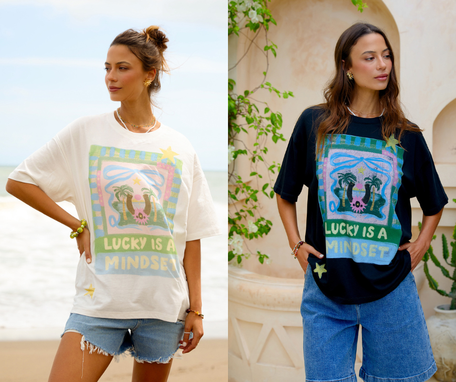 Lucky looks good on you. The Lucky Stars Tee brings that sun kissed, carefree energy with soft cotton, faded pastel vibes and hand painted artwork made for dreamers. It’s got that worn in feel, like it’s already lived a few beach days and late nights. A reminder that good energy is a choice and luck really is a mindset.