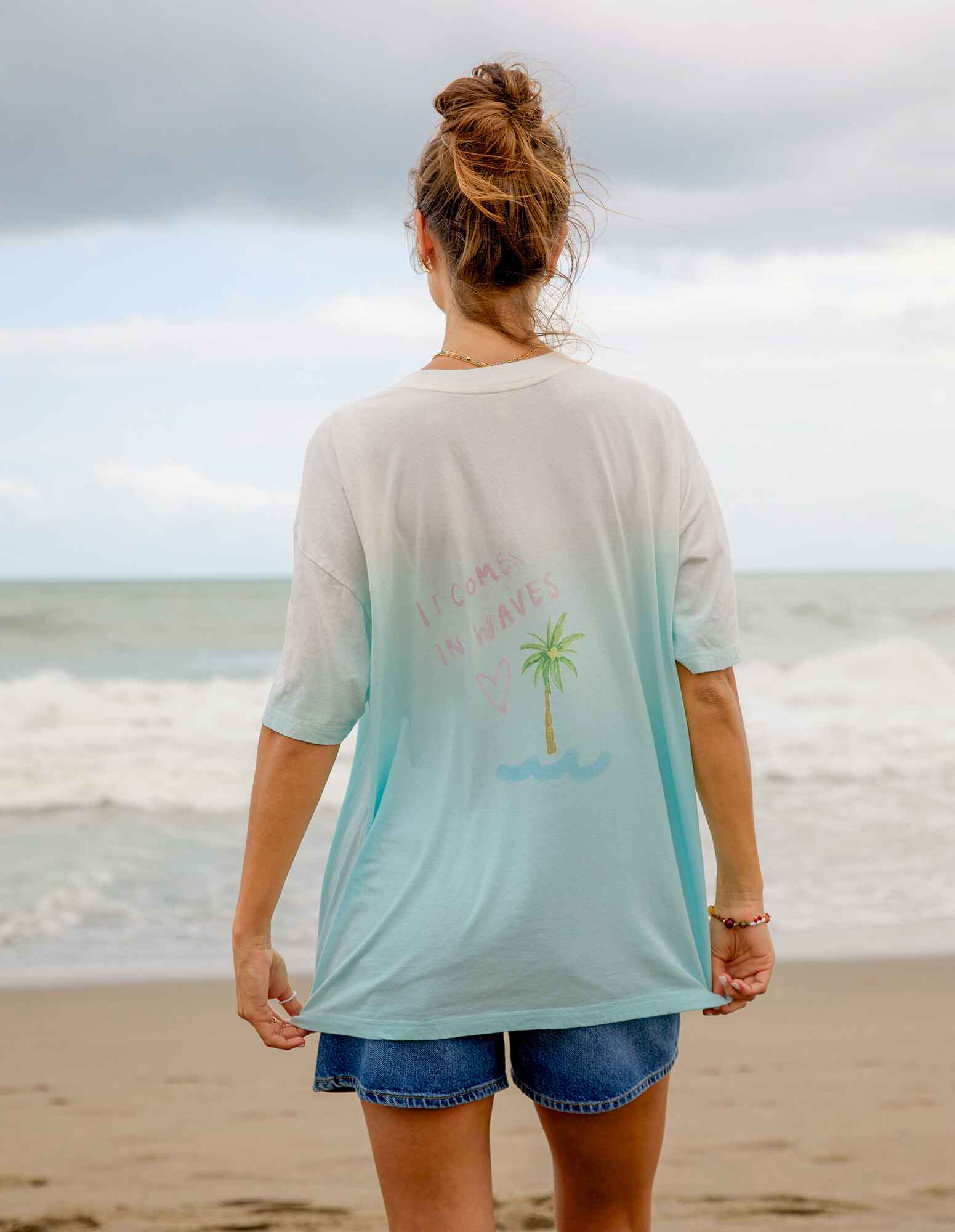 Catch the calm with the Timeless Tides Tee. Washed in dreamy ocean tones and finished with hand drawn artwork, this tee feels like a deep breath by the sea. With its oversized fit and soft cotton feel, it’s made for slow mornings, salty hair and chasing sunsets. It comes in waves, and we’re here for every one of them.
