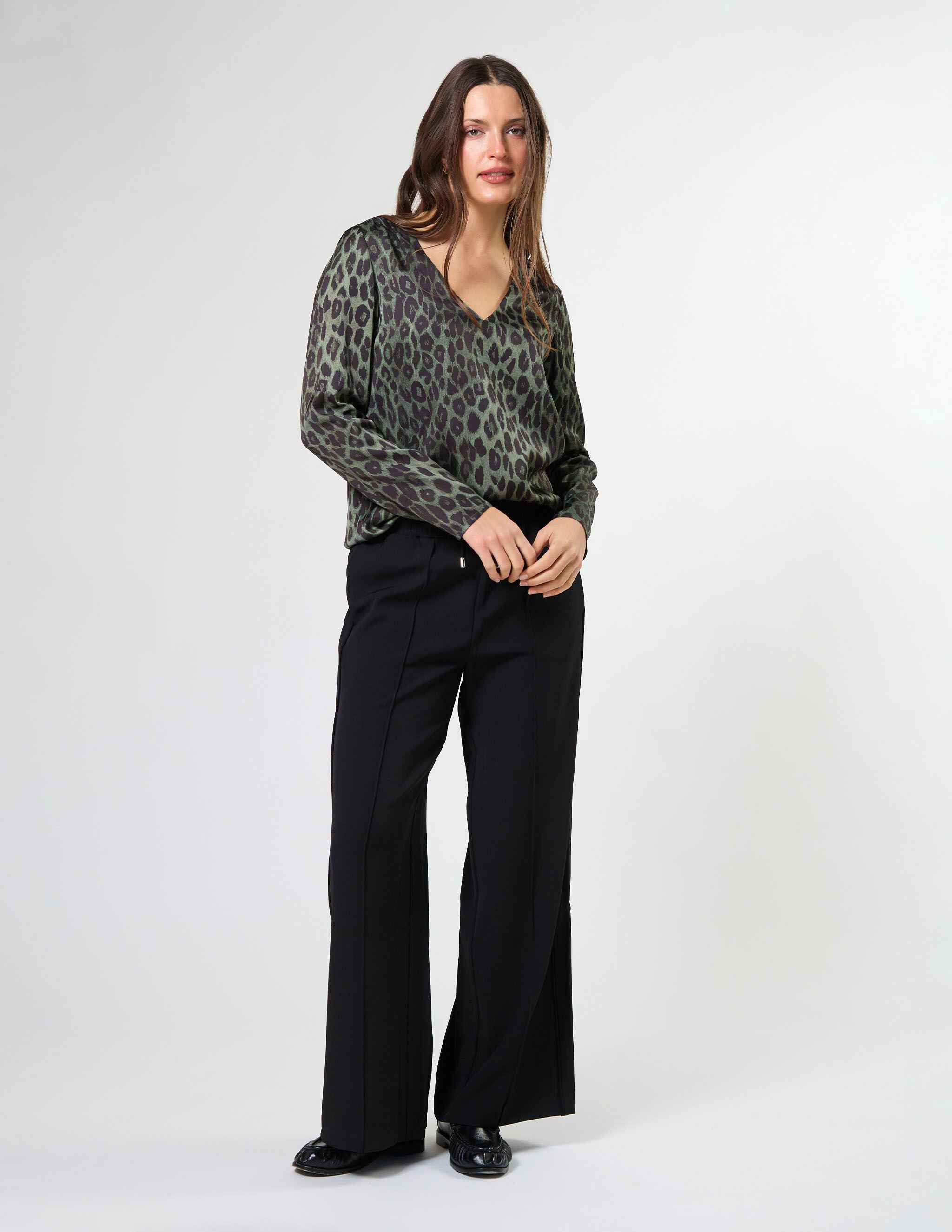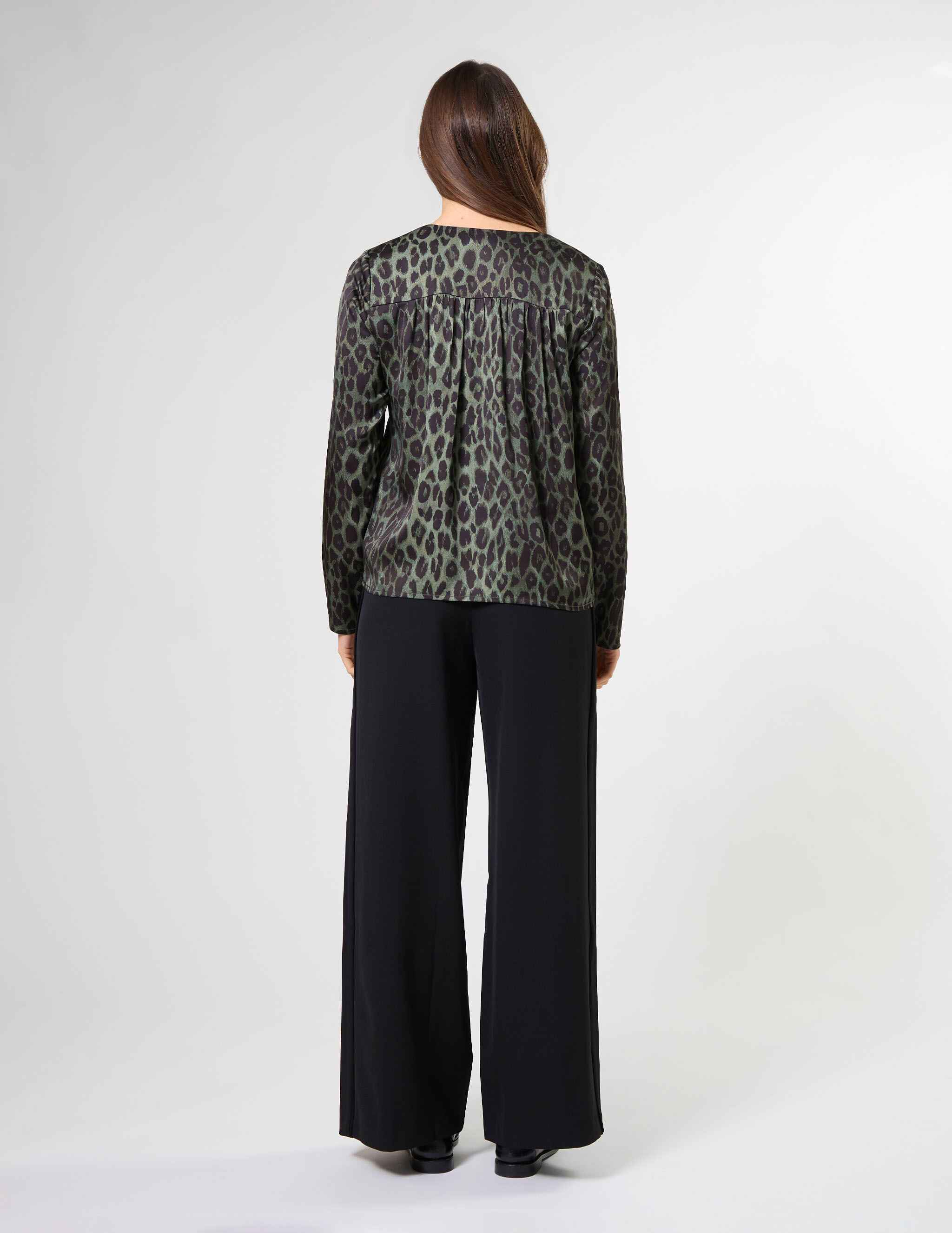 A beautifully cut V-neck blouse featuring delicate gathered yoke seam detailing for added texture and subtle volume. Designed to drape effortlessly, it offers a flattering silhouette that transitions seamlessly from work to weekend.