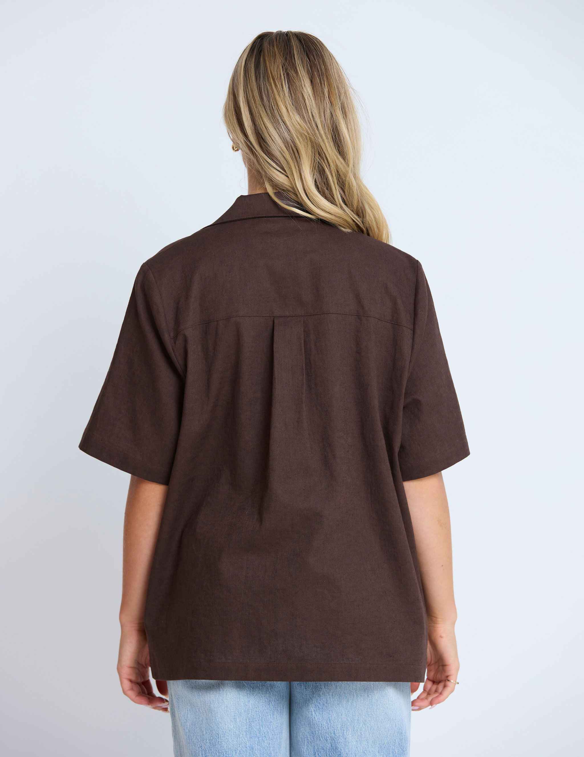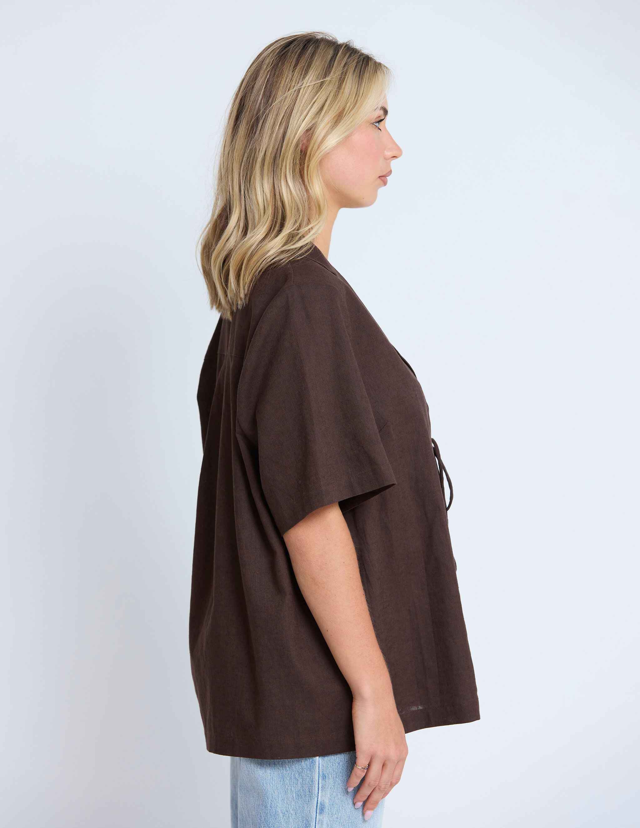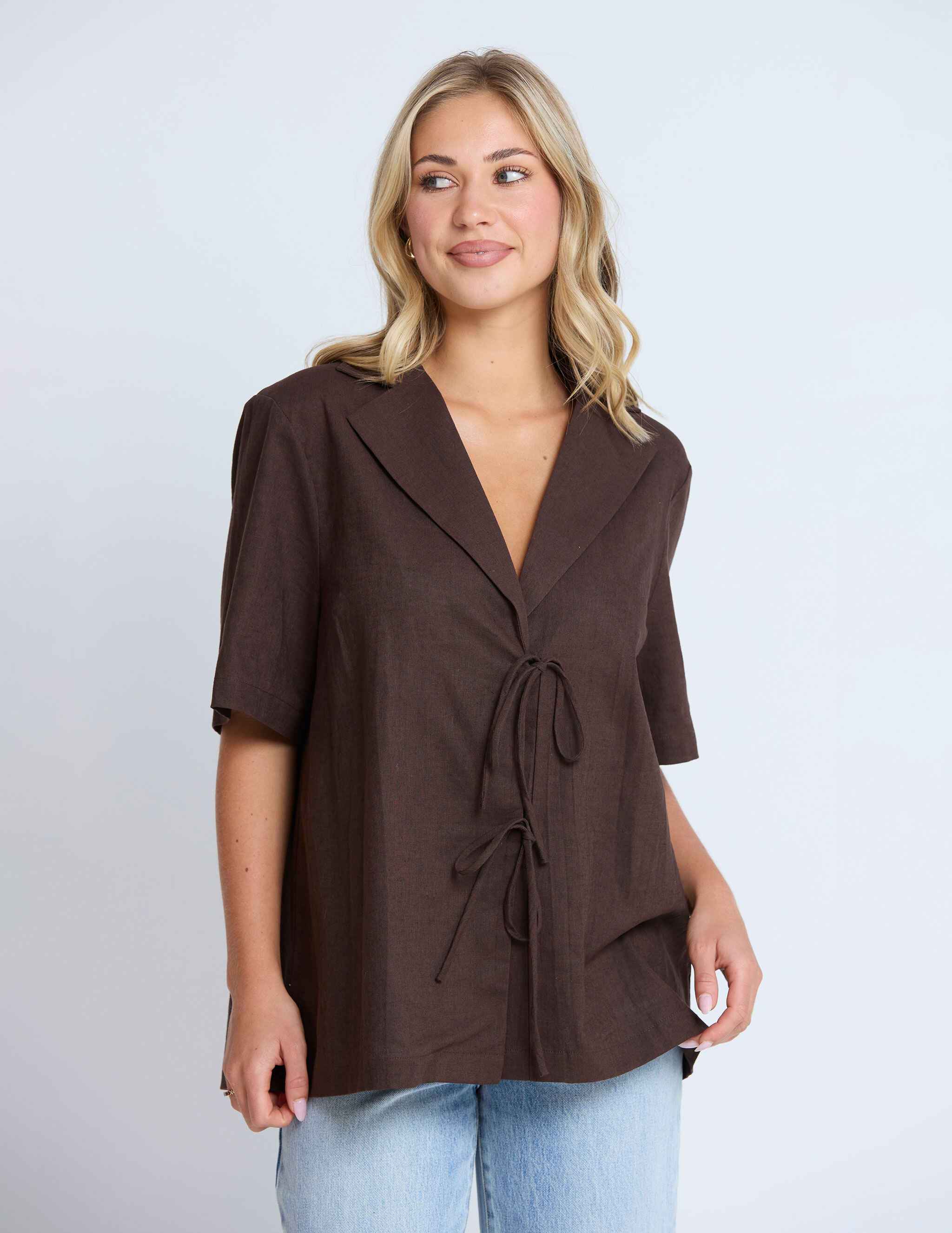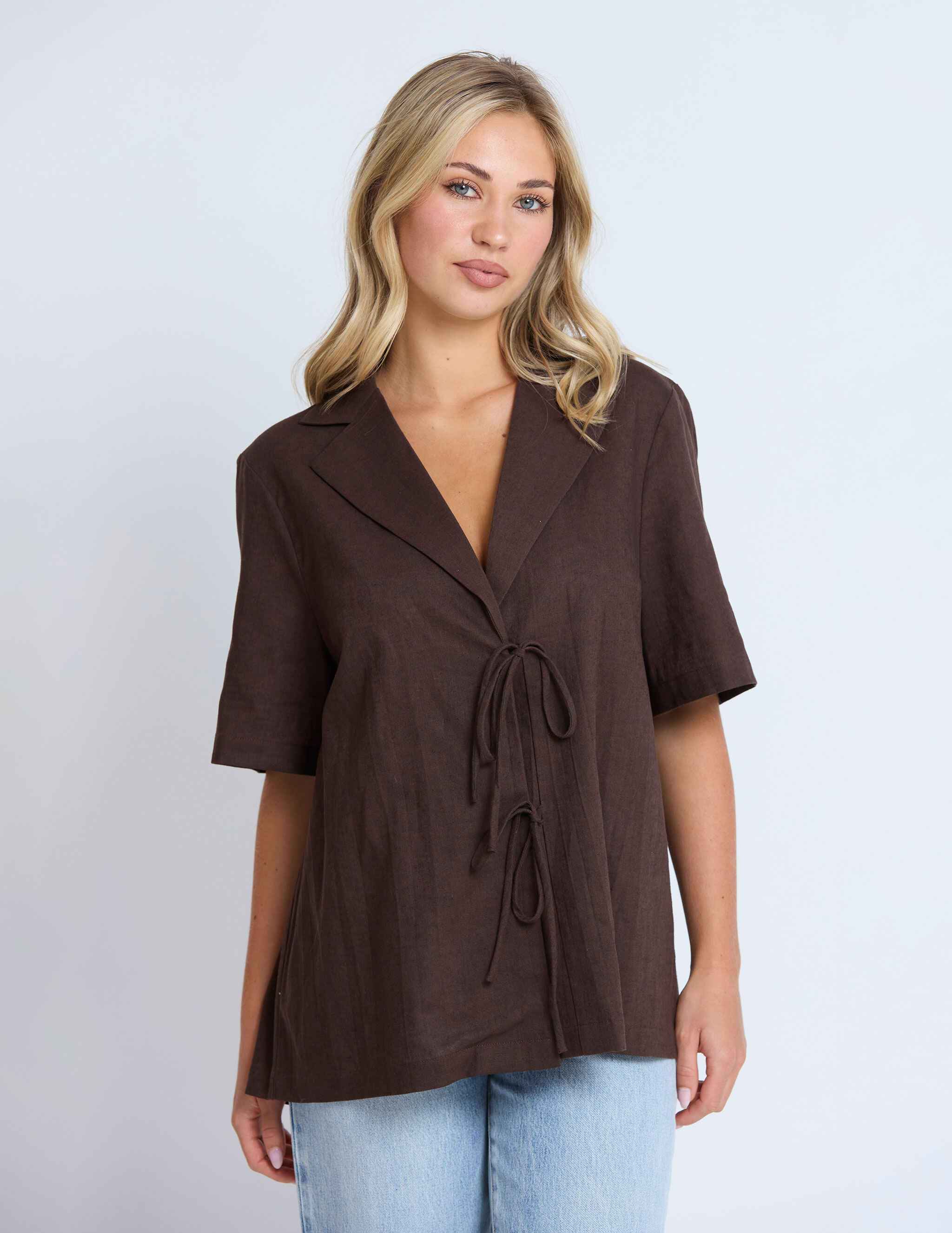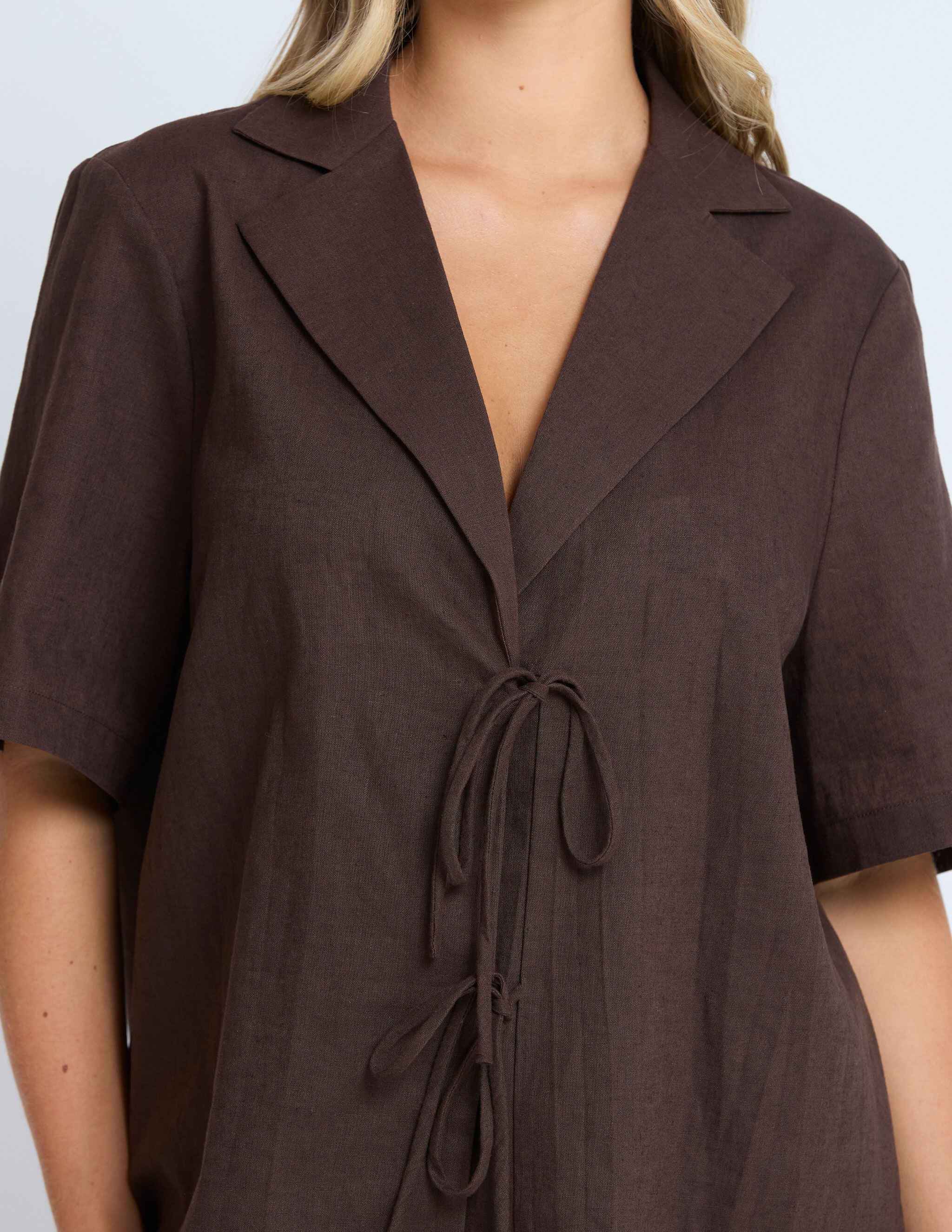 Relaxed Fit Collared Shirt With Double Self Fabric Tie Detail Fastening At Front Placket