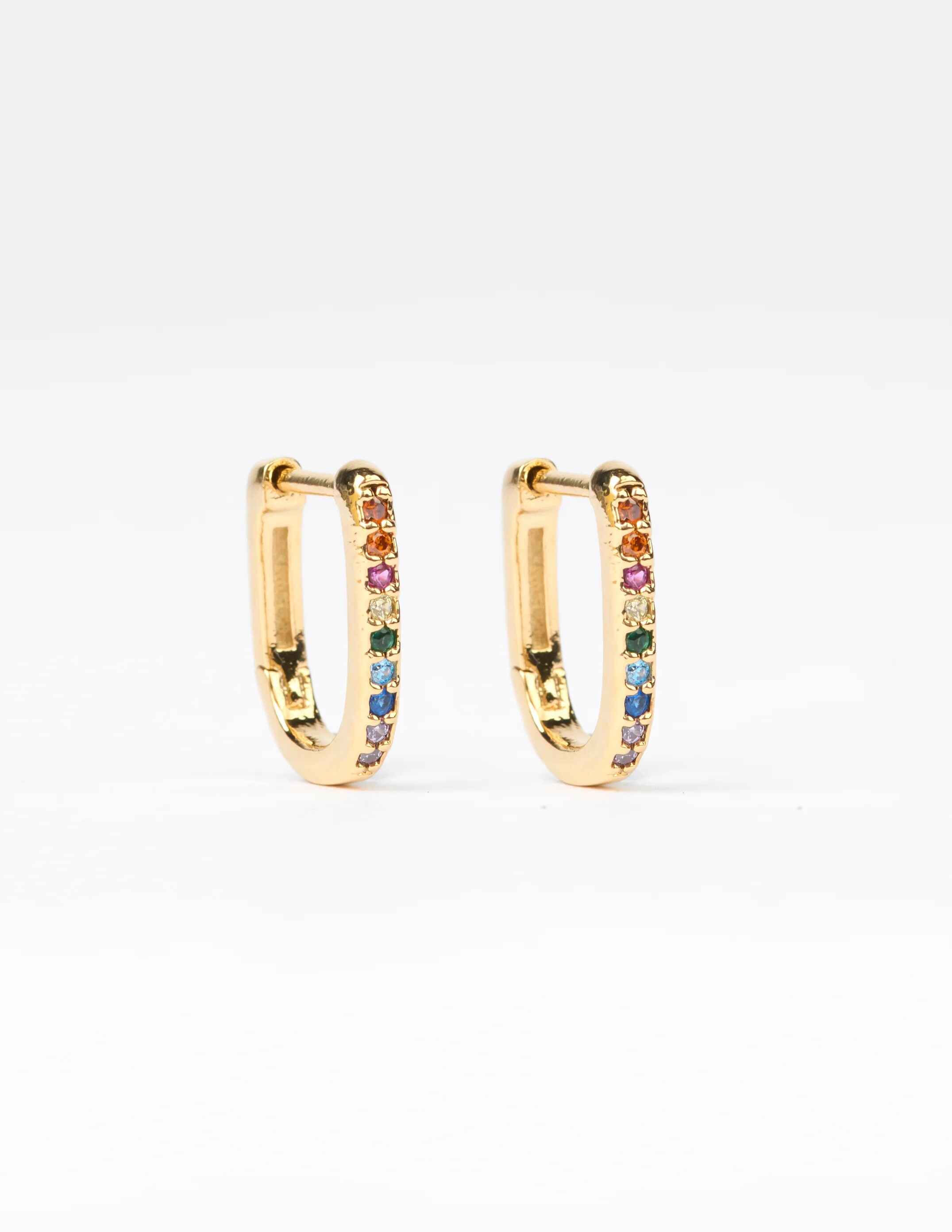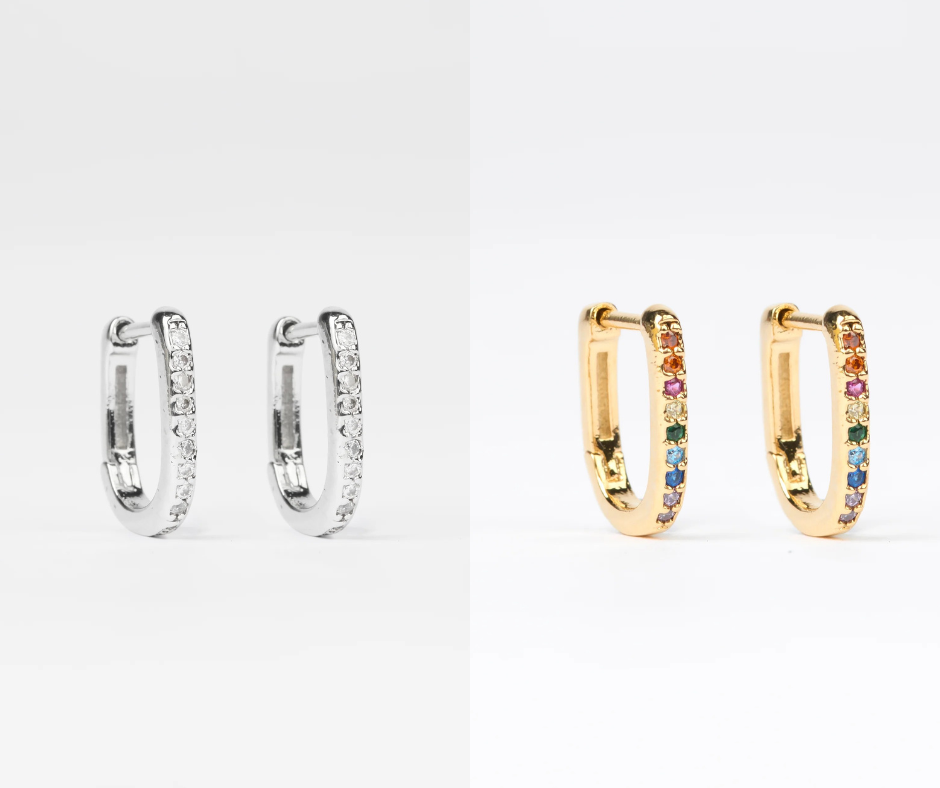 Square hoop earring Gold: Brass with gold coatingSilver: Brass with silver e-coatCare Instructions: Keep jewellery dry and avoid contact with water, perfumes, and chemicals. Store in a cool, dry place and clean gently with a soft cloth after use.