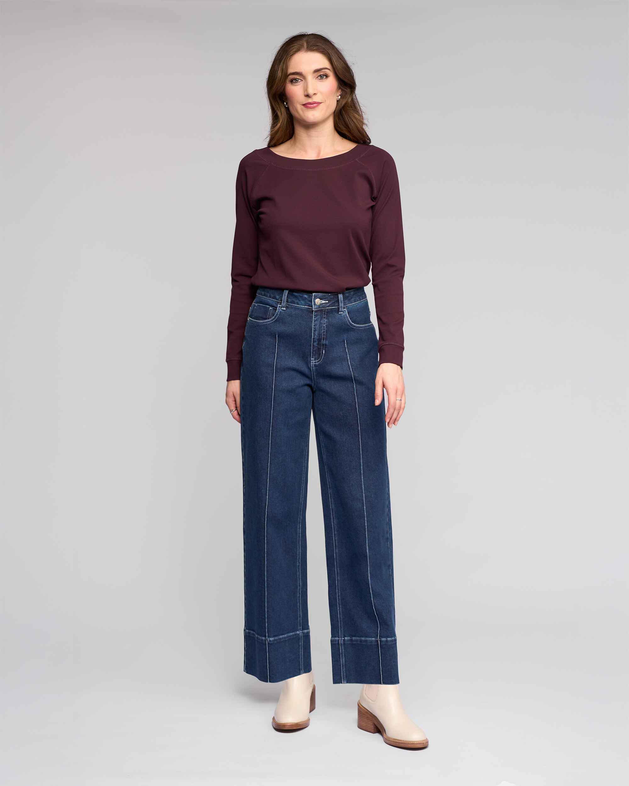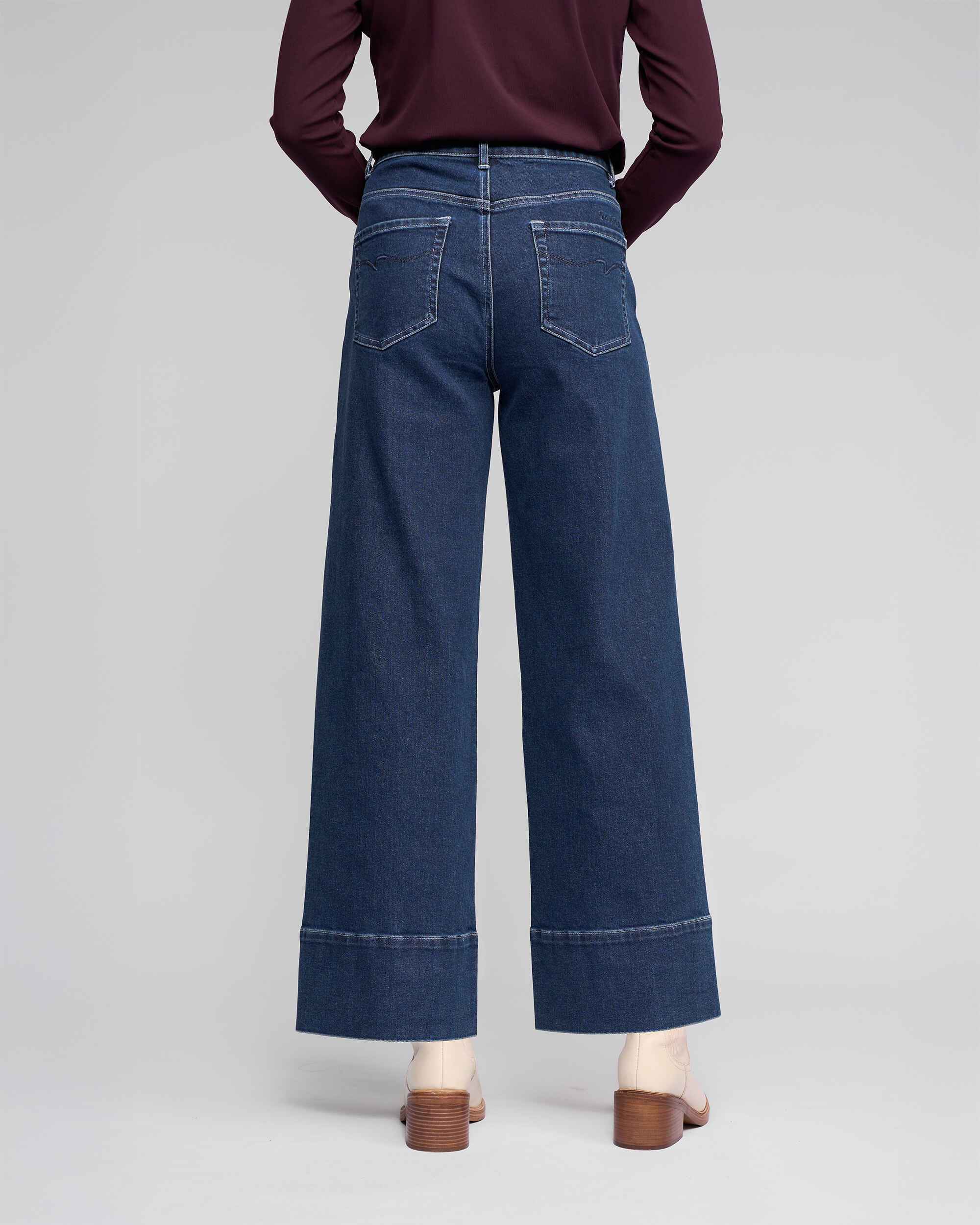 • Wide leg ankle grazer jean