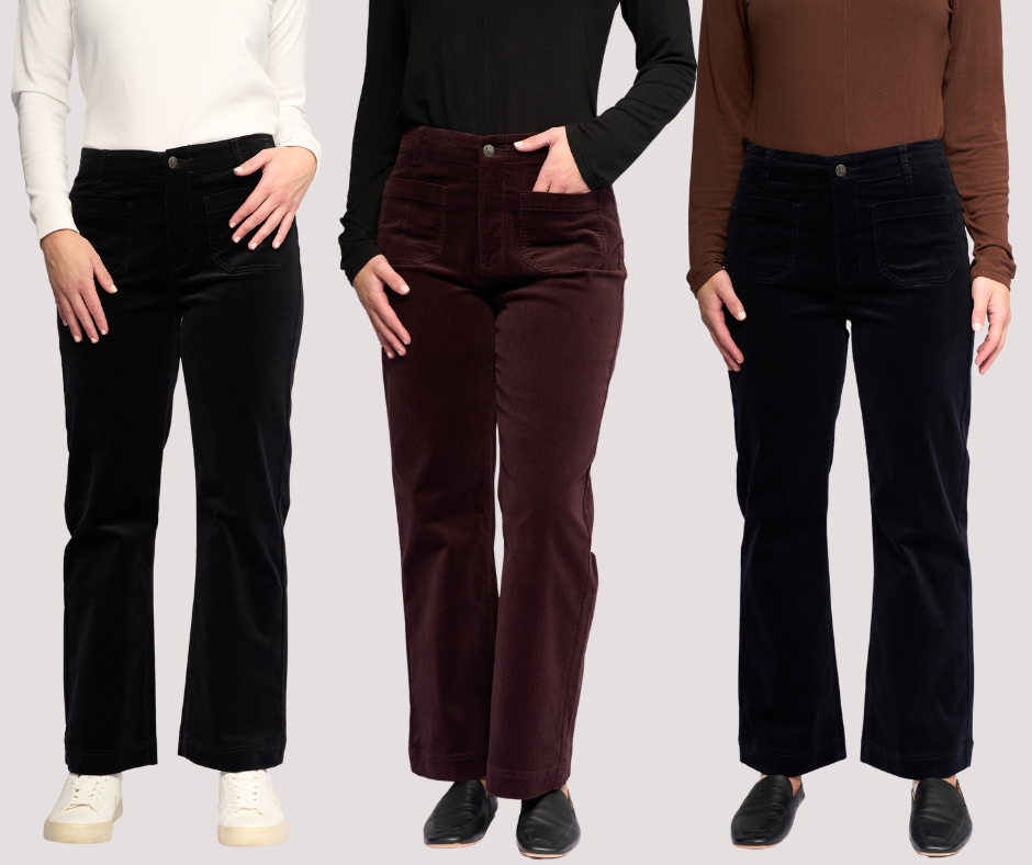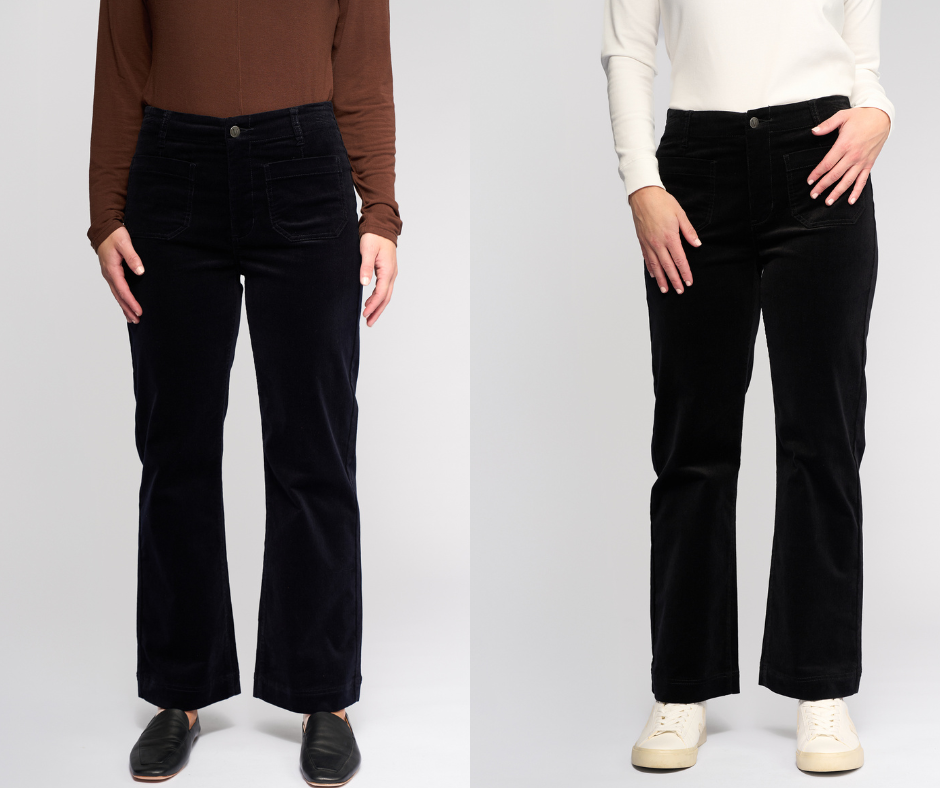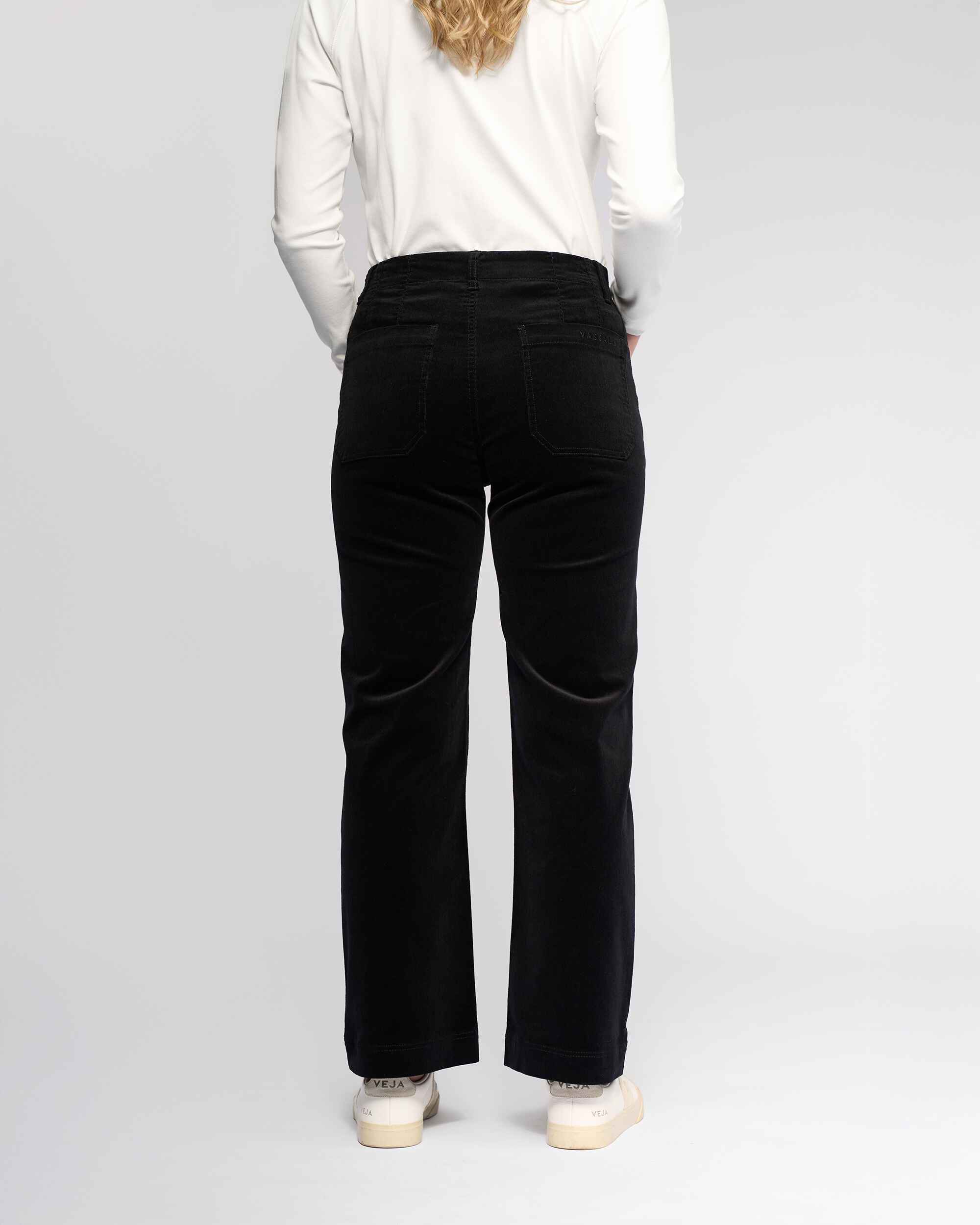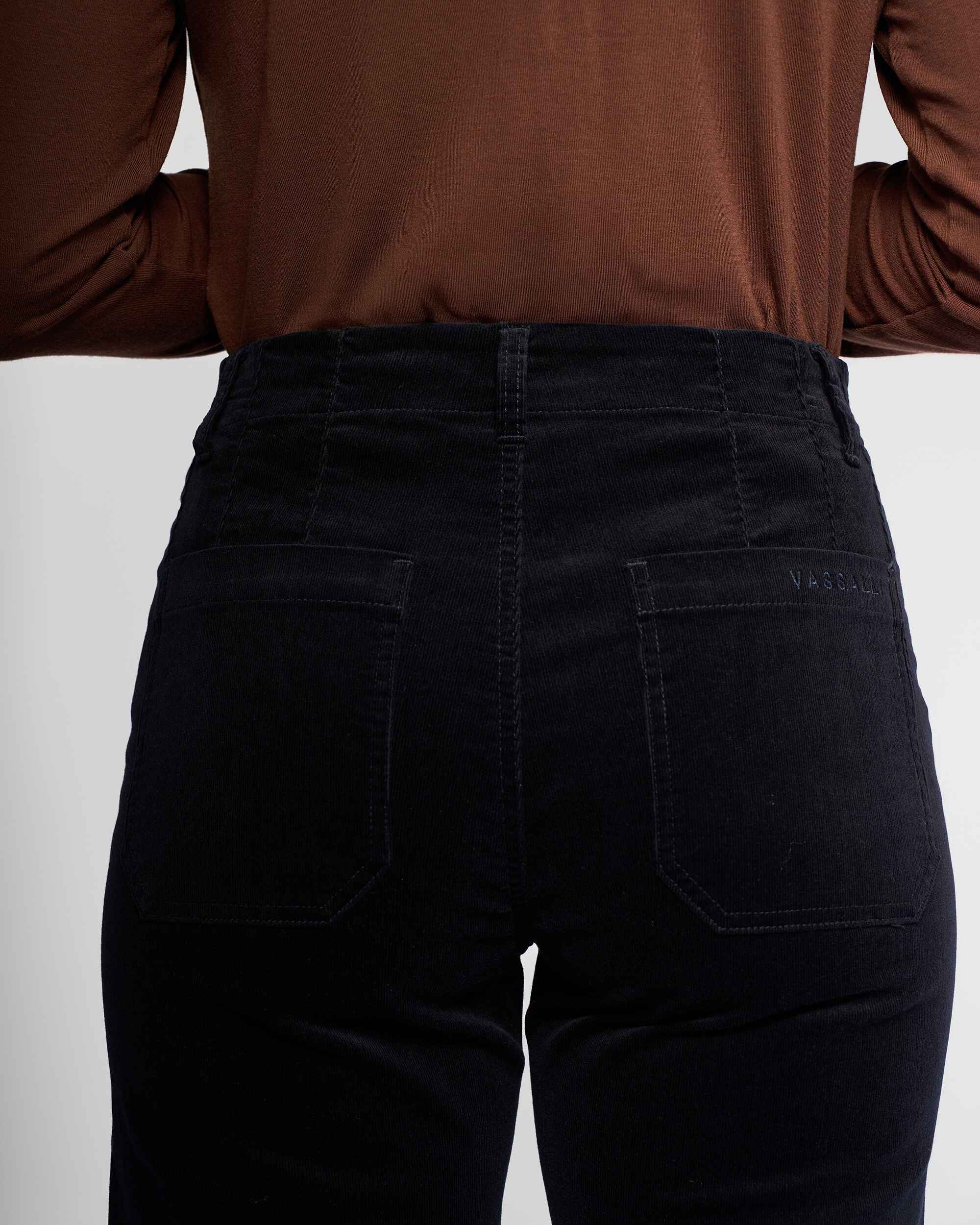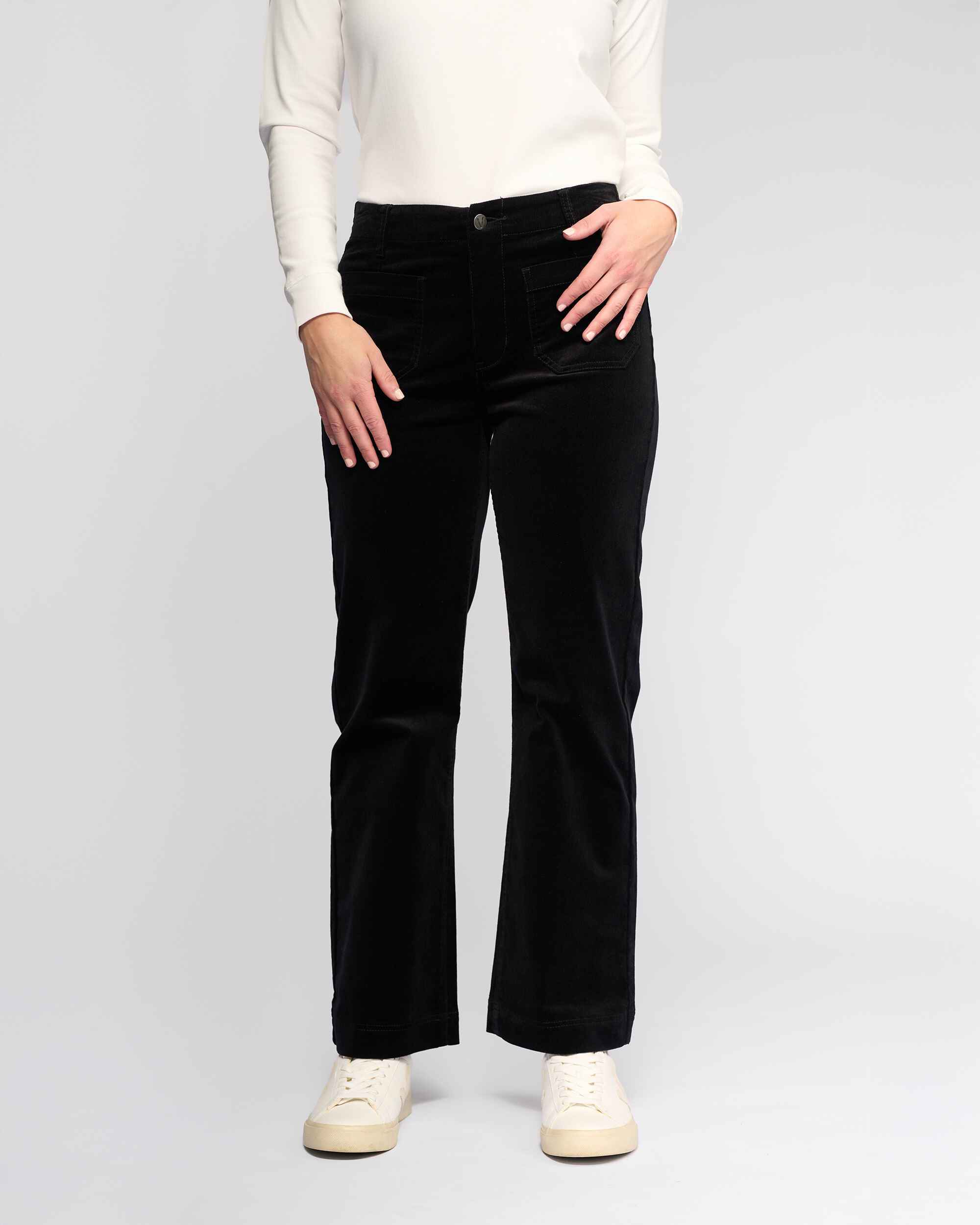 Wide-leg ankle-grazer pant in soft corduroy fabric. Featuring a zip fly and metal ‘V’ logo jean button, this style offers a comfortable, flattering fit with statement patch pocket detailing.