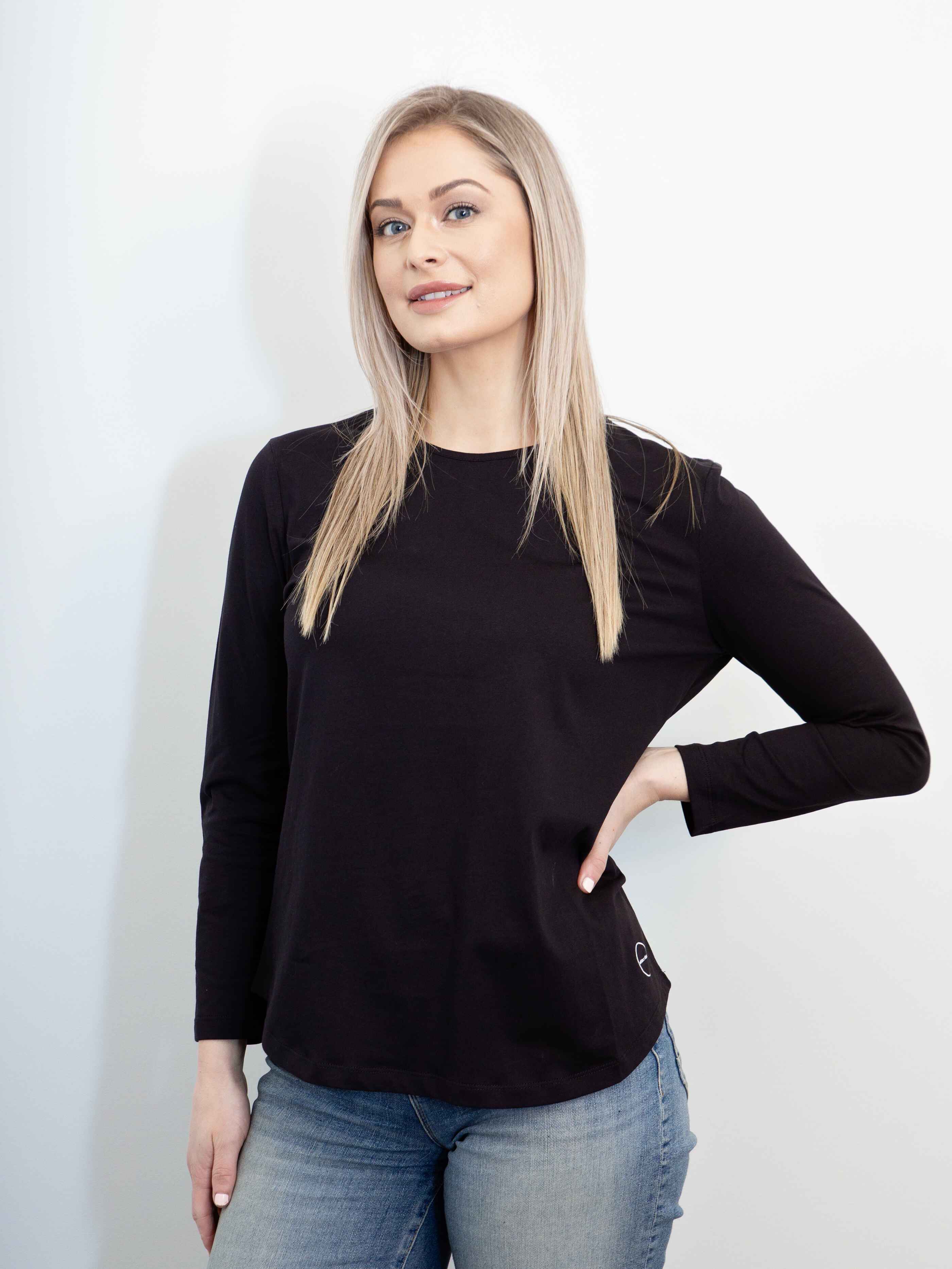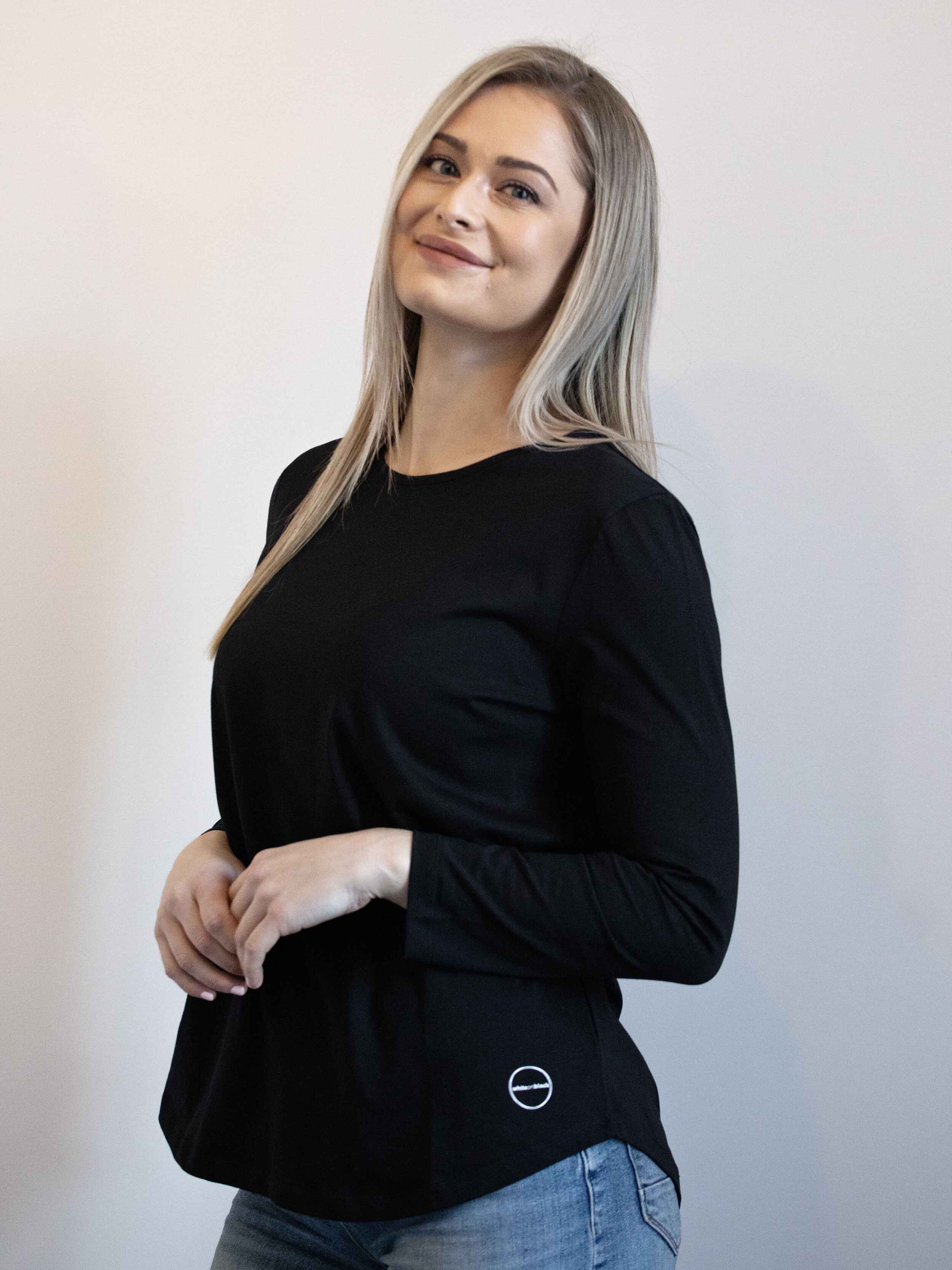 A classic long sleeve tee crafted from soft, breathable fabric for all-day comfort. Designed with a relaxed fit, crew neckline, and curved hem, it’s a versatile essential available in white and black—perfect for layering or wearing on its own.