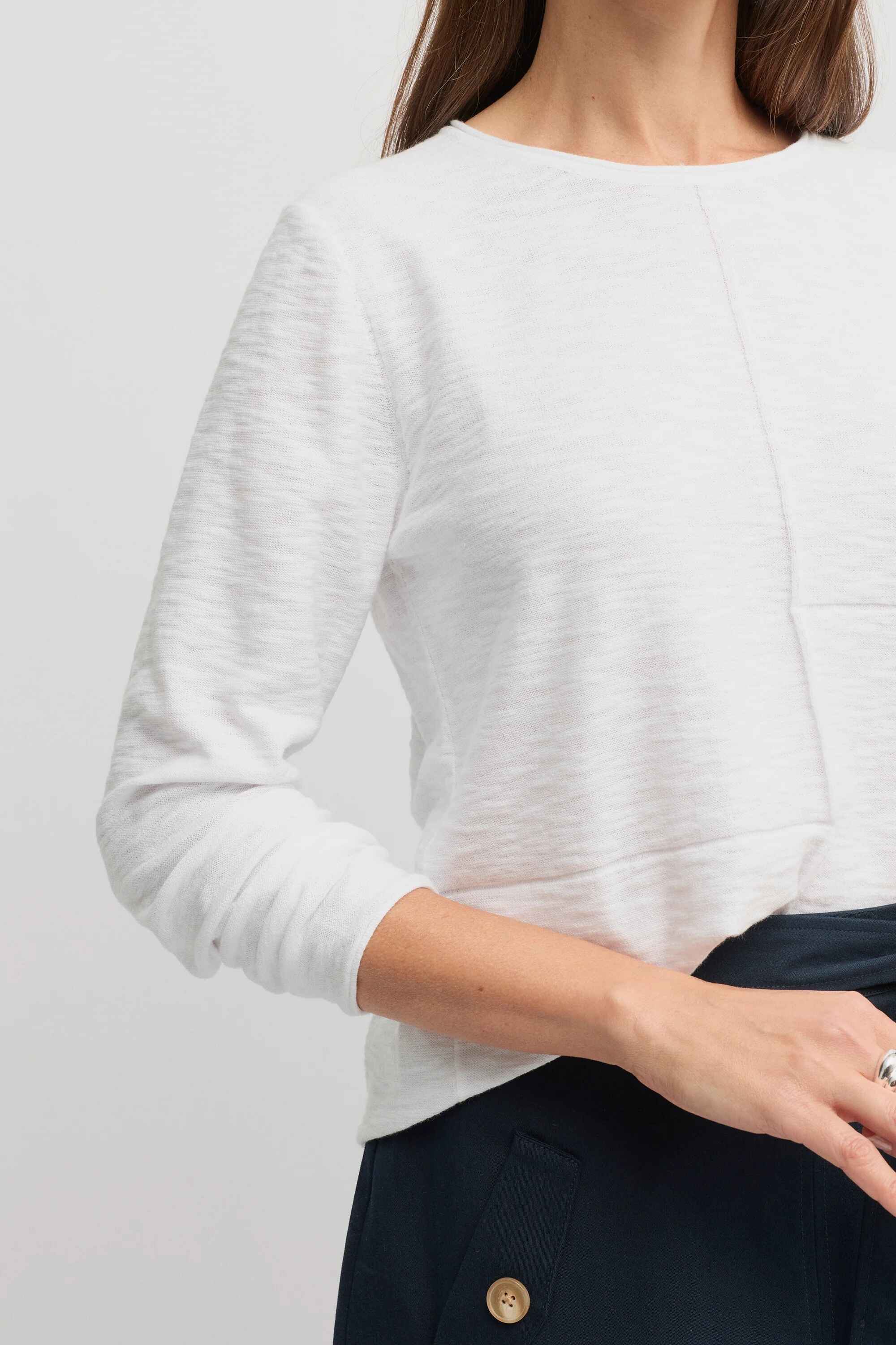 Crafted from premium 100% cotton, the Ensemble Knit reimagines a classic long sleeve jumper with knitted splice detailing. Style it effortlessly with a statement belt, or layer under a winter jacket for even more warmth. Your go-to piece for effortlessly transitioning from work to the weekend.