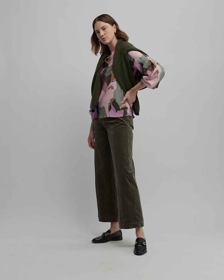 Hand or gentle machine wash separately in cool water. Do not bleach. Short spin. Do not tumble dry. Dry in shade. Cool iron. Dry cleanable (P).