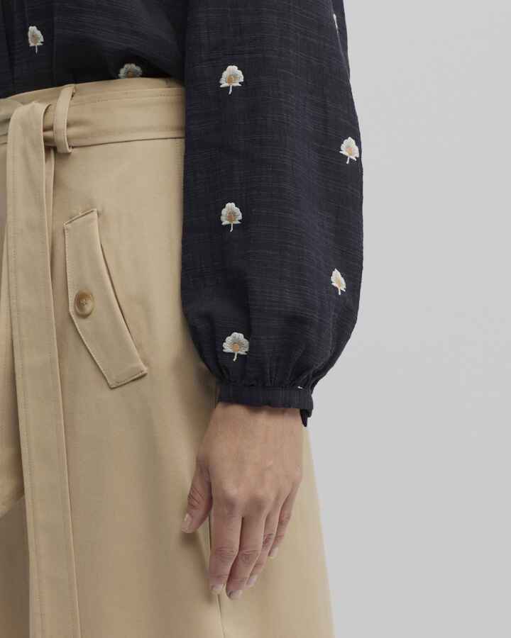 Cool hand or gentle machine wash with like colours. Do not bleach soak or rub. Do not tumble dry. Line dry in shade. Warm iron inside out. Do not dry clean (X).