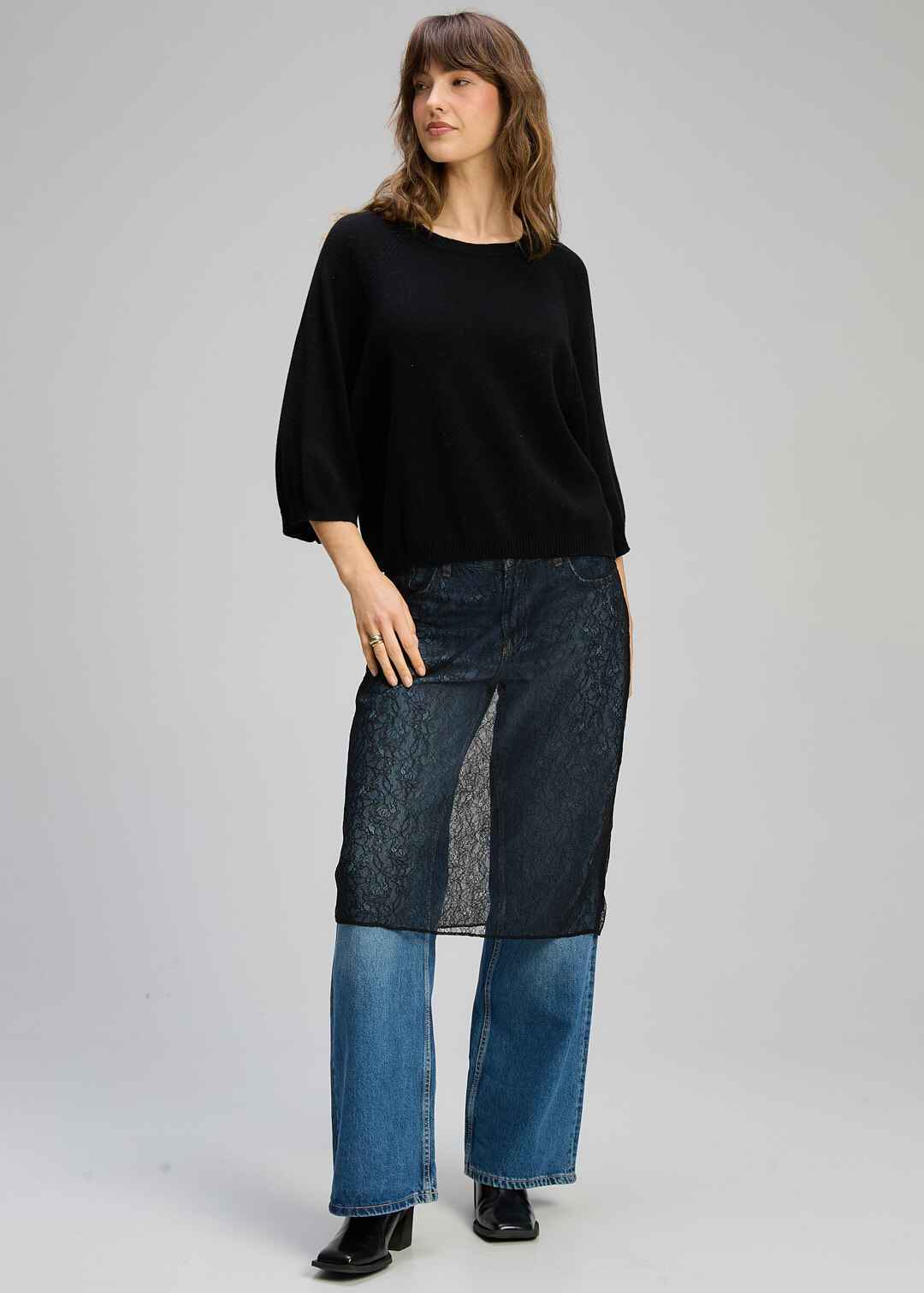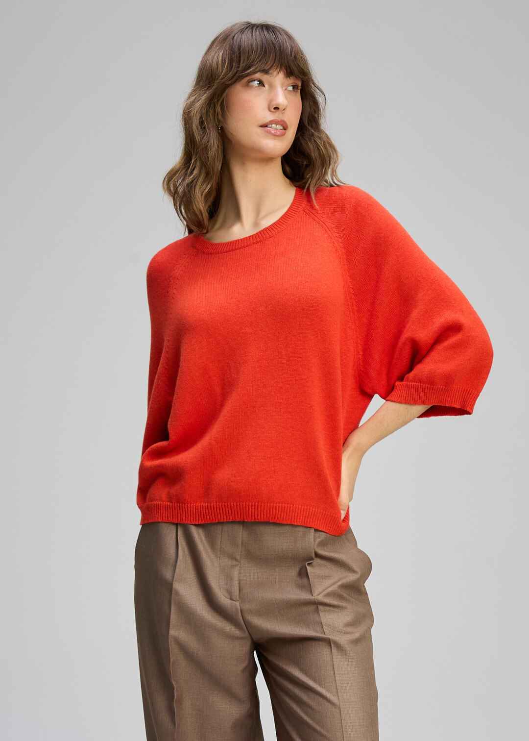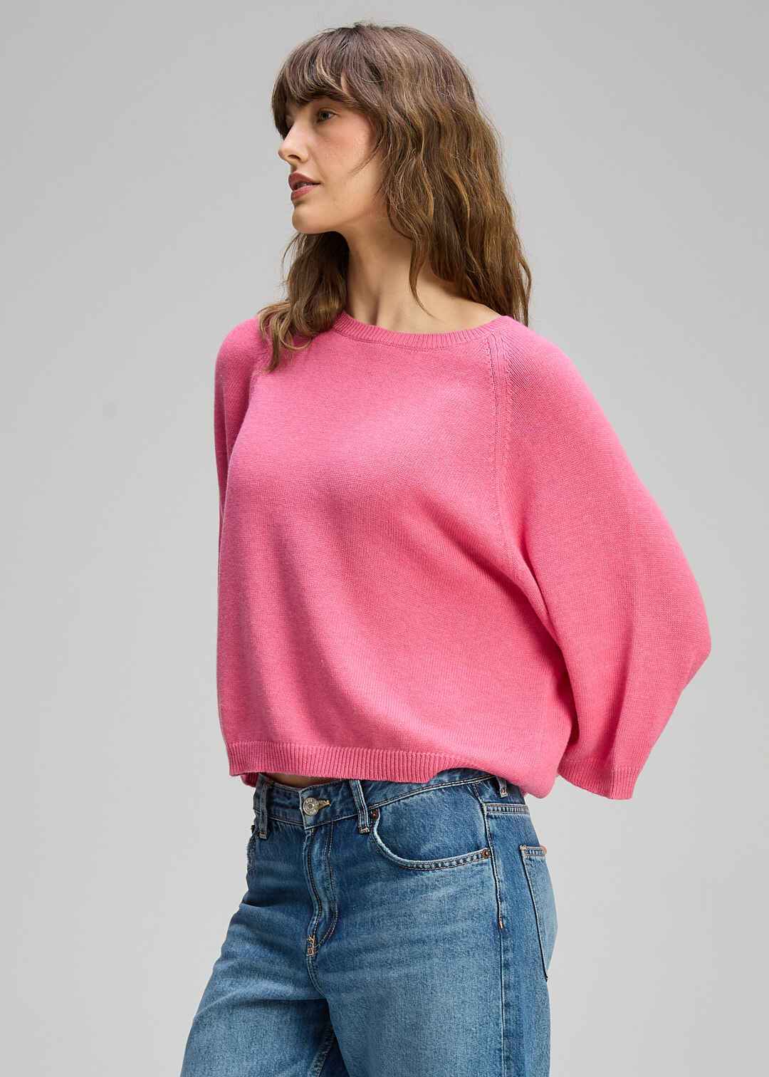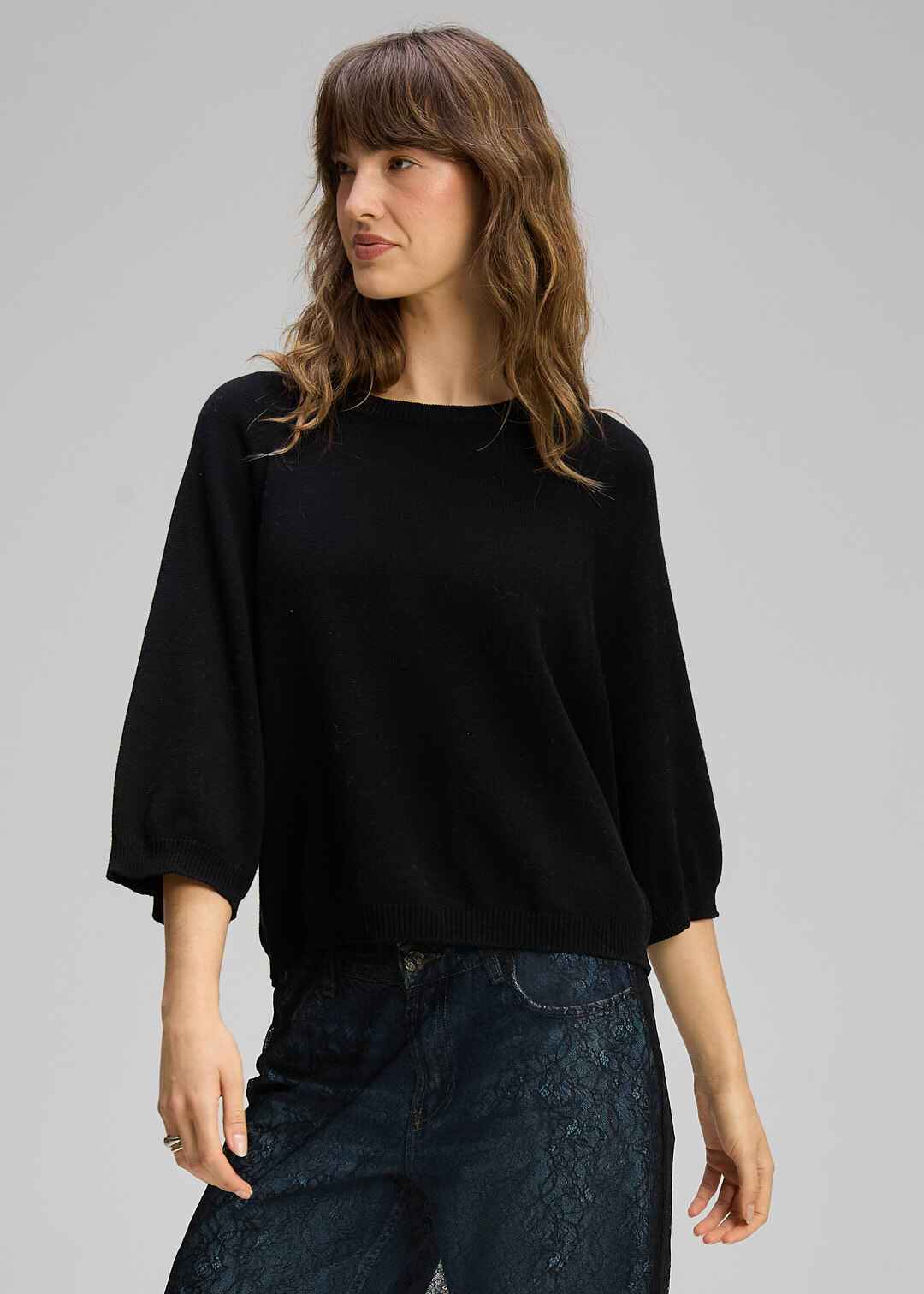 An easy, everyday knit with a soft, relaxed silhouette. Designed with a classic crew neckline and wide three-quarter sleeves, this lightweight sweater offers effortless comfort and modern appeal. Perfect for pairing with tailored trousers or denim easy versatile styling.