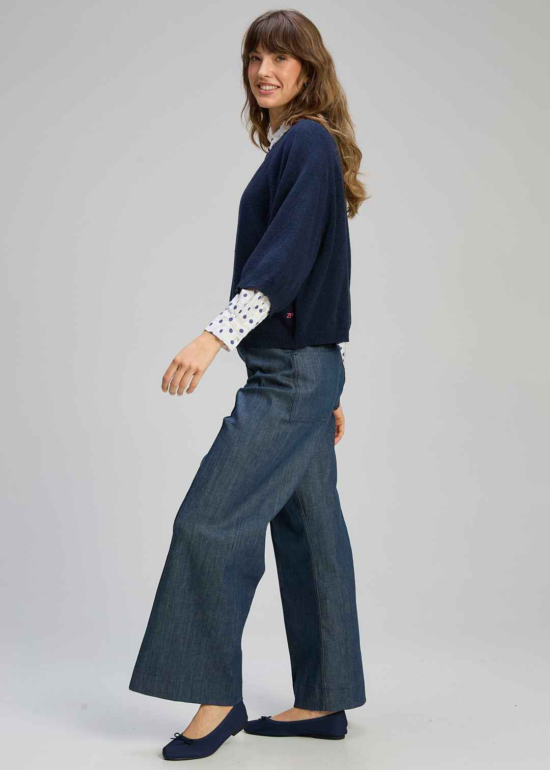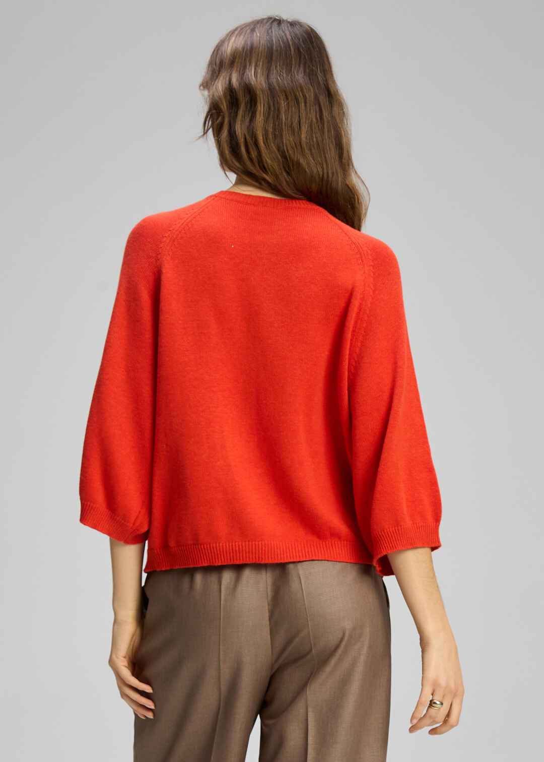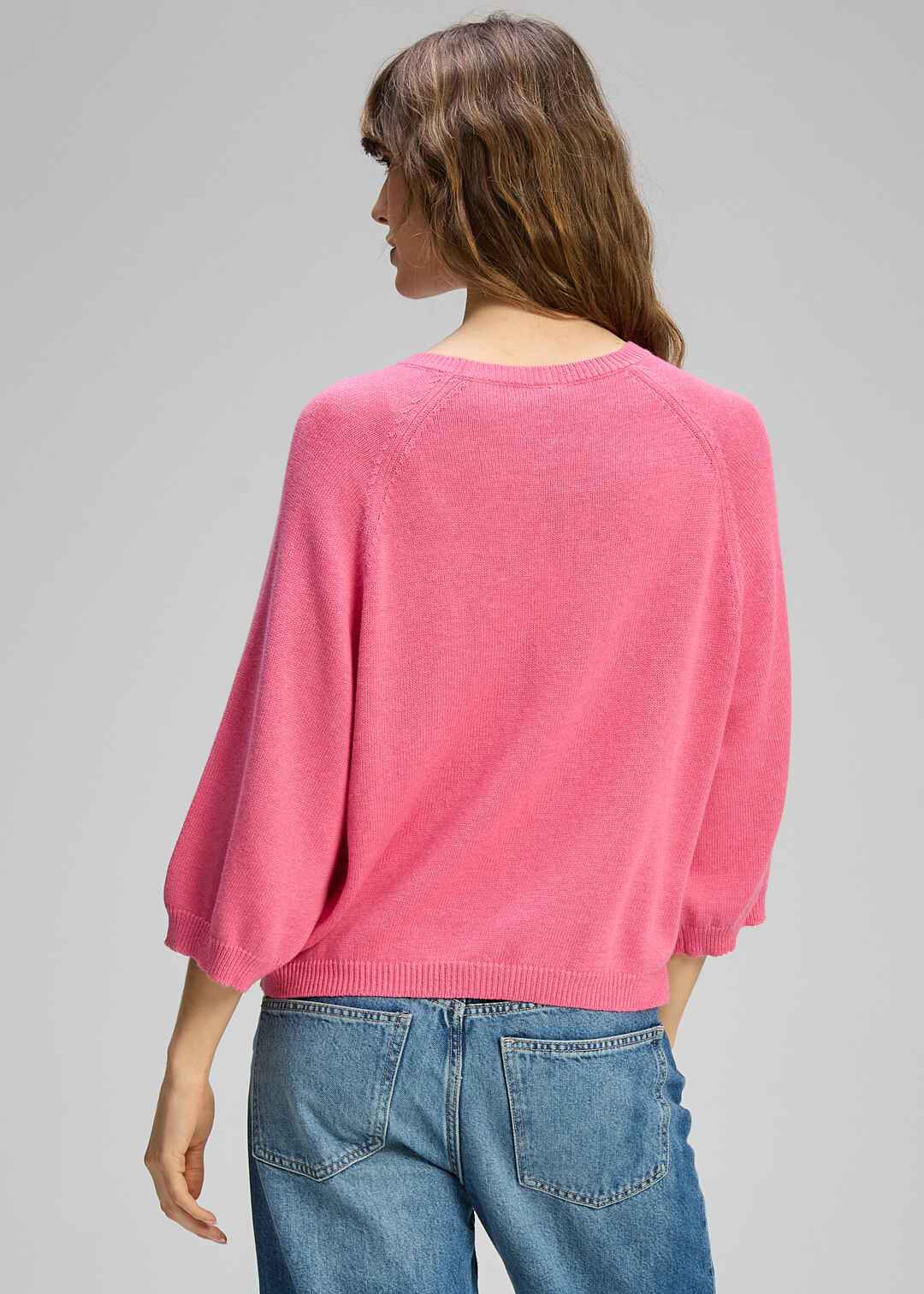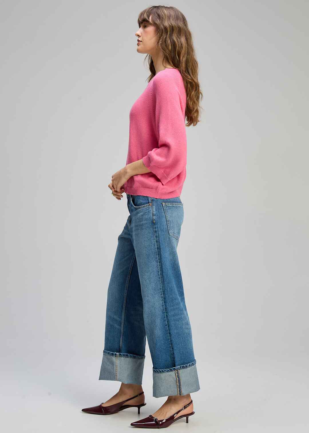 An easy, everyday knit with a soft, relaxed silhouette. Designed with a classic crew neckline and wide three-quarter sleeves, this lightweight sweater offers effortless comfort and modern appeal. Perfect for pairing with tailored trousers or denim easy versatile styling.