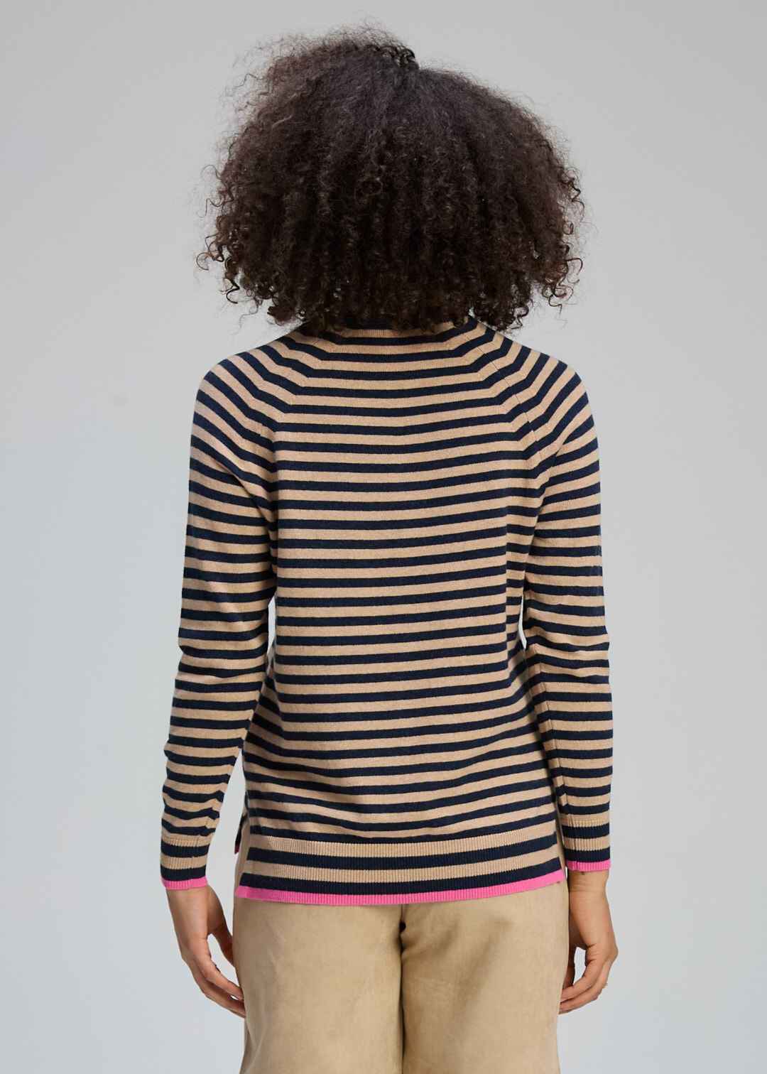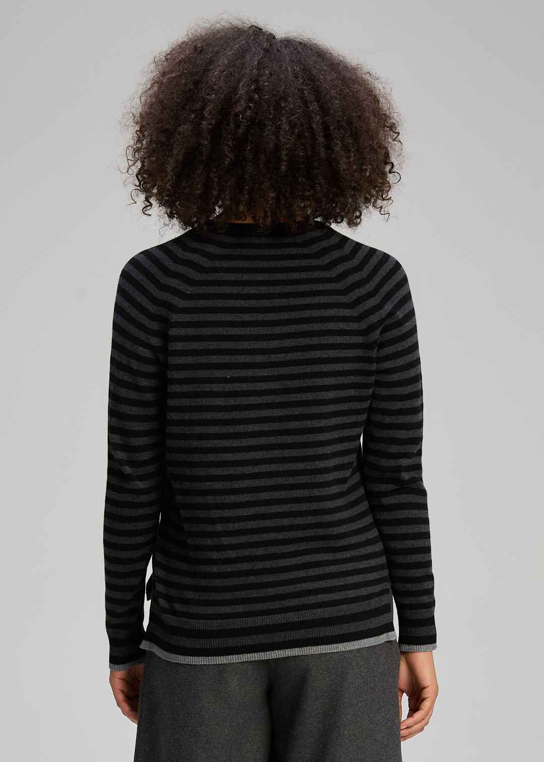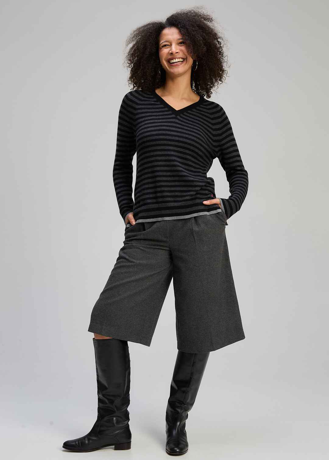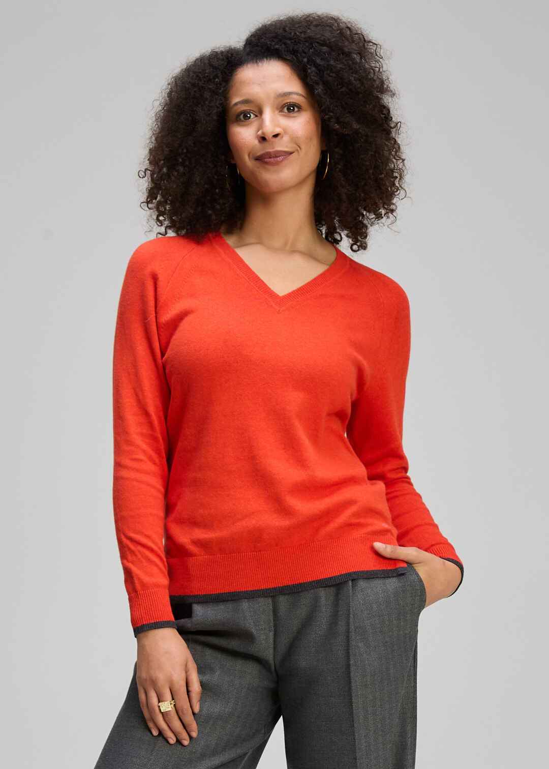 A timeless essential designed for effortless everyday wear. This soft V-neck knit features a flattering, streamlined fit with ribbed trims for a polished finish. Available in bold solid and classic stripe options, it’s perfect for layering or wearing on its own. An easy wardrobe staple that pairs seamlessly with tailored trousers or casual denim.