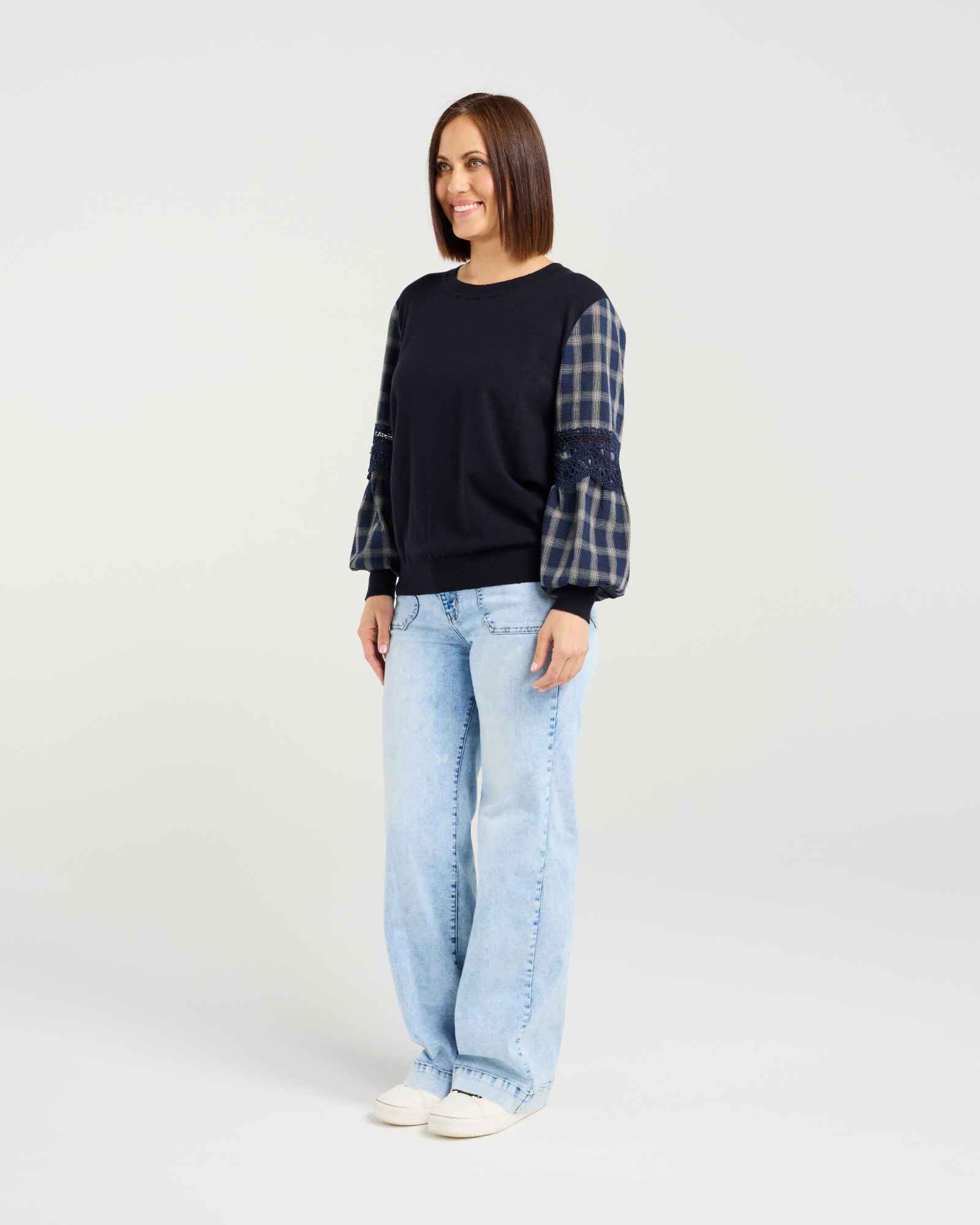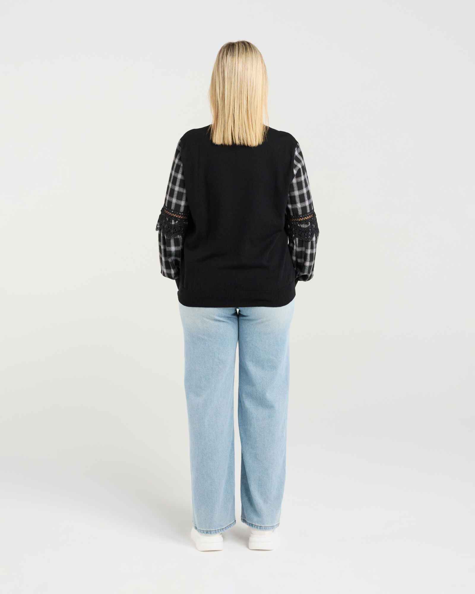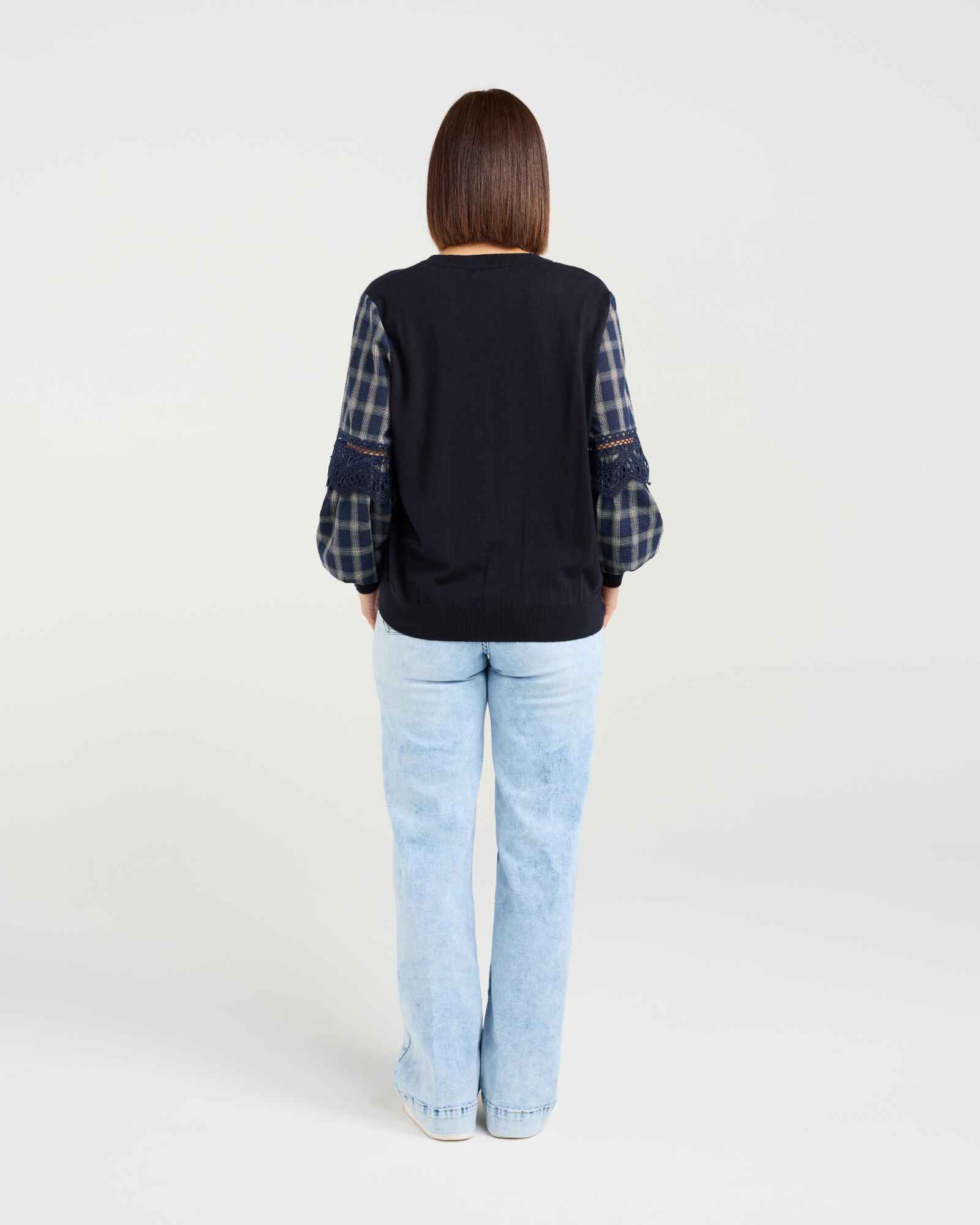 This long-sleeve top puts all the focus on its beautifully crafted sleeves, designed in a contrast fabric with delicate lace trim inserts. The striking detail adds effortless elegance to your winter wardrobe, while the elasticated cuffs provide comfort and warmth. Available in versatile colourways, it’s an easy piece to dress up or down throughout the season.