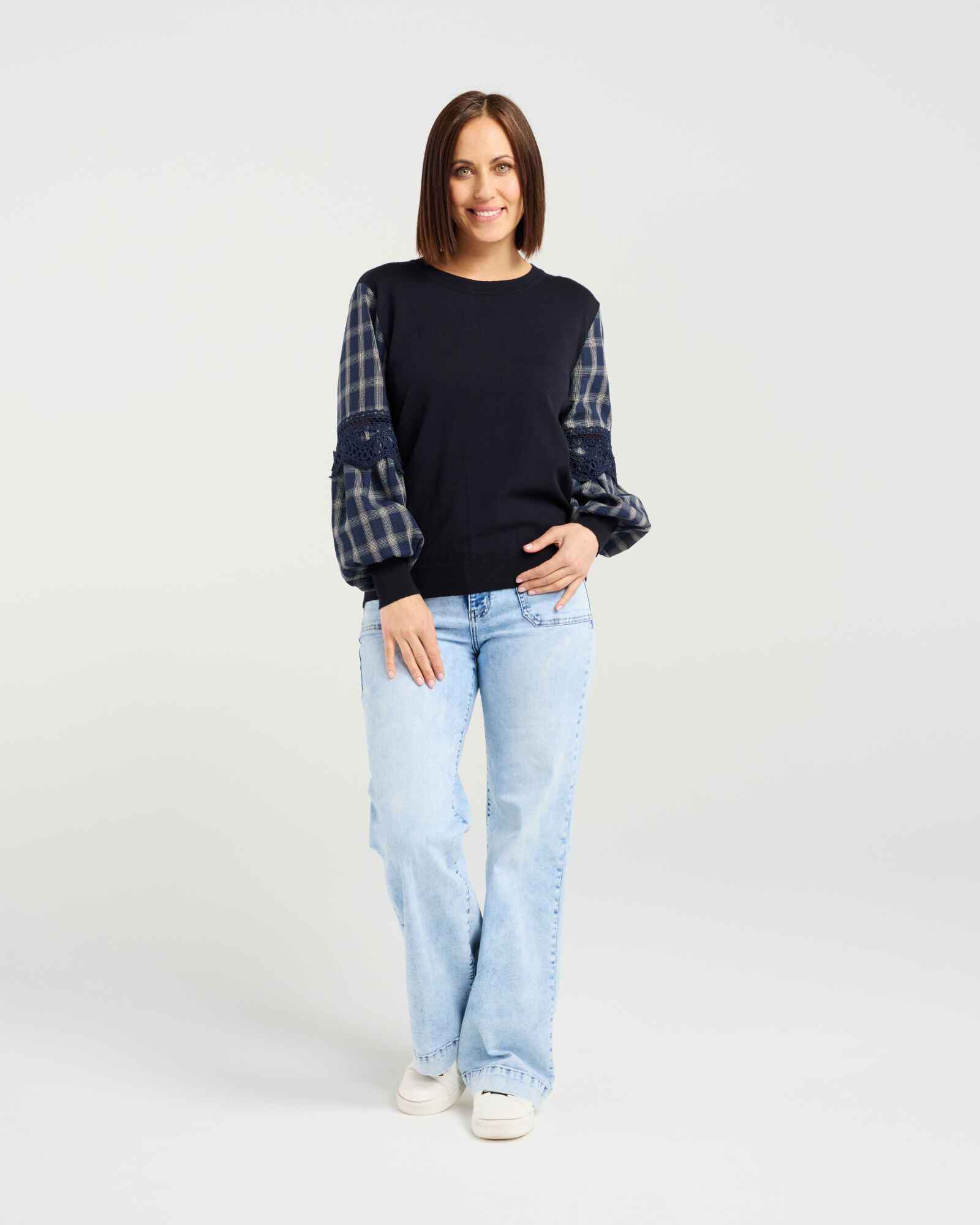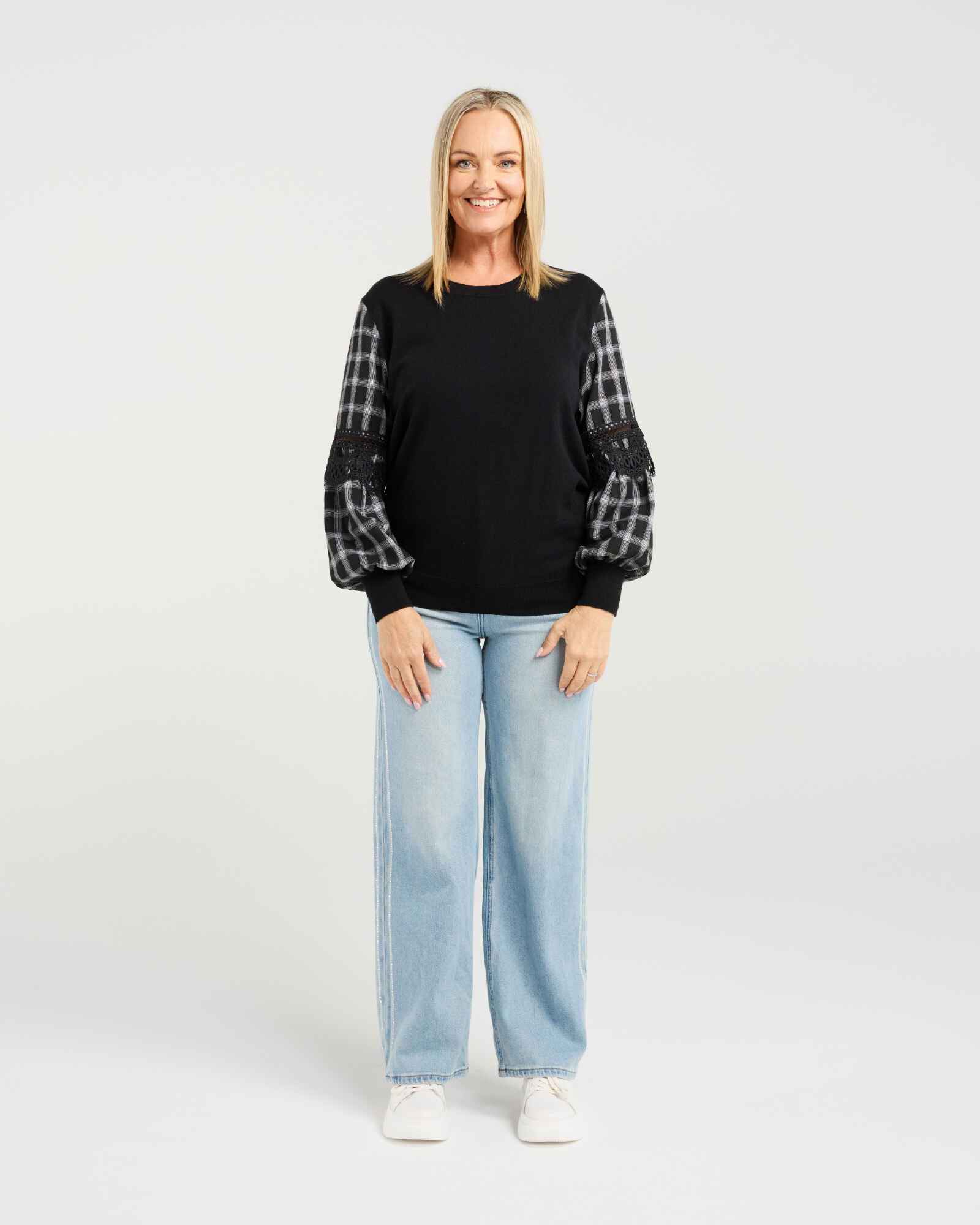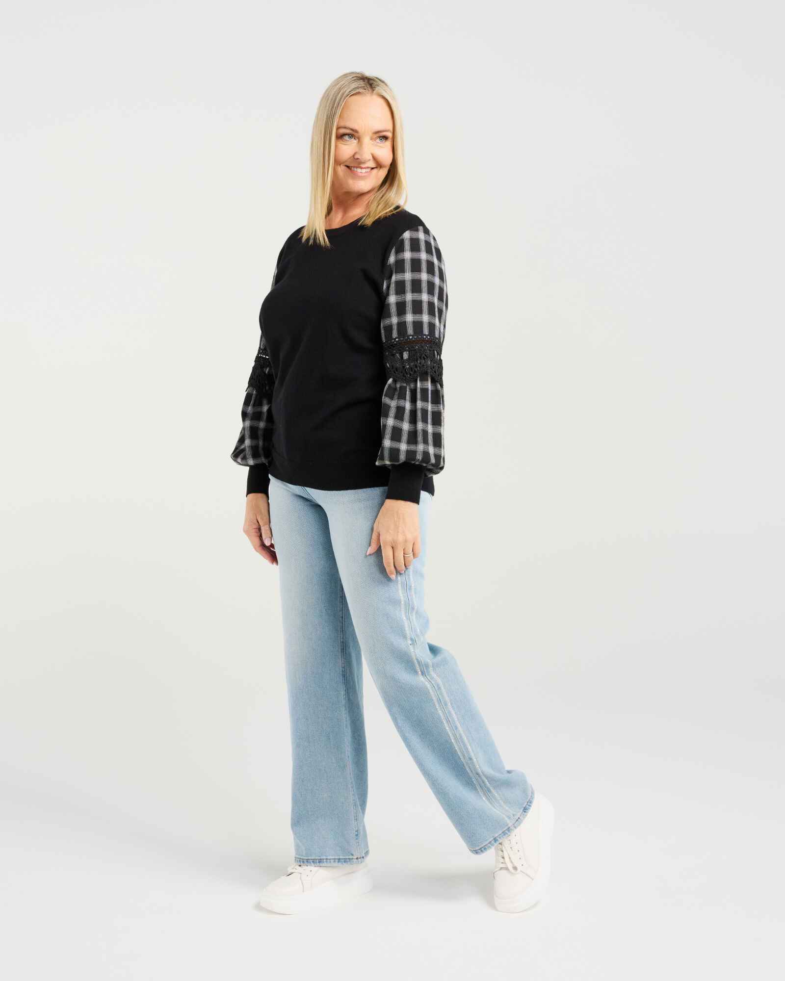 This long-sleeve top puts all the focus on its beautifully crafted sleeves, designed in a contrast fabric with delicate lace trim inserts. The striking detail adds effortless elegance to your winter wardrobe, while the elasticated cuffs provide comfort and warmth. Available in versatile colourways, it’s an easy piece to dress up or down throughout the season.