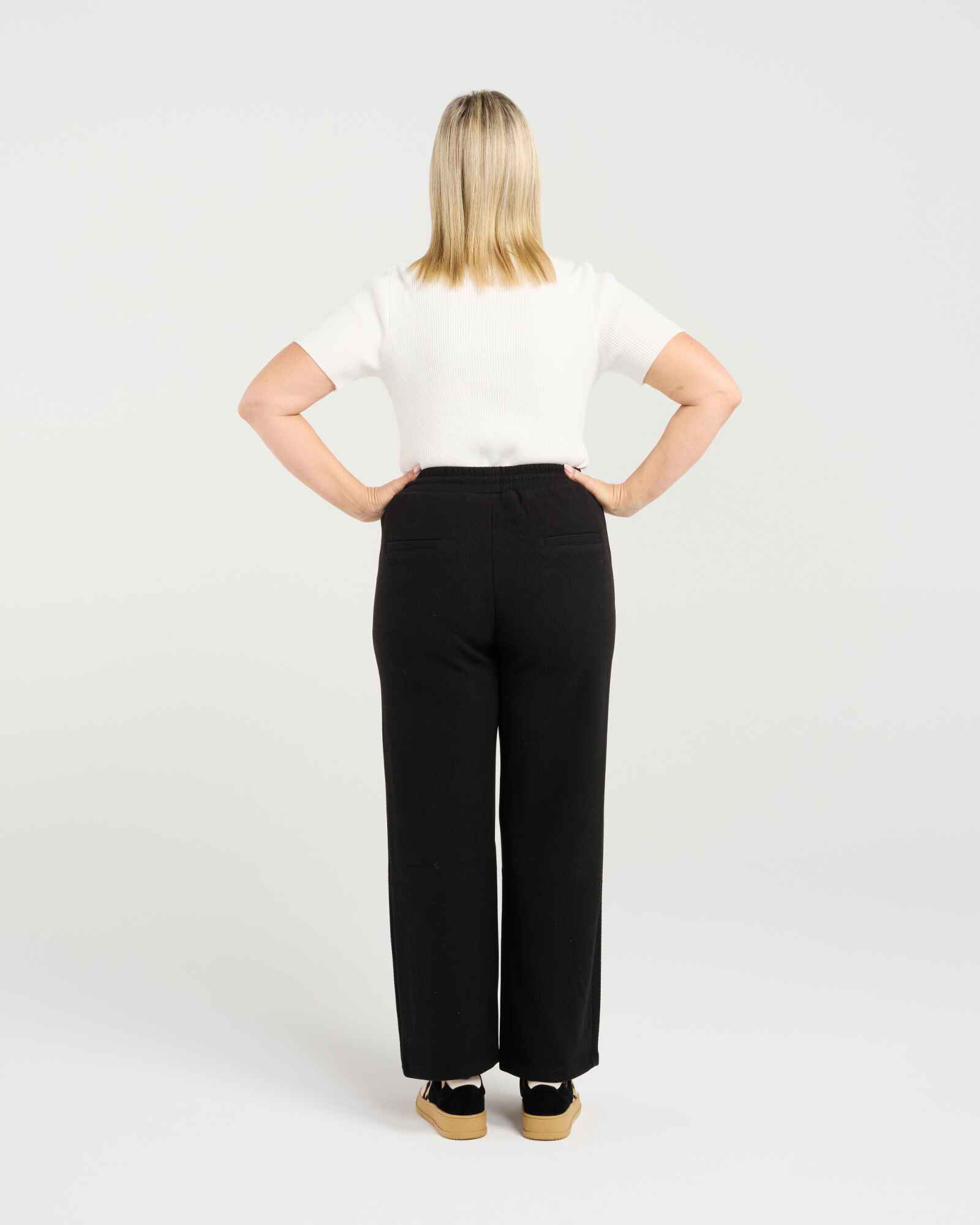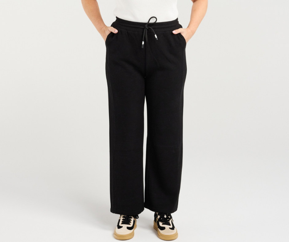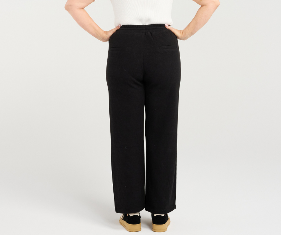 These soft black pants offer a relaxed fit for effortless comfort, featuring an elasticated waist with a drawstring for a perfect, adjustable fit. Versatile and cozy, they’re ideal for both casual days and stylish layering in cooler months.